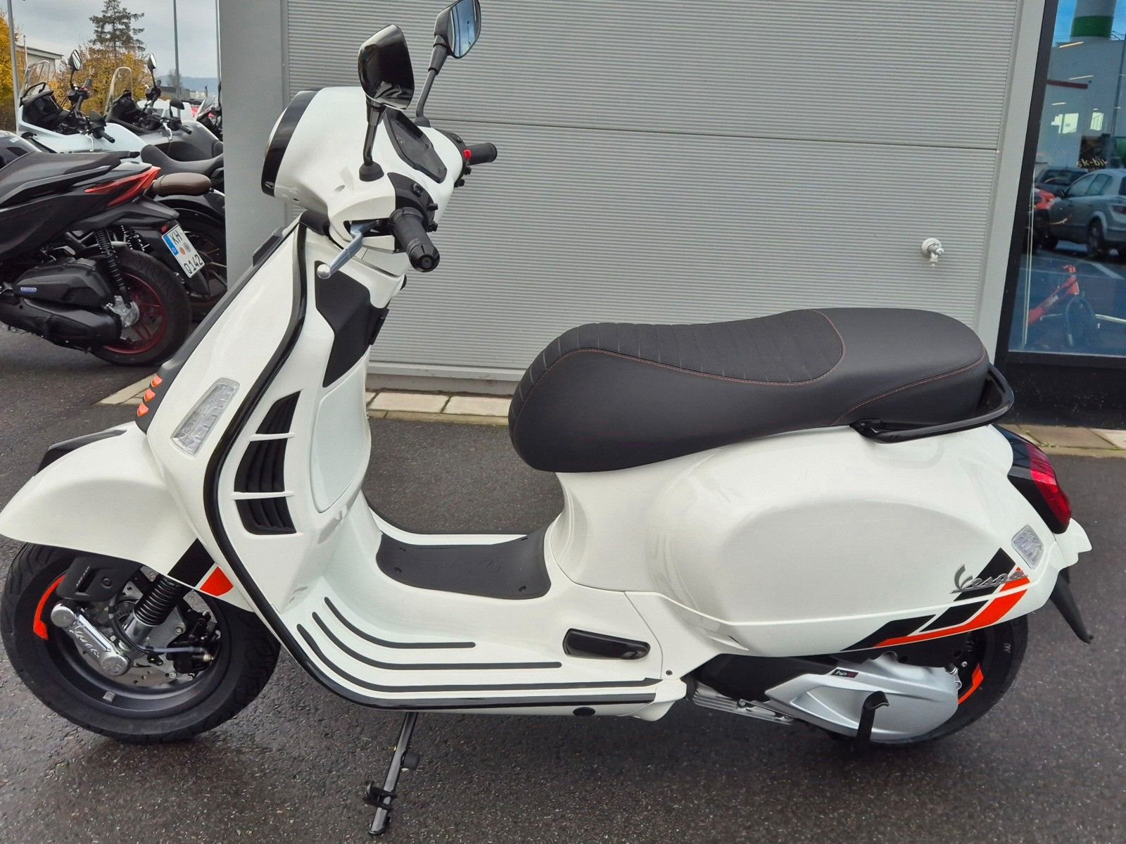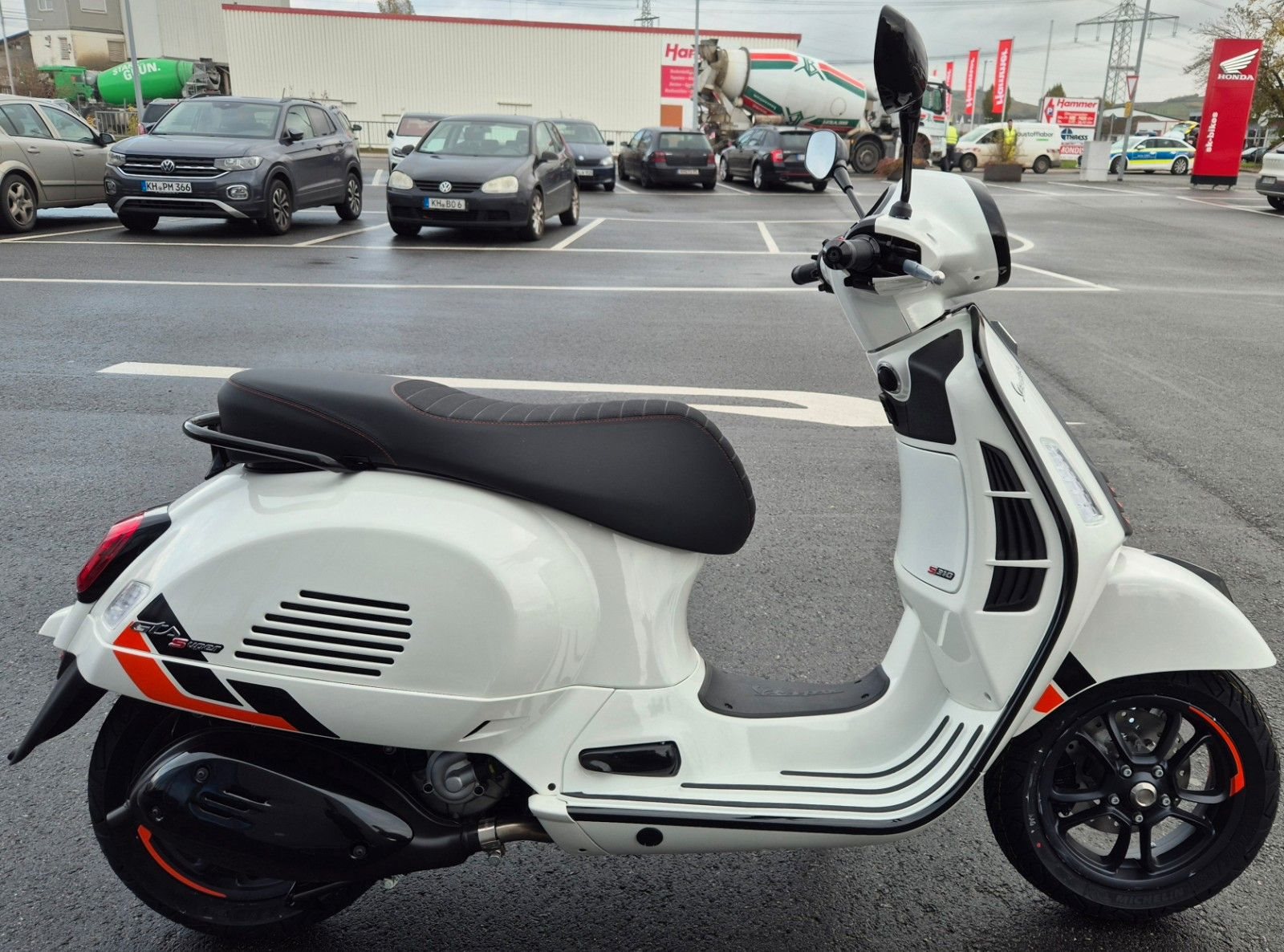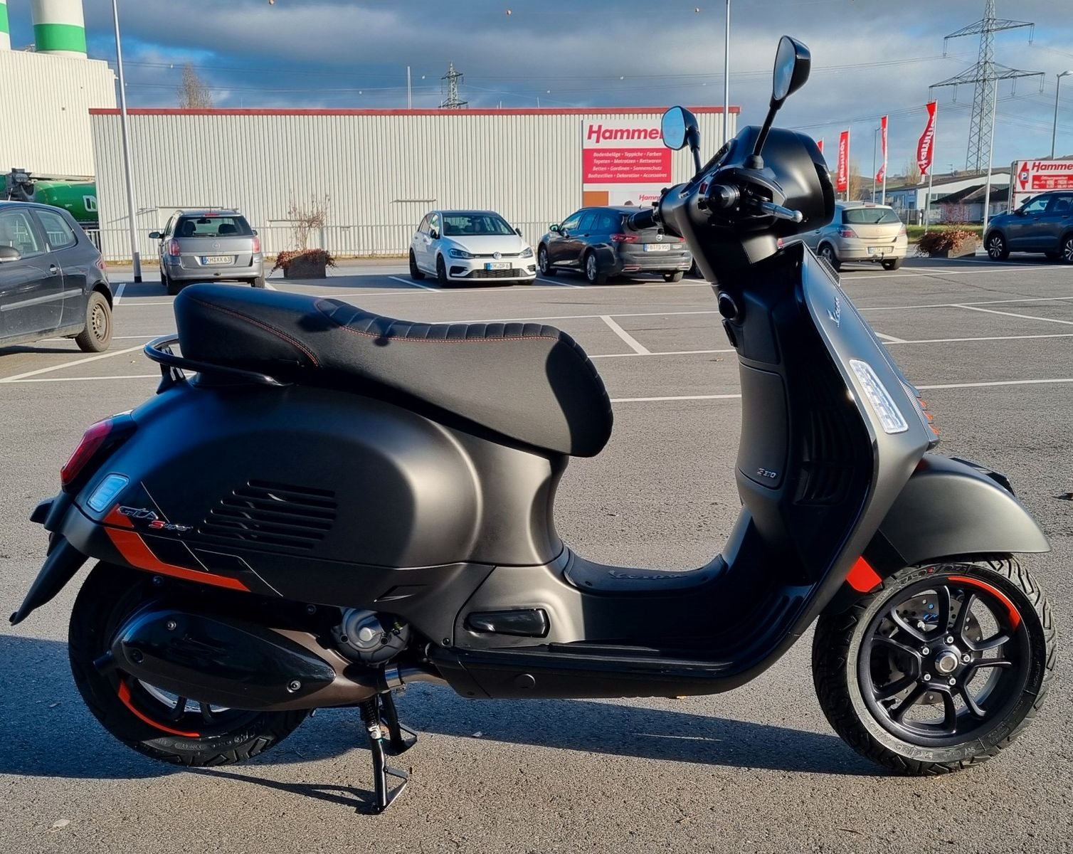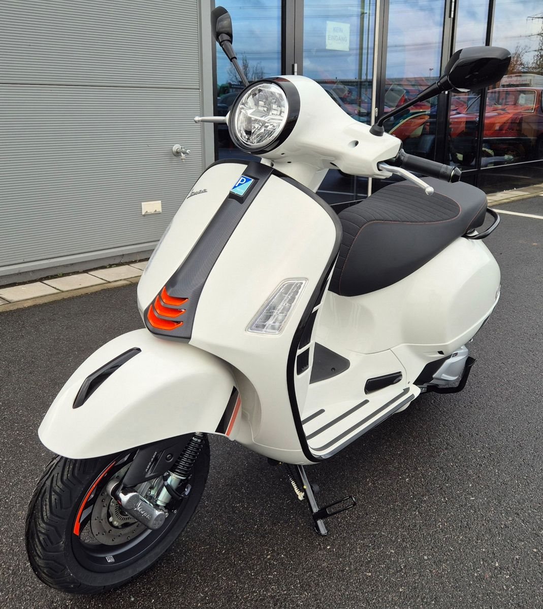 Sportliche Spitzenleistung der VespaFür hohe Leistung und ein sportliches Fahrverhalten sorgen der 310 cm3 Euro 5+ hpe Motor und das hochwertige Fahrwerk mit Stahlkarosserie, 12-Zoll-Felgen, Scheibenbremsen an beiden Rädern, hochwertigen Bremskomponenten, Zweikanal-ABS und ASR-Traktionskontrolle.