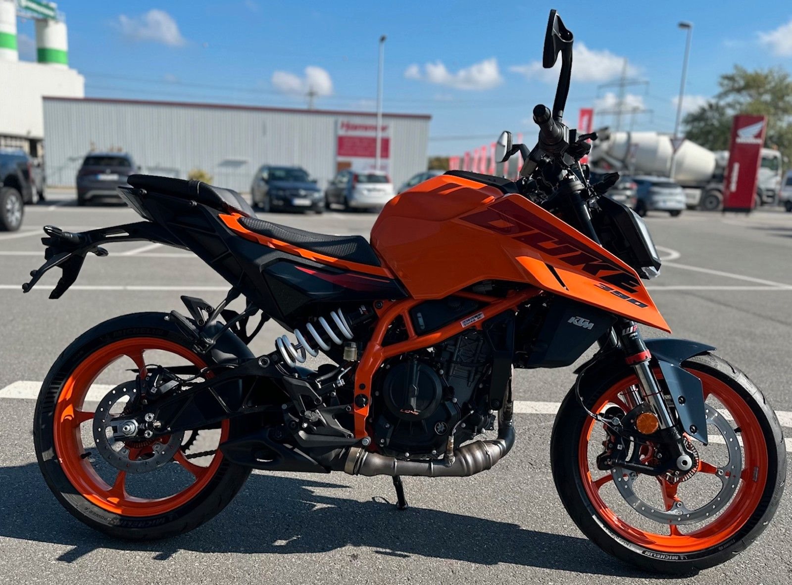 Mit der KTM 390 DUKE wird die Welt um dich herum zu einem einzigen Gymkhana! Dieser mittelgewichtige Kraftprotz bringt außergewöhnliche Wendigkeit, leichtgängiges Handling und schlagkräftige Leistung auf die Straße. Er ist bereit, jede Kurve zu meistern. Mit hochmodernen Fahrerassistenzsystemen, einer einstellbaren Federung und einem offensiven Look ist die KTM 390 DUKE 2025 die ultimative Wahl, wenn es darum geht, blitzschnell zu überholen.