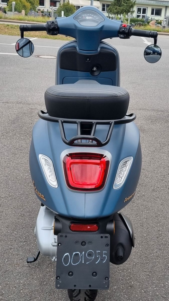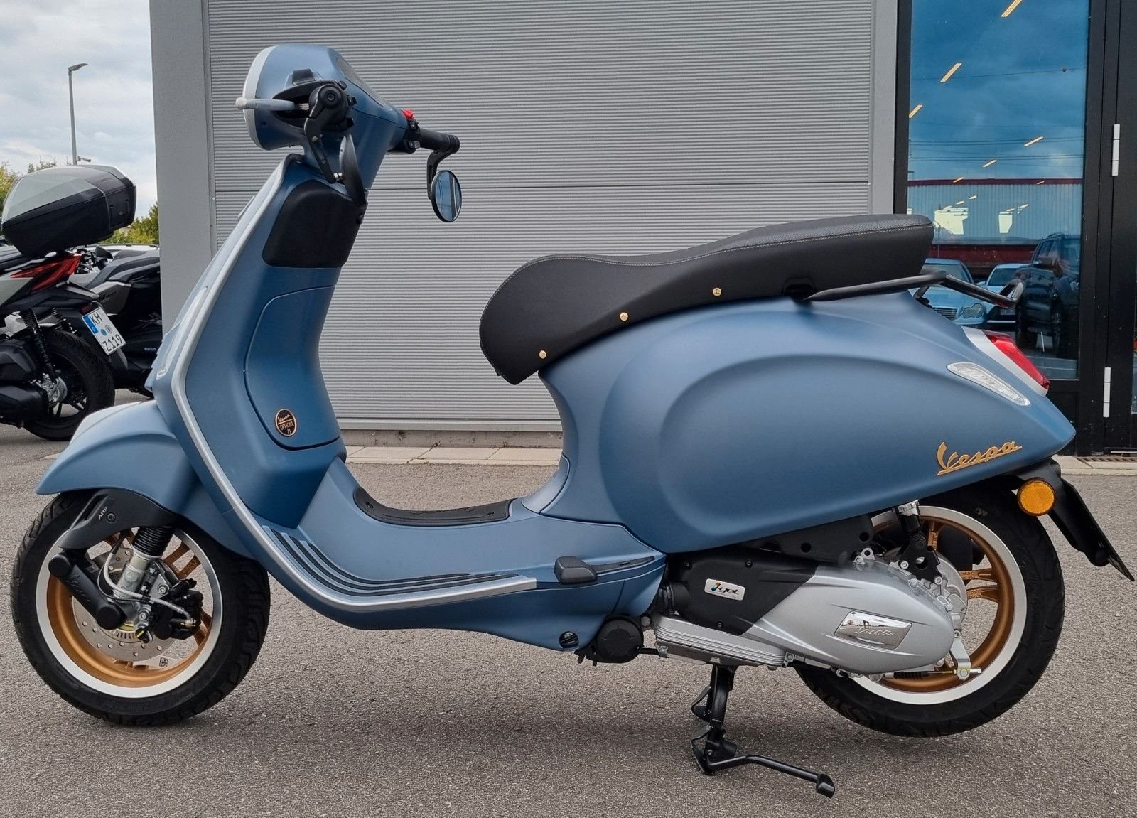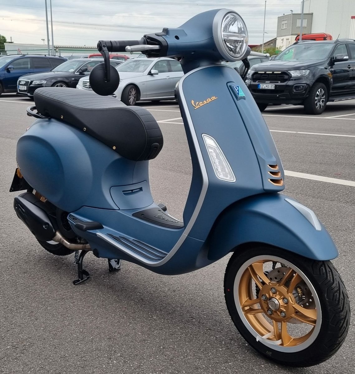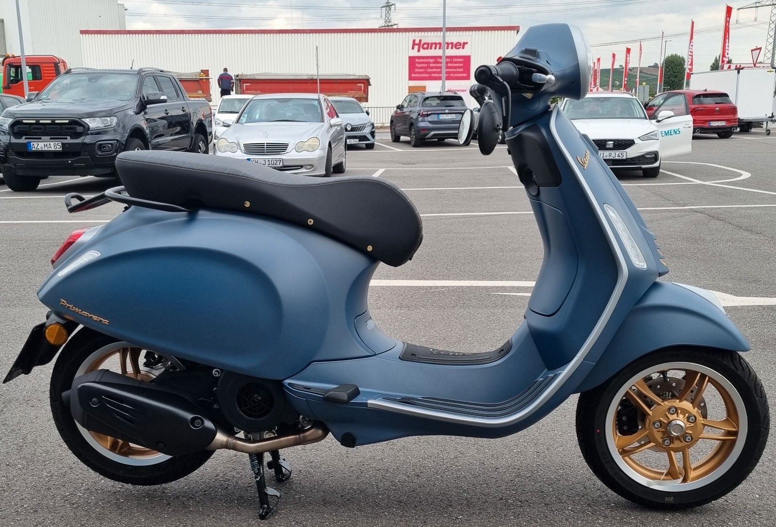 Stil, der auf Innovation basiertDie Vespa Primavera Officina 8 bringt das Erbe von Vespa mit Eleganz und einem modernen Touch neu auf die Straße. Die intensive blaue Lackierung ist von den Industriemaschinen in der historischen Werkstatt 'Officina 8' des Piaggio Werks inspiriert. Eine Hommage an die Tradition, die zu einem unverwechselbaren Symbol für Stärke und Identität geworden ist. Die metallene Details, die polierten Messingnieten und die Kontrastnähte auf dem Sattel zeugen von der Genialität, Sorgfalt und Leidenschaft, die Vespa seit jeher auszeichnet.