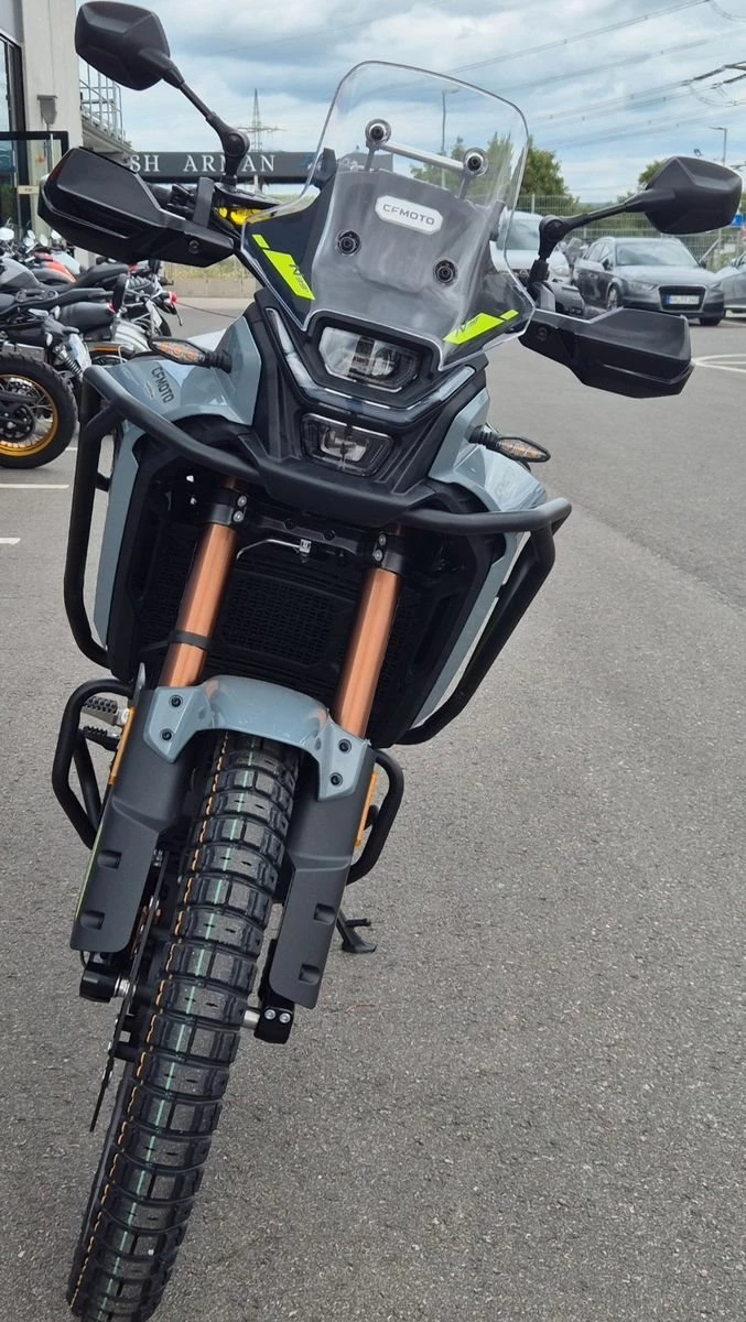 Die CFMOTO 450MT liefert mit ihrer Kombination aus hervorragender Geländegängigkeit und unu?bertroffener Vielseitigkeit eine neue Definition von Adventure-Touring. Ausgestattet mit modernster Technologie und hochwertigen Komponenten zieht die 450MT alle Register - ob in unwegsamen Gelände oder auf anspruchsvollen Landstraßen. Ausgestattet mit einem 449 cm Zweizylinder-Motor, liefert die 450MT satte 42 PS und ein maximales Drehmoment von 42 Nm. Das voll einstellbare KYB-Fahrwerk mit großem Federweg, der Reifendrucksensor, ABS mit abschaltbarer Hinterradfunktion und TCS sorgen für perfekte Kontrolle - egal ob du auf Schotter, in der Stadt oder auf kurvigen Landstraßen unterwegs bist.