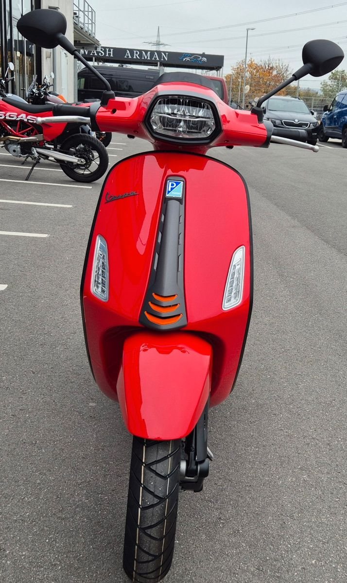 Ein faszinierender LookDie Vespa S Sprint verkörpert den unverwechselbaren Charakter der Generationen von Vespa Sportmodellen, die in jedem Umfeld einen Hauch von Dynamik versprühen. Ihr sportlicher Look wird durch kontrastierende Grafiken unterstrichen, während schwarze Details wie der rechteckige Rahmen um den Scheinwerfer und die neu designten 6-Speichen-Aluminiumfelgen für eine raffinierte Note sorgen.
