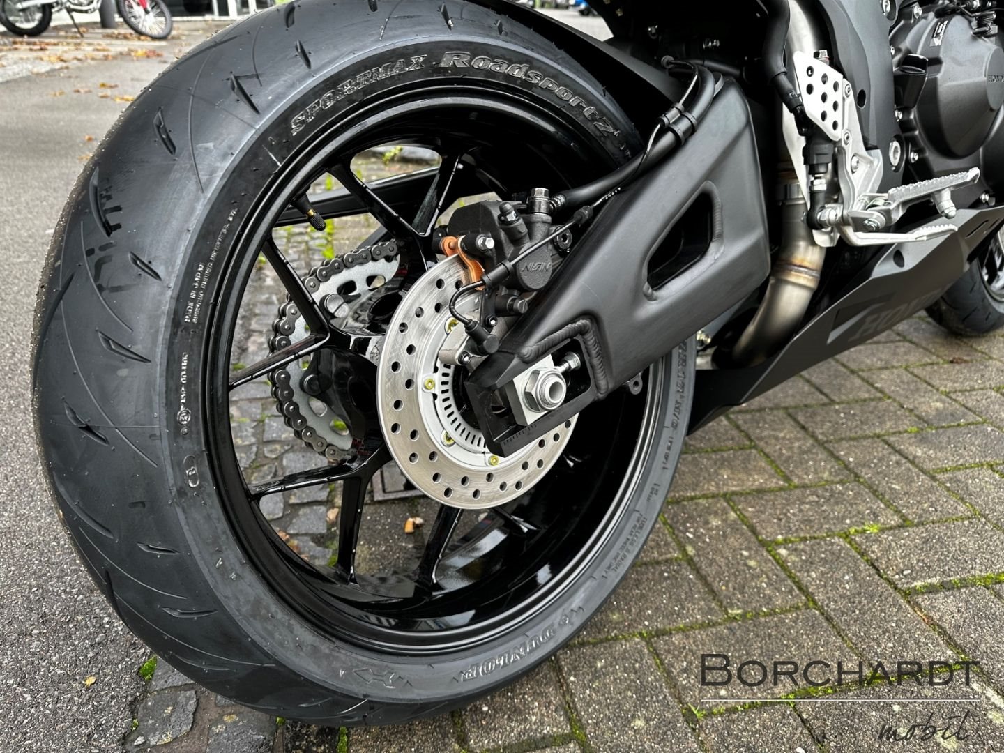 Mit 89 kW (121 PS) Spitzenleistung liefert der Motor Adrenalin pur: 14.250 U/min, eine atemberaubende Höchstgeschwindigkeit sowie ein starkes Drehmoment von 63 Nm in einen weiten Bereich sorgen für reichlich Vortrieb bei der Kurvenausfahrt. Abgestimmte Einlasskanäle und 44-mm-Drosselklappen sorgen für maximale Kraftstoffzufuhr bei hohen Drehzahlen. Zylinderkopf, Ventiltrieb und -steuerung, Kurbelwelle und Auspuff wurden gemeinsam optimiert. Der Motor ist für den Straßenverkehr EURO5+ und OBD2-2-konform.
