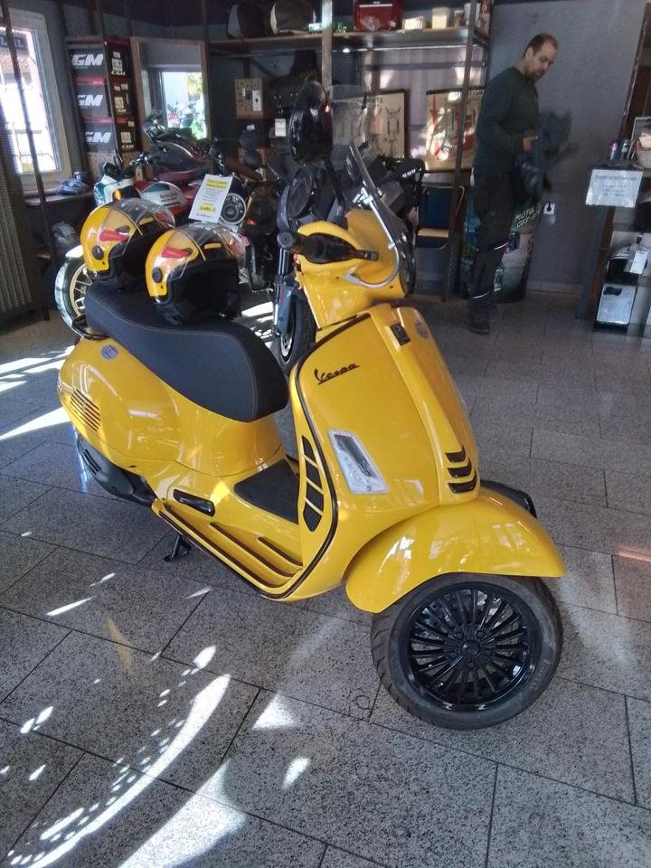 Zum Verkauf steht eine Vespa GTS300 Super in gelb mit diversen Umbauten.\nÄnderungen der "Wespe"\nZierstücke, Gepäckträger, Abdeckkappen, Schlitzrohre rechts/links, Tachorahmen, Scheinwerferrahmen, Einsätze der Krawatte, Rücklichtrahmen, Vespa-Emblem und Schriftzüge, Fußrasten, Bremshebel, Moto-Nostra Scheibenhalterung und diverse andere Kleinigkeiten in Schwarz.\nStoßdämpfer: YSS vorne (Schwarz)\nFelgen: 12" Turbo-Schaufelraddesesign (Schwarz)\nReifen: Pirelli Dabolo Rosso Scooter\nSitzbank: Vespa Sport mit gelber Naht\nGriffgummi: Sceed (Schwarz\n\nWie auf den Bildern zu erkennen ein sehr stimmiges Bild und alles fach- und sachgerecht montiert\n\nEine große Auswahl an Roller und Motorräder findest Du auch auf unserem Gelände in Weinheim