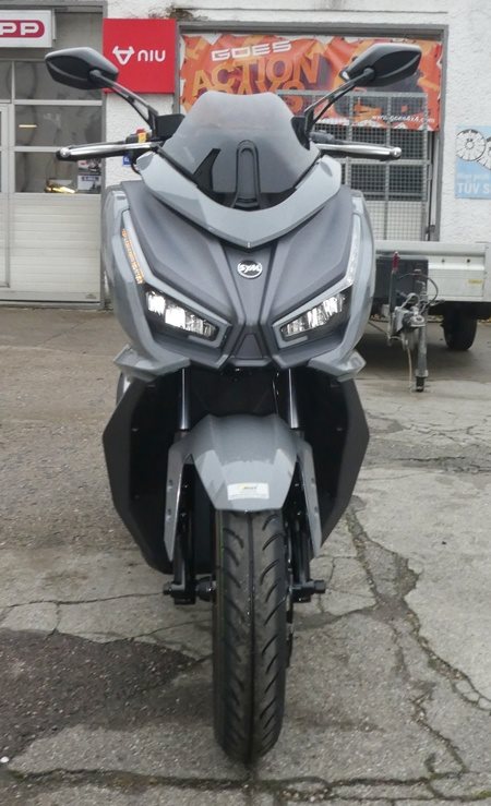 Kompakter Roller mit viel Stauraum, 5" LCD-Display und LED-Beleuchtung - top für anspruchsvolle Fahrer/innen. ABS Bremssystem, 14" Leichtmetallfelgen sowie Haupt- und Seitenständer und Gepäckträger