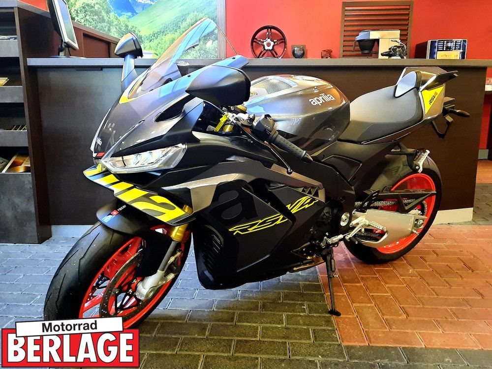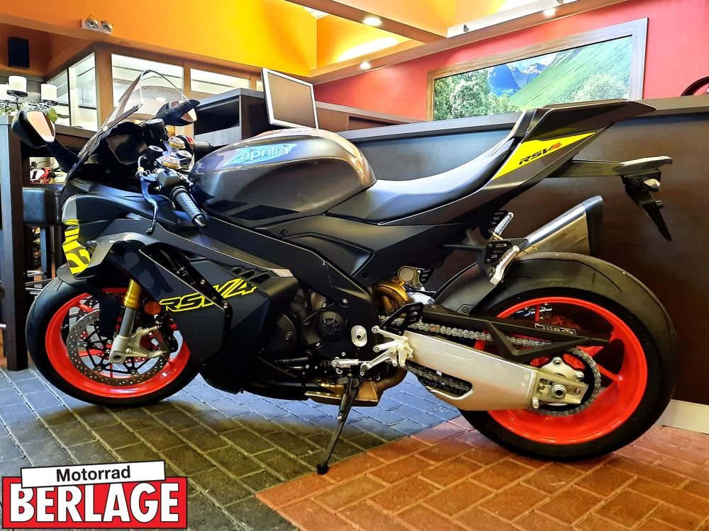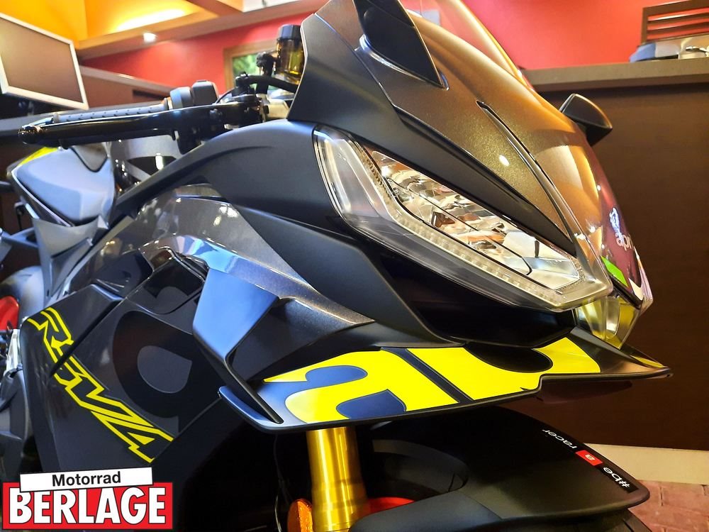 - Full-LED-Scheinwerfer und Blinker mit Lichtsignatur.- Gebondetes 5-Zoll TFT-Display.- Hinterleuchtete Bedienelemente.- APRC-System mit 6-Achsen Inertiaplattform: Motor Mappings (AEM), Motorbremse (AEB), Kurven-ABS (3Mappings und Stoppie-Kontrolle), Traktionskontrolle (ATC), adaptive und vorausschauende Wheelie-Kontrolle (AWC), 3 Riding-Modes.- Aprilia Quick Shifter (AQS).- Sachs Lenkungsdämpfer.- Stahlummantelte Bremsleitungen.- Soziussitz und Aero-Abdeckung