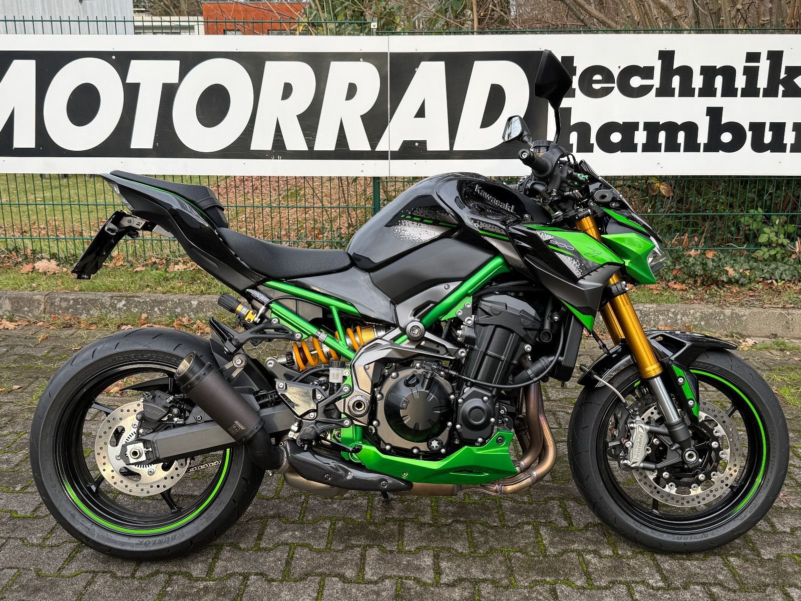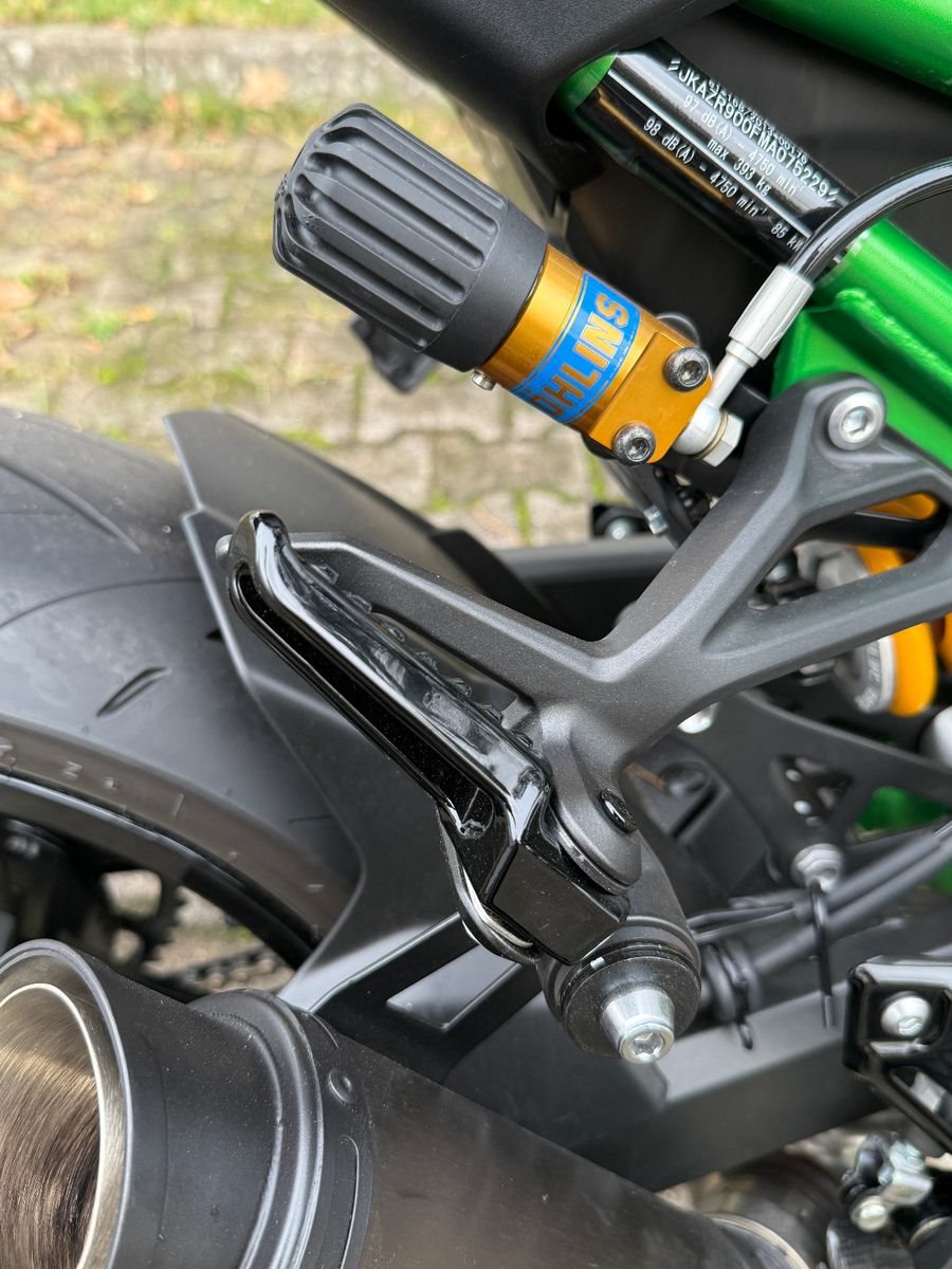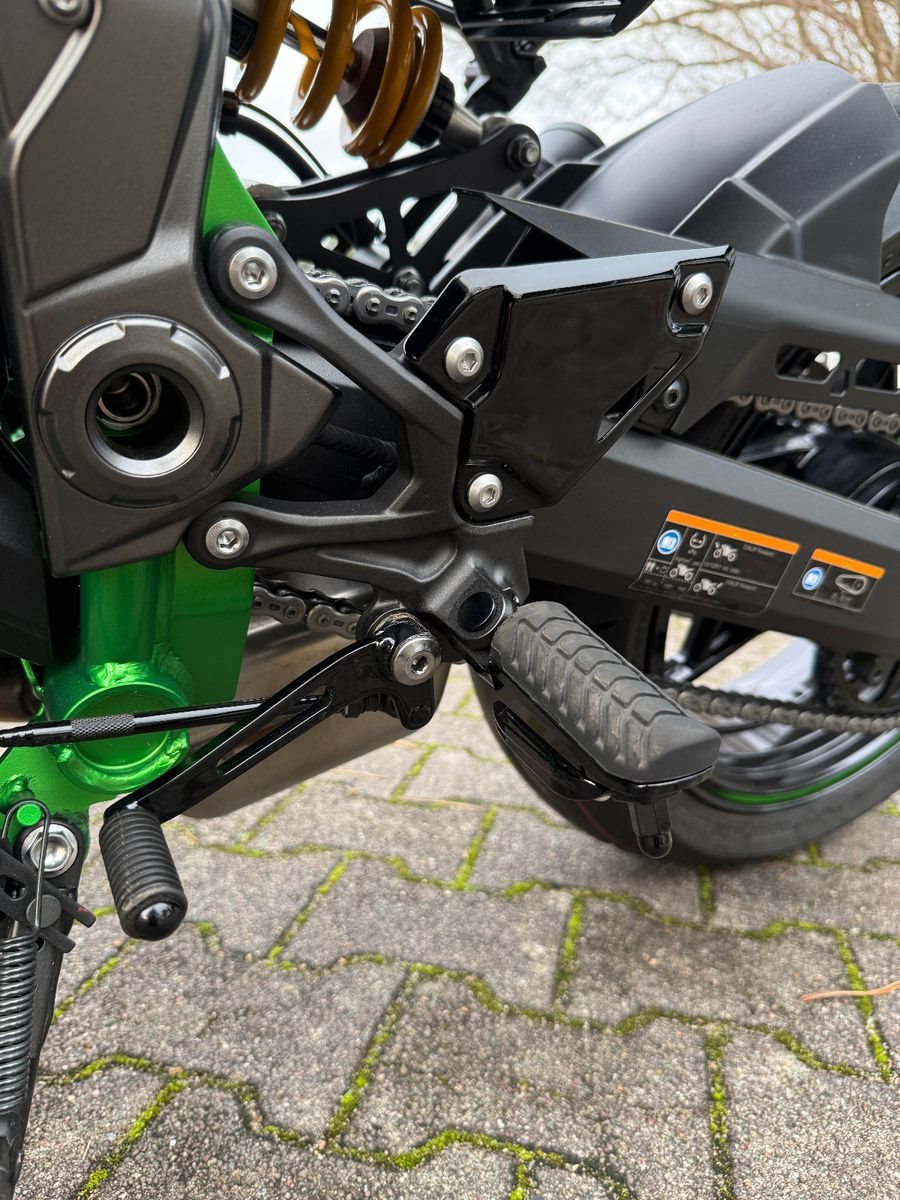 KAWASAKI Z900 SE, Modell 2024, NUR 683 Km, 1.Hand, TÜV NEU, ausgestattet mit BODIS - Auspuff, kurzem Kennzeichenhalter mit LED Miniblinkern sowie PRO-BRAKE Handhebeln. Fußbremshebel, Schalthebel, Fahrerfußrasten und Soziusrasten sind schwarz lackiert !