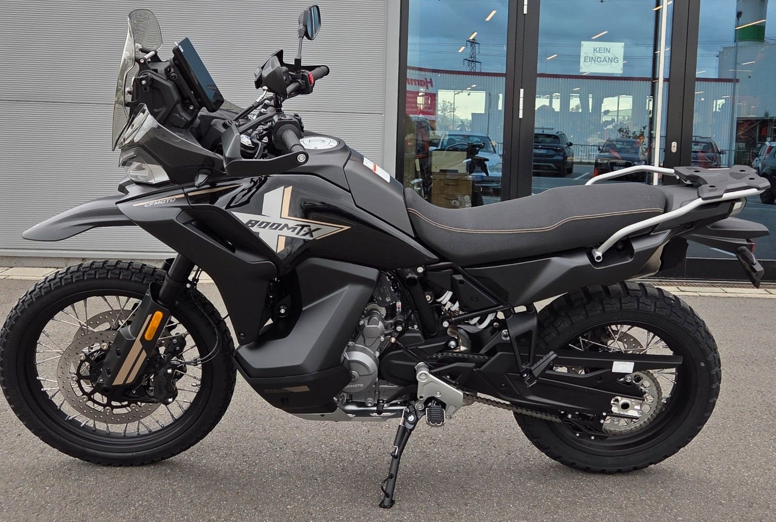 Ob auf kurvigem Asphalt oder im kernigen Gelände - die neue CFMOTO 800MT-X nimmt jede Herausforderung mit extremer Gelassenheit. Kompakt, leistungsstark und mit modernster Technik ausgestattet, bietet die 800MT-X herausragende Fahrleistungen auf ausgedehnten Reisen, beim nächsten Offroad-Abenteuer und dem täglichen Weg zur Arbeit.Im Kern arbeitet ein durchsetzungsstarker 799 cm Zweizylinder mit 91 PS und beeindruckenden 86 Nm Drehmoment. Drei Fahrmodi, Lenkungsdämpfer, ein voll einstellbares Fahrwerk und der riesige 22,5-Liter-Tank machen sie bereit für jede Etappe - von der Landstraße bis zur Bergpiste. 7"-TFT-Display, Quick-Shifter, Bosch-Kurven-ABS und Traktionskontrolle - für smarte Abenteuer ohne Limits. Abenteuer im Blick, Gelände im Griff: Die 800MT-X ist wie gemacht für alle, die nicht nach dem Weg fragen, sondern ihn selbst definieren. Ihr hochgezogenes Windschild, die schmale Silhouette und die massiven Speichenräder in 21/18 Zoll setzen ein klares Statement. In Nebula Black oder Zephyr Blue zeigt sie: Hier kommt ein echter Allrounder mit Offroad-Kompetenz und Touring-Komfort.