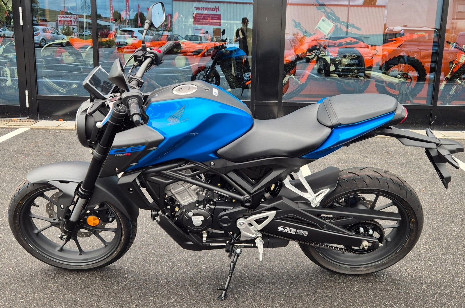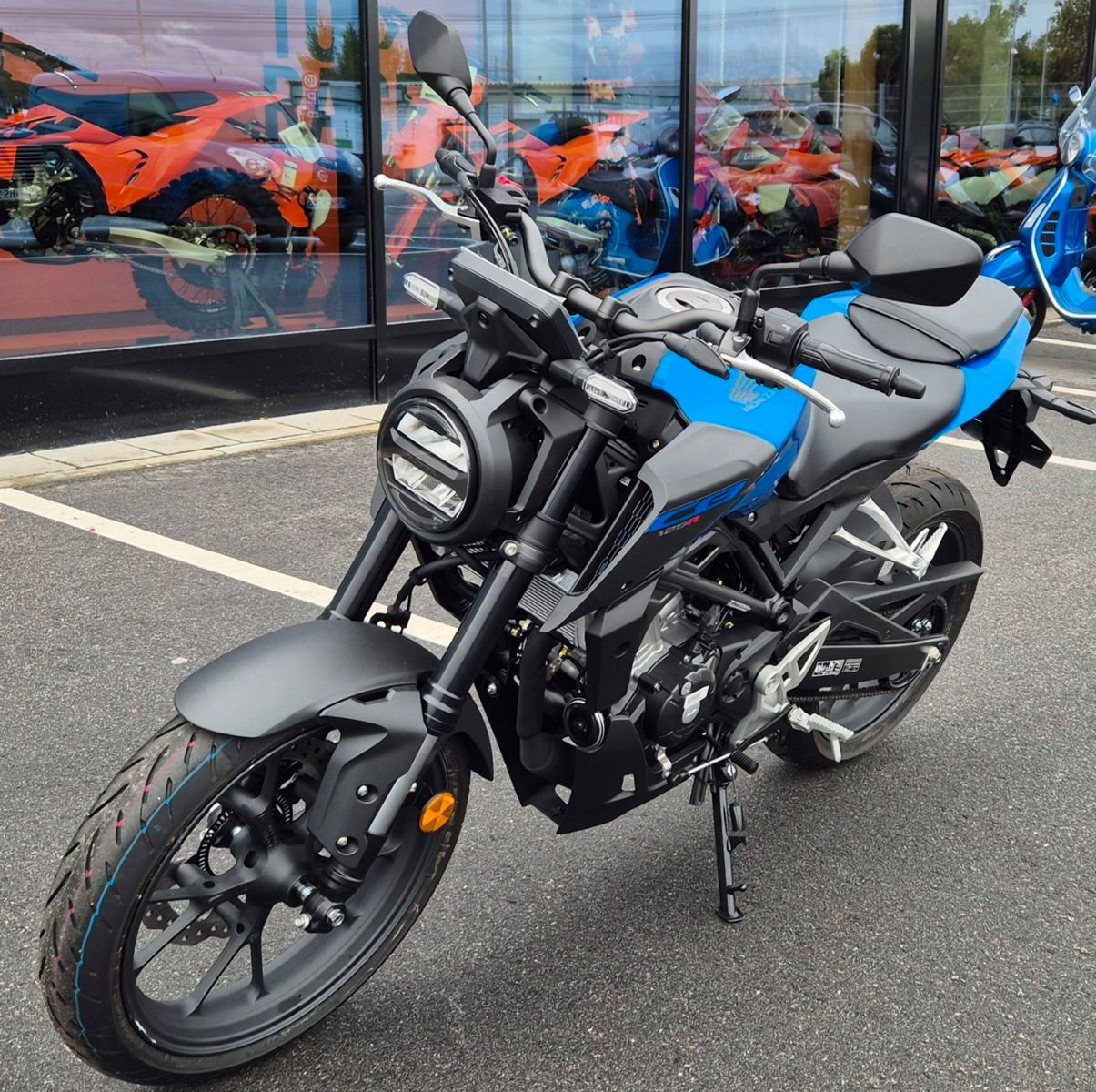 Die CB125R vereint konzentrierte Leistung mit einer eleganten Silhouette und bietet ein aufregendes Fahrerlebnis für junge Fahrer. Sie ist die kleine Schwester der genialen CB1000R und gehört damit zur Neo Sports Café-Familie. Das markante Design mit dem Stahlrohrrahmen ist ein echtes Statement. Ein hochmodernes LCD-Cockpit und LED-Komplettbeleuchtung sind Premium-Merkmale. Aber worauf es wirklich ankommt, ist die zusätzliche Leistung des neuen 125-cm-DOHC-Motors und die präzise Abstimmung der Showa SFF-BP USD-Gabel.
