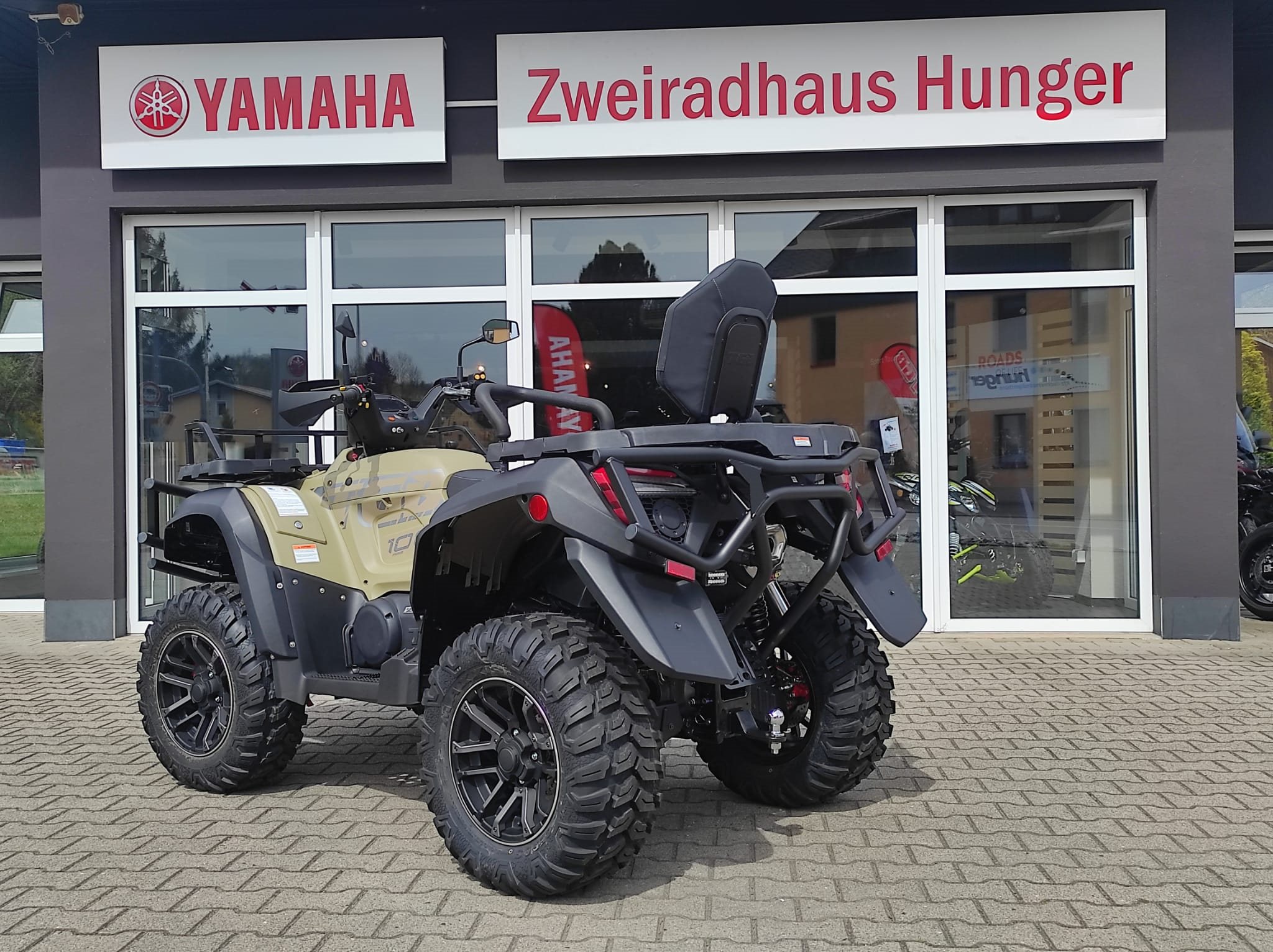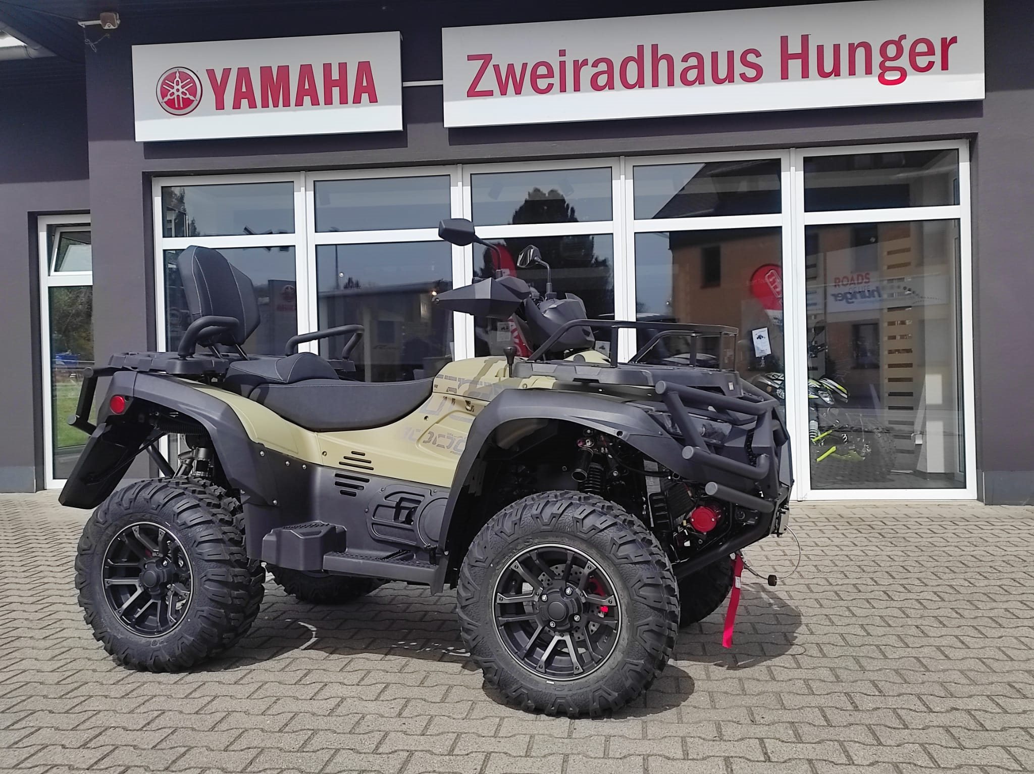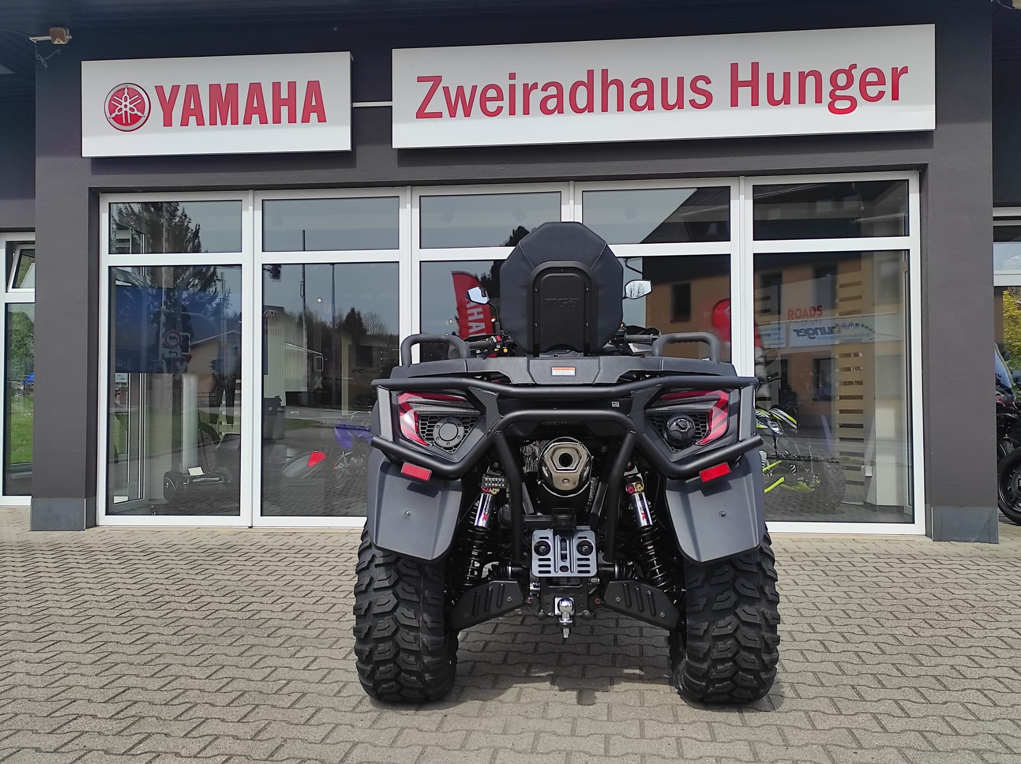 // Kraftvoller V2-Einspritzmotor// Elektronische Servolenkung (EPS)// Continental EFI-System// Einzelradaufhängung vorne & hinten// Kardanwellenantrieb mit Differential hinten// Allradantrieb elektrisch zuschaltbar// Differentialsperre vorne & hinten// Hochwertige ABS-Bremsanlage mit Scheibenbremsen vorne & hinten// 5-Stufen Gangwahlhebel// EVO-R-Fahrwerk// LED-Scheinwerfer und -Tagfahrlicht// NEUE LED-Blinker, -Rücklicht und -Bremslicht// TFT-Display// Robuste Kunststoff-Gepäckträger// Verlängerte Sitzbank// Handstützen und große Rückenlehne// 14" XTC Aluminiumfelgen mattschwarz mit Farbeinsatz// Rammschutz vorne// Seilwinde// versperrbare Staufächer// 12V-Steckdose// Abnehmbare Anhängerkupplung und Steckdose// Trittbrett für Sozius// versperrbarer Tankdeckel//