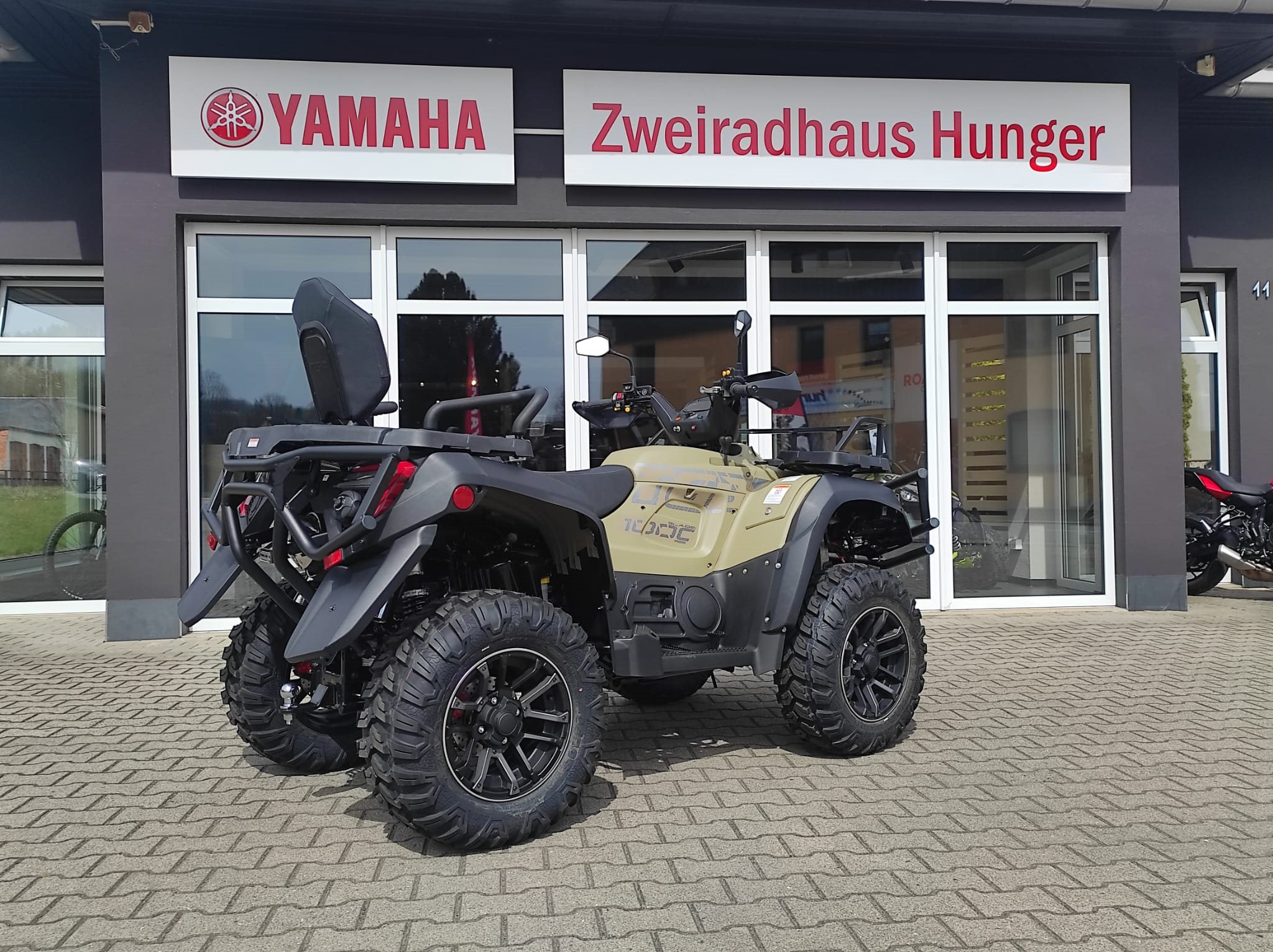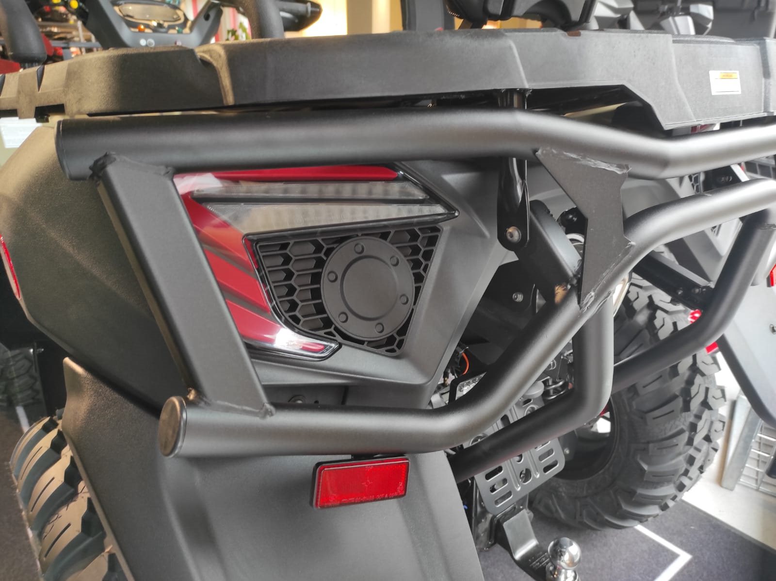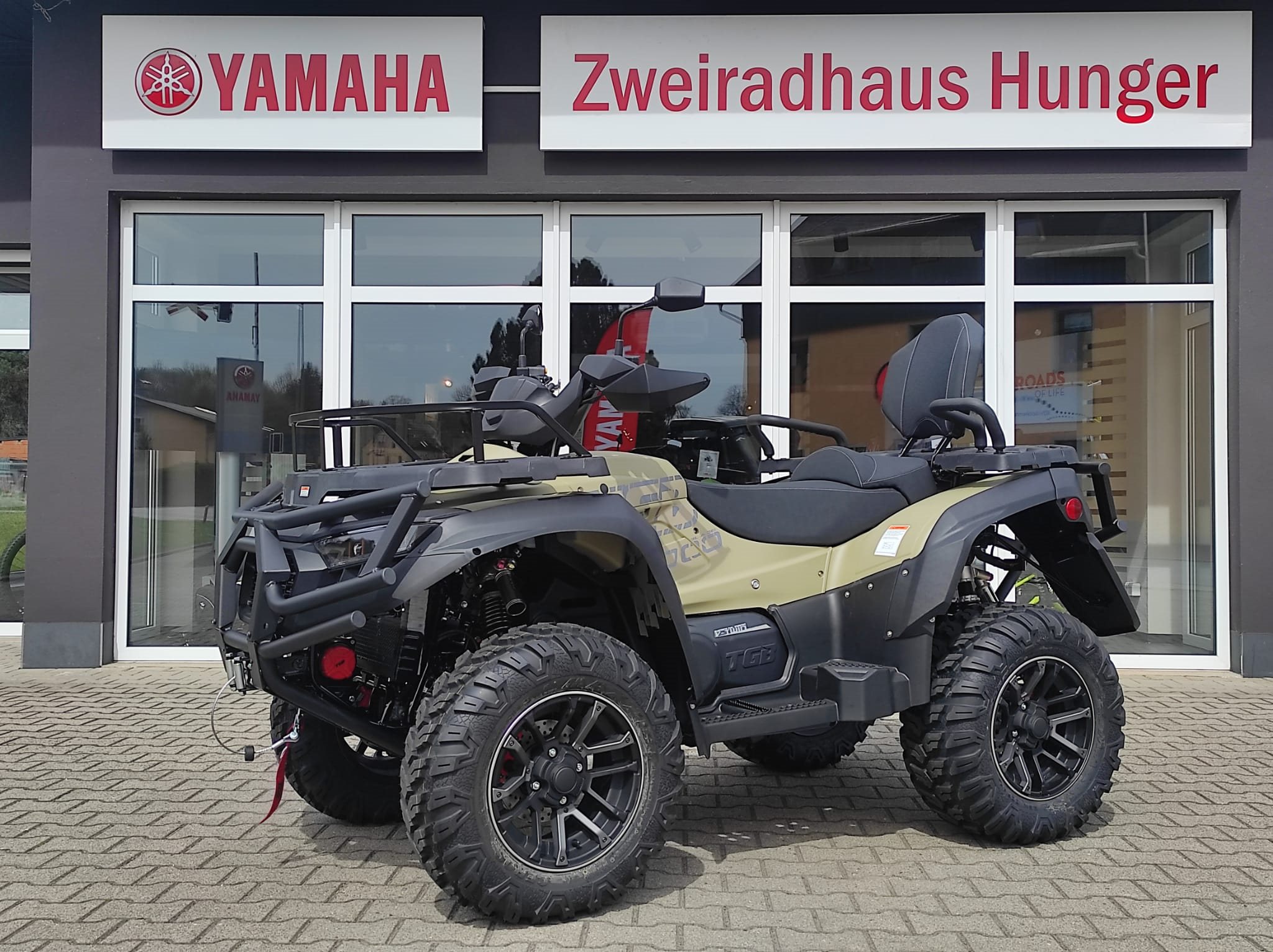 // Kraftvoller V2-Einspritzmotor// Elektronische Servolenkung (EPS)// Continental EFI-System// Einzelradaufhängung vorne & hinten// Kardanwellenantrieb mit Differential hinten// Allradantrieb elektrisch zuschaltbar// Differentialsperre vorne & hinten// Hochwertige ABS-Bremsanlage mit Scheibenbremsen vorne & hinten// 5-Stufen Gangwahlhebel// EVO-R-Fahrwerk// LED-Scheinwerfer und -Tagfahrlicht// NEUE LED-Blinker, -Rücklicht und -Bremslicht// TFT-Display// Robuste Kunststoff-Gepäckträger// Verlängerte Sitzbank// Handstützen und große Rückenlehne// 14" XTC Aluminiumfelgen mattschwarz mit Farbeinsatz// Rammschutz vorne// Seilwinde// versperrbare Staufächer// 12V-Steckdose// Abnehmbare Anhängerkupplung und Steckdose// Trittbrett für Sozius// versperrbarer Tankdeckel//
