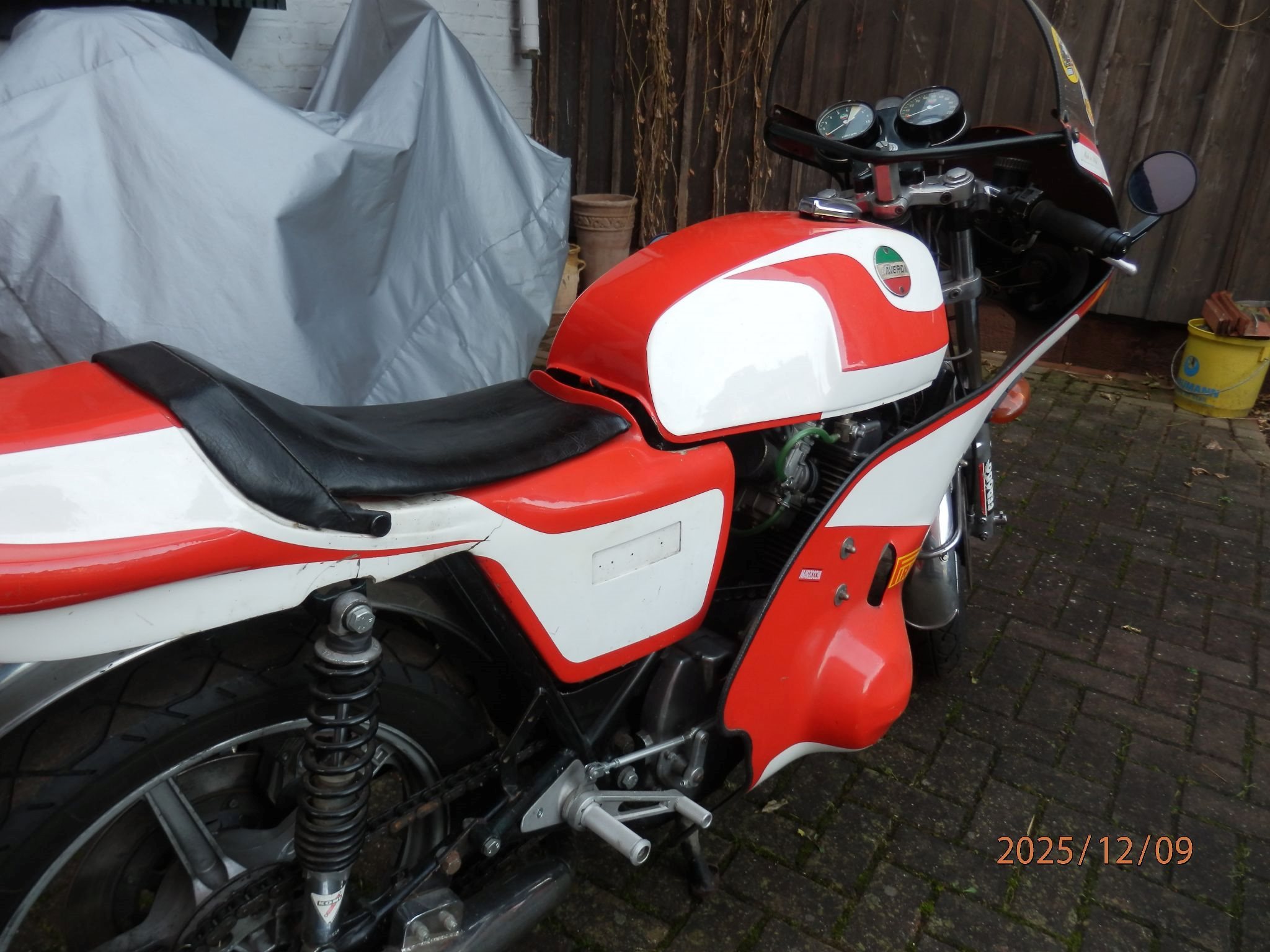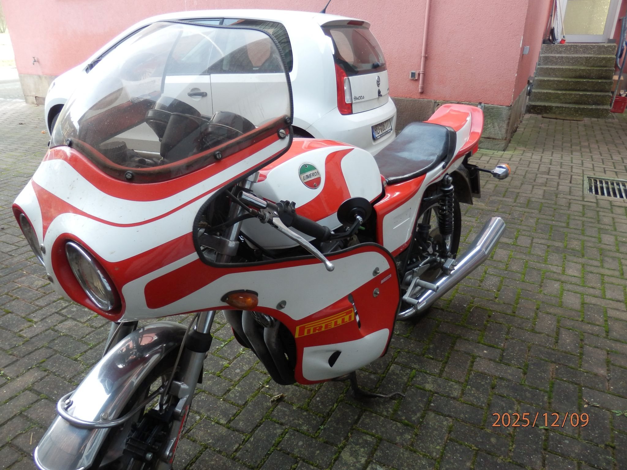 Ichkann meine Italienische Lady gesundheitlich nicht mehr fahren . Der Motor wurde 1980 (Stand 25000km) in Österreich Von der FA Sulzbacher komplett umgebaut (Rechnungen vorhanden) die Verkleidung mit Sitzbank ist eine Einzelanfertigung (im Brief eingetragen) Bereifung neu . Es wurde 2020 eine neue elektronische Zündanlage und Lichtmaschine (DMC) , und eine original Fussrastenanlage von Laverda von mir eingebaut dazu kahmen noch Stahlflex-Bremsleitungen vorne u. hinten .Es gibt auch noch eine 3-1 Anlage und eine 2-mannsitzbang sowie Vergaser ,Nockenwelle Vergaserdüsen Nadeln etc.