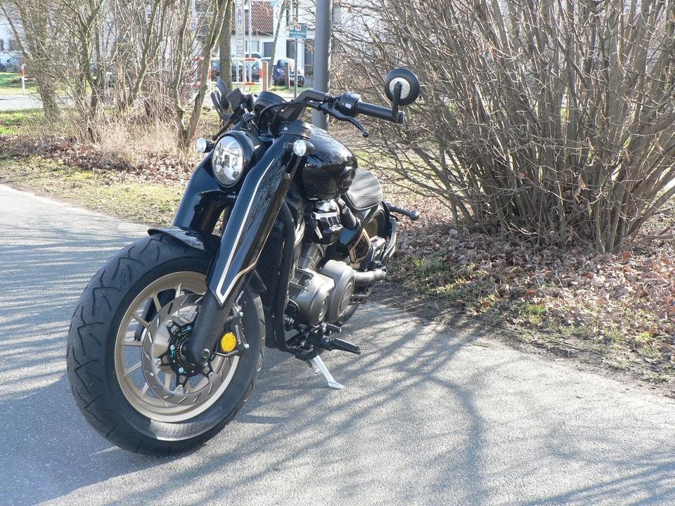 - Markante Optik: zieht viele Blicke auf sich, besonders in der Stadt, breiter 180er-Hinterreifen und stimmige Bobber-Ästhetik