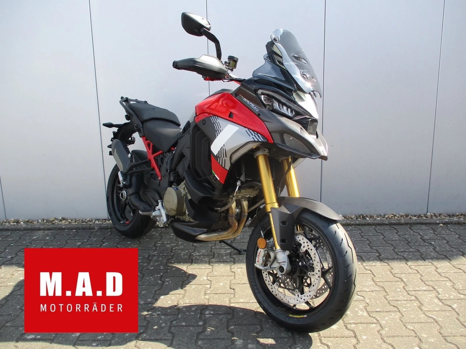 - Sicherheitsausstattung: Riding Modes, Power Modes, Kurven-ABS, Ducati Traction Control, Ducati Wheelie Control, Daytime Running Light, Ducati Cornering Light, Ducati Brake Light, Vehicle Hold Control, Radarsystem