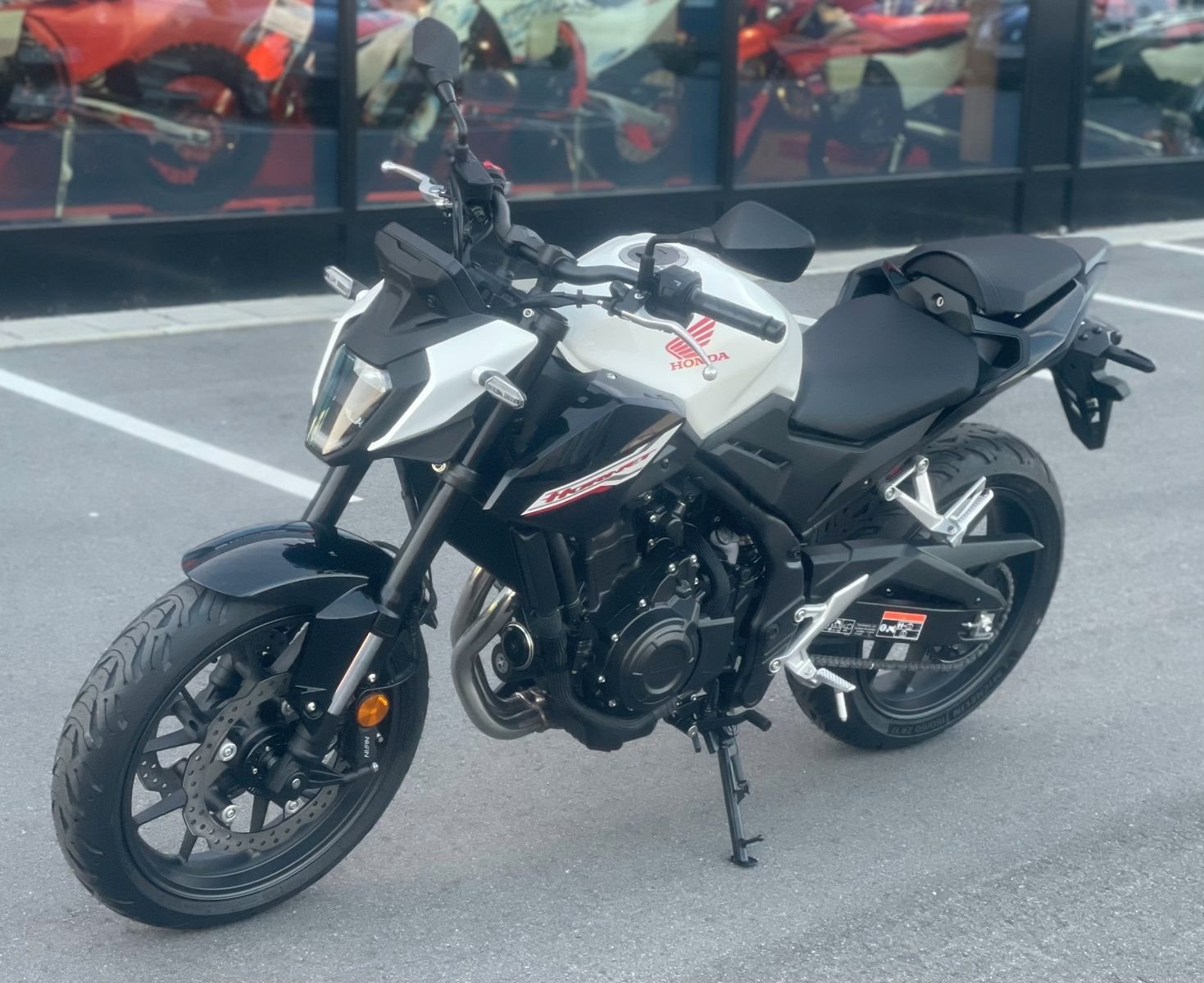 Du suchst ein ganz neues Fahrerlebnis? Dann ist die neue CB500 Hornet genau richtig für dich. Aggressives Streetfighter-Design mit echten Hornet-Genen. Mir dem dynamischen A2-konformen Zweizylindermotor und dem agilen, hochwertigen Chassis ist dieses Motorrad wie geschaffen für die Stadt oder kurvigen Landstraßen. Die herausragende Ausstattung, darunter ein 5-Zoll TFT-Farbdisplay, Honda RoadSync mit Turn-by-Turn-Bildschirmnavigation und Hinterrad-Gripregelung per HSTC, sorgt für Entertainment, Kontakt und Sicherheit. Join The Hive.