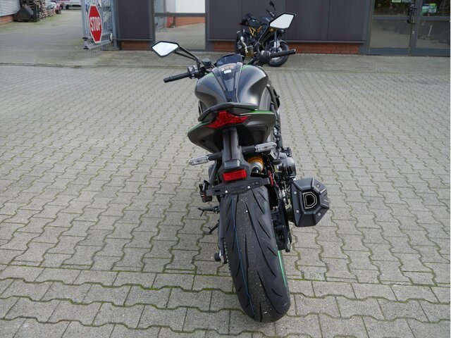 Die Z1100 verkörpert den Höhepunkt von Kawasakis einzigartiger Sugomi-Philosophie in Performance und Design - komprimiert in unserem hubraumstärksten Supernaked Z-Modell. Sie übernimmt ihre verdiente Rolle als neue Spitzenreiterin in der Familie der Z-Modelle mit Saugmotor. Dieser lauernde Jäger ist jederzeit bereit zum Angriff: mit seinem drehmomentstarken 1.099-cm3-Motor und einer beeindruckenden Auswahl modernster Fahrerassistenz-Technologien begeistert die Z1100 besonders leistungsorientierte und sportlich ambitionierte Fahrer, die das Maximum an Fahrspaß und intensiver Sinneserfahrung suchen.