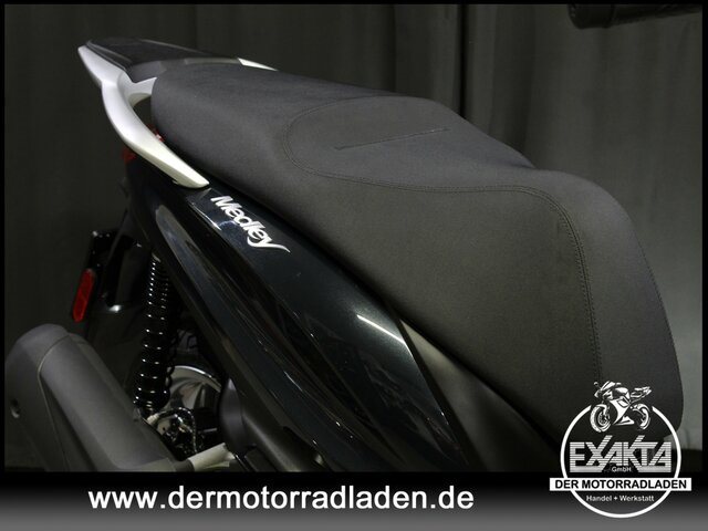 Der Medley hat mit der Piaggio i-get-Motoren-Technologie in puncto Power kräftig zugelegt. Mit satten 15 PS und 12 Nm Drehmoment setzt sich der Piaggio Medley 125 mit seinem flüssigkeitsgekühlten 125er-Vierventil-Motor und Start-Stopp-Automatik erstklassig in Szene. Handlich, sicher folgt der Medley 125 zielgenau der gewünschten Kurvenlinie. Er bleibt auch bei Topspeed dank seines großen 16-Zoll Vorderrades absolut spurstabil. Komfortabel, mit ergonomischer Sitzbank und klappbaren Soziusfußrasten, genießen Fahrer und Beifahrer jeden Kilometer. Lichtstark mit Full-LED-Scheinwerfer und informativ mit LCD-Multifunktions-Display ausgestattet, ist der Medley stylisch und funktionell zugleich.