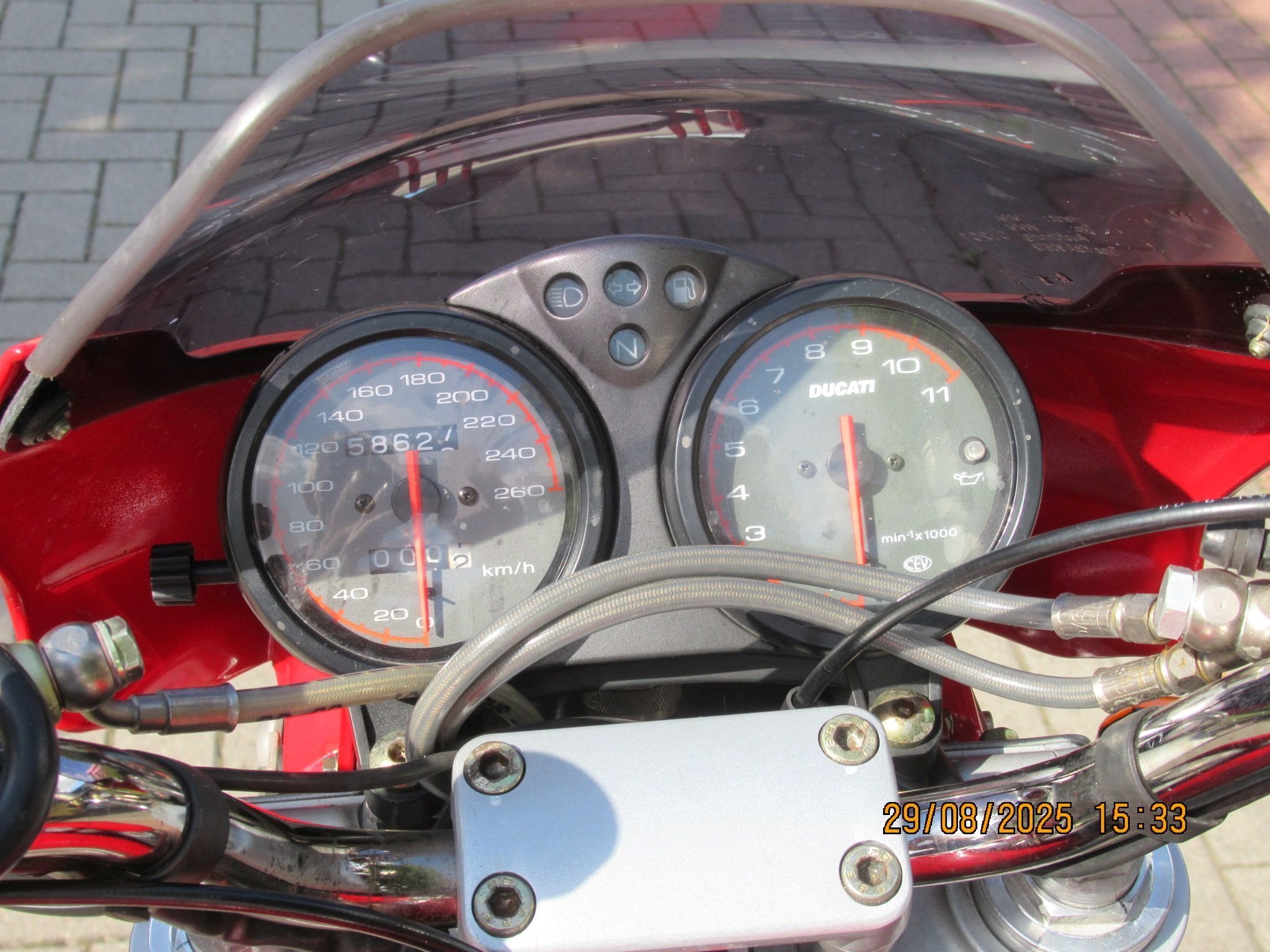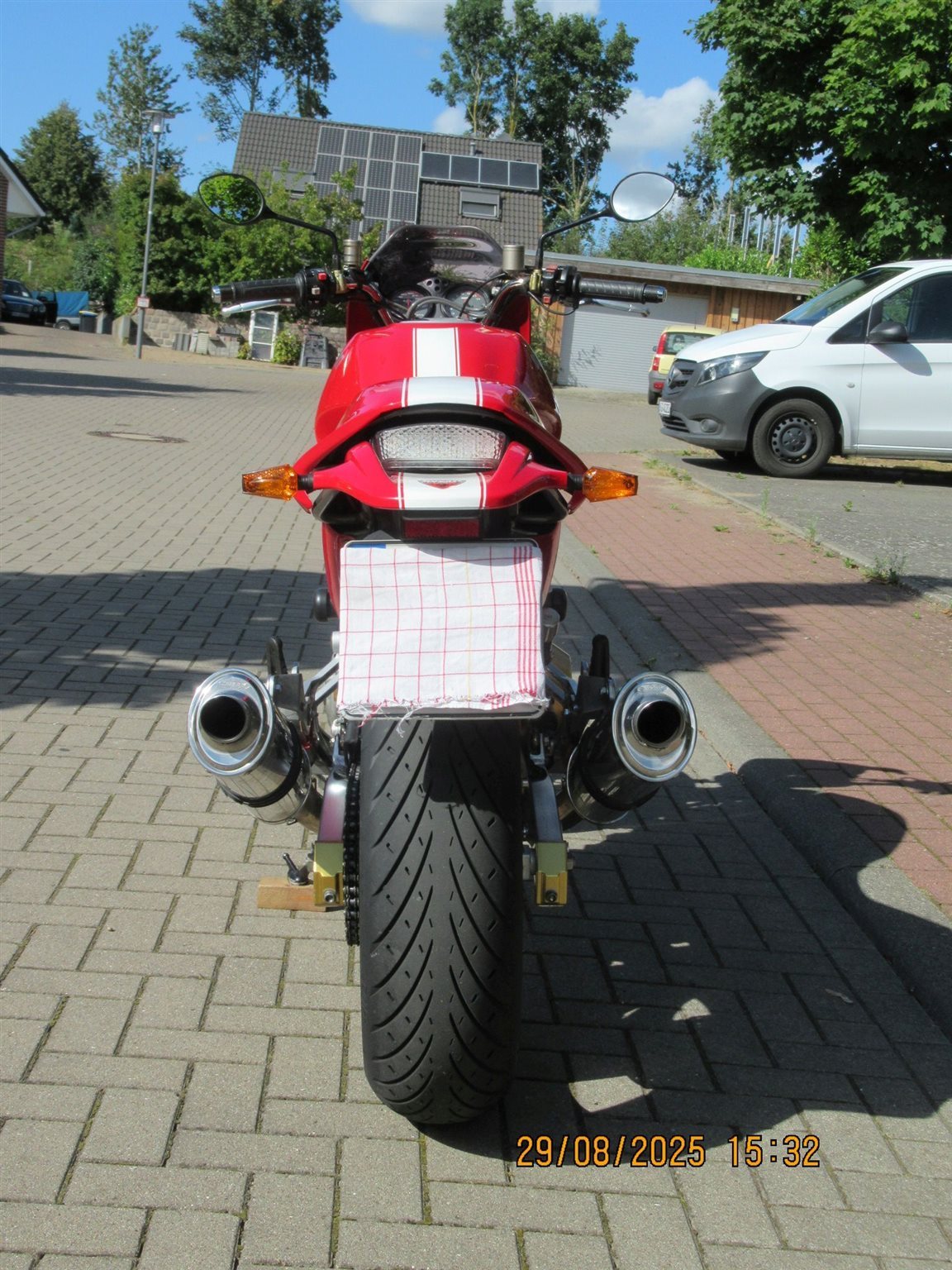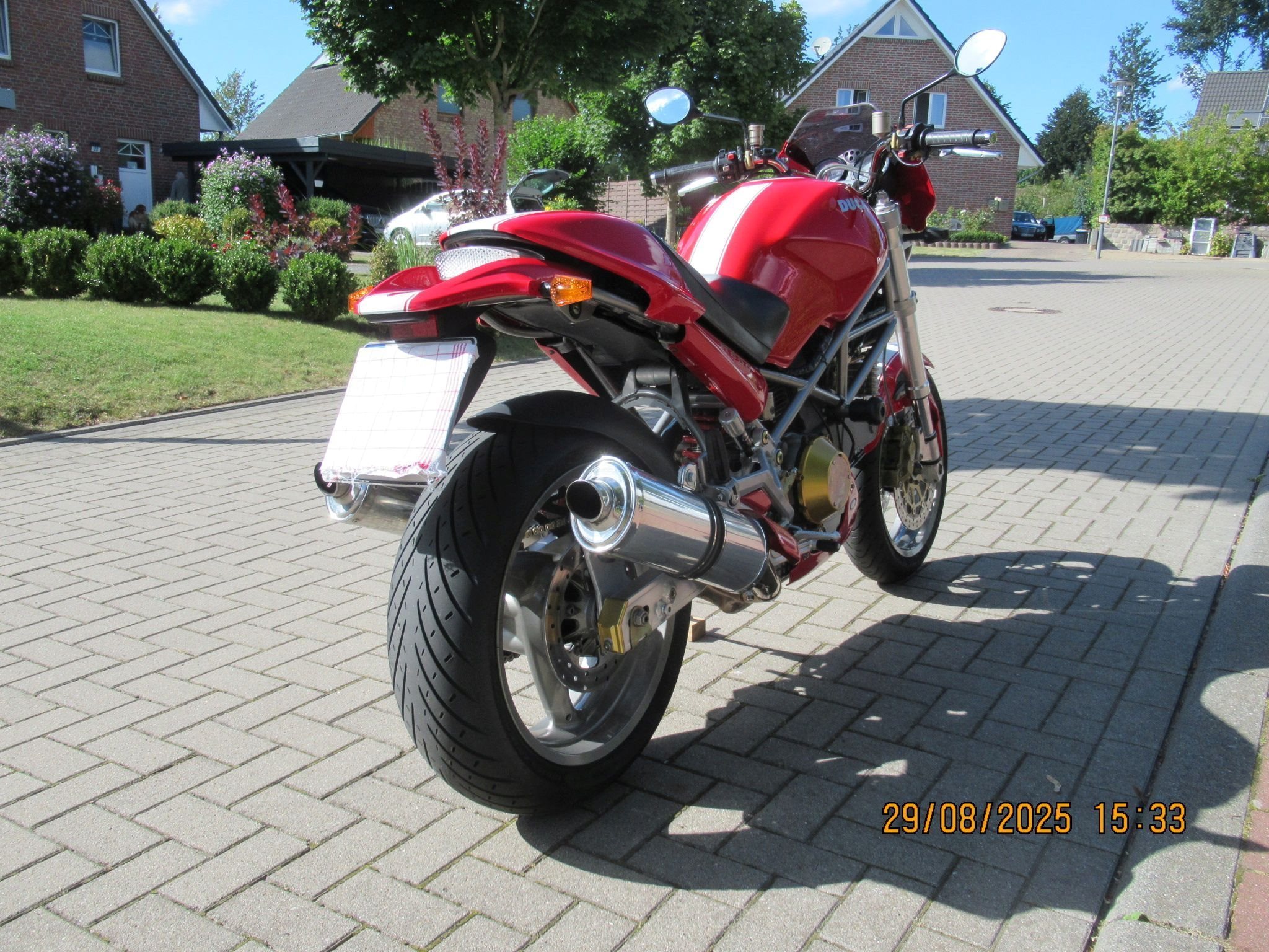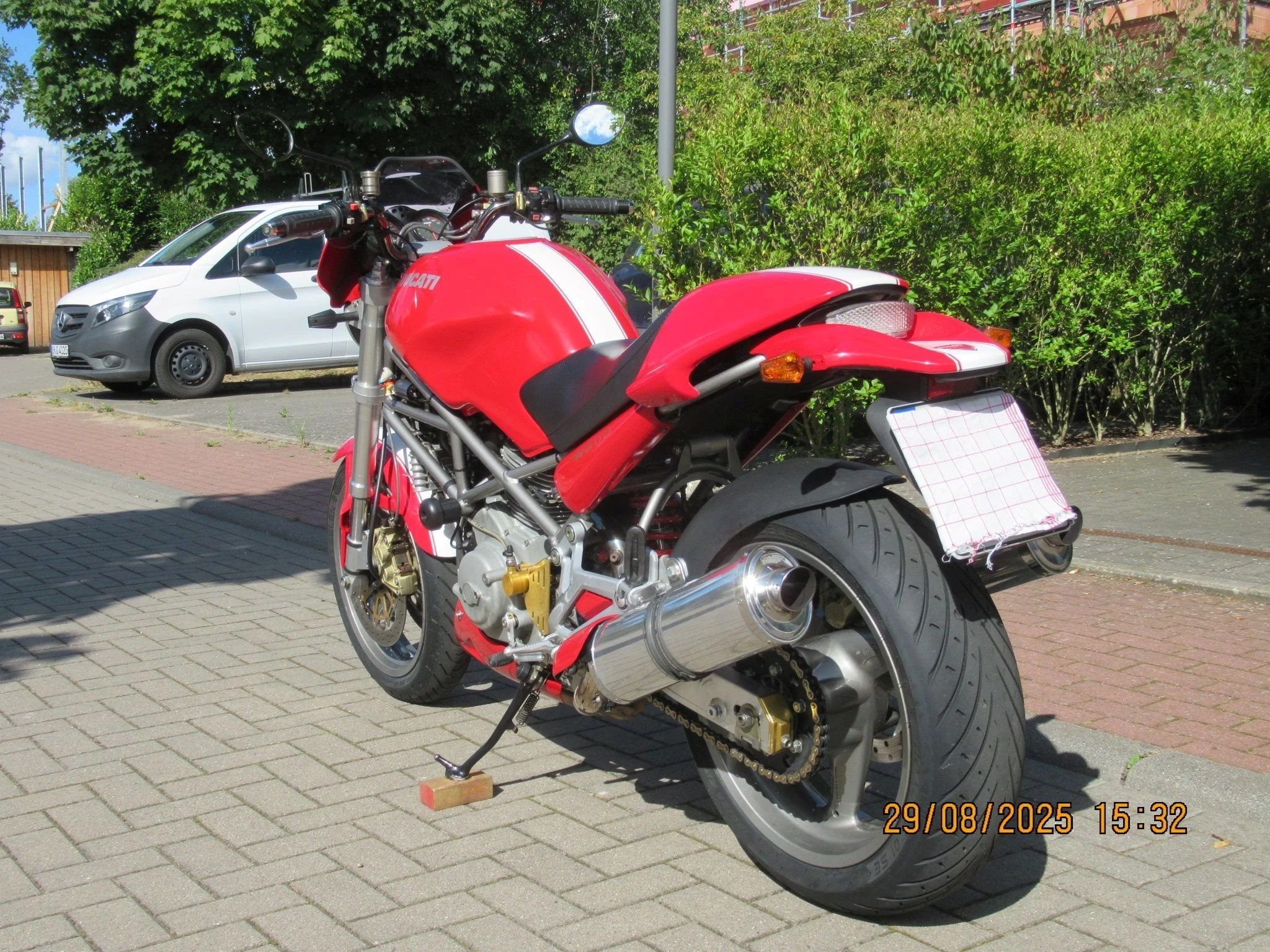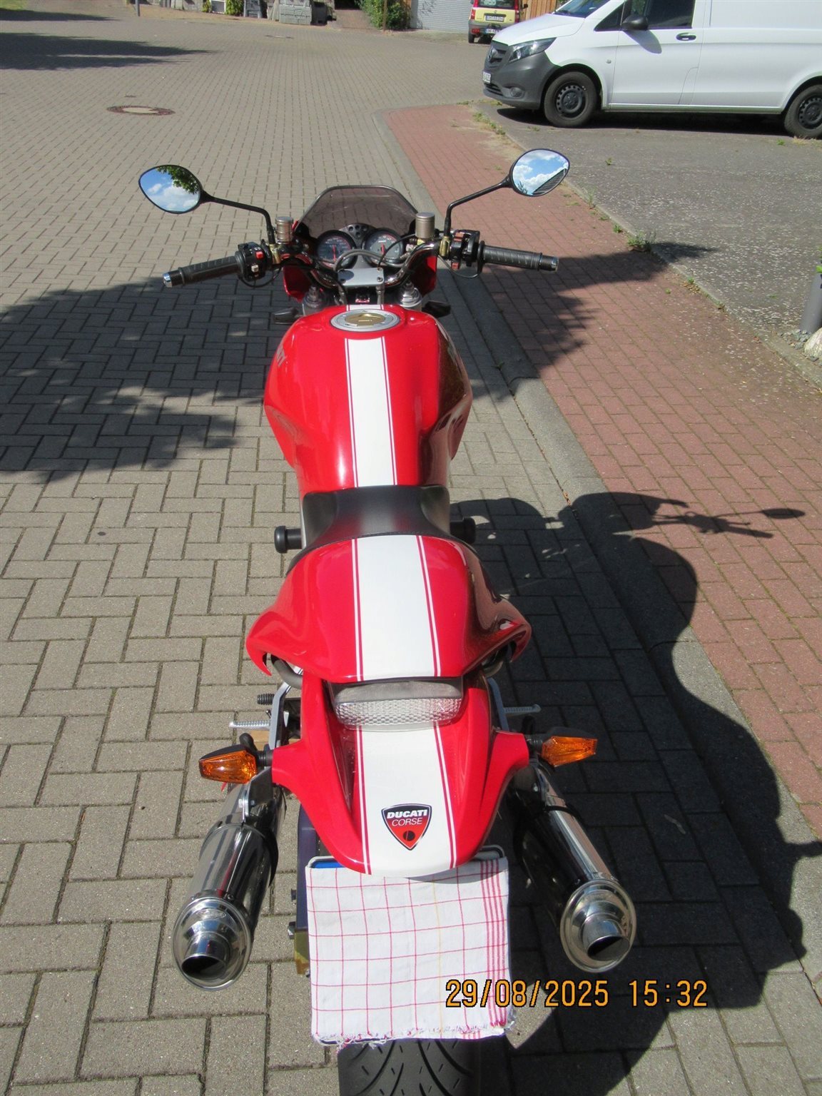 Alle Anbau- und Ergänzungsteile sind von Ducati, haben eine ABE oder sind TÜV- zugelassen, ggf. eingetragen. Als Hinterrad darf ein 180-er Reifen ohne Markenbindung gefahren werden. Derzeit Metzeler Roadtec 01 SE, 95%.