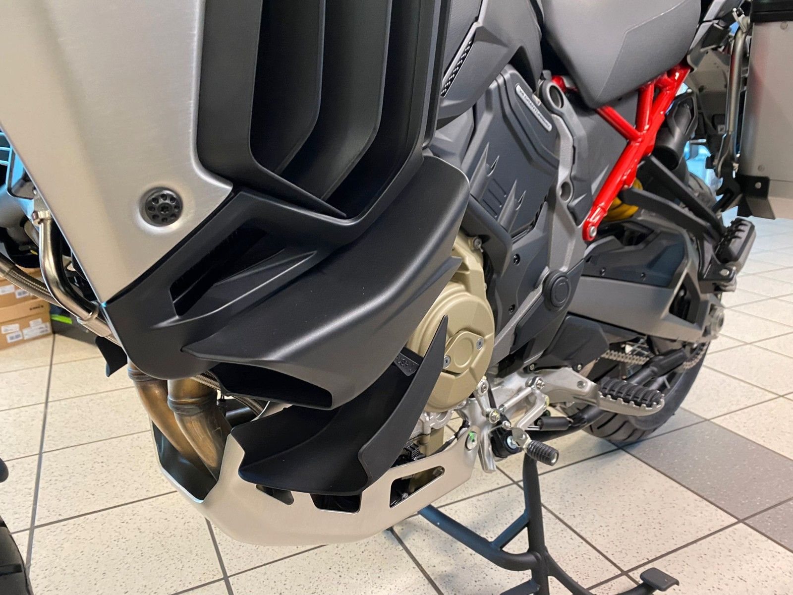 Ducati Quick Shift (DQS) Up/Down 2.0, Ducati Skyhook Suspension, Coming-Home-Funktion, TFT-Farbdisplay, erweiterte Deaktivierungs-Strategie (Extended Cylinder Deactivation - ECD), Hands-Free, Voll-LED-Beleuchtung, Voll-LED-Scheinwerfer, Daytime Running Light (DRL), automatische Blinkerrückstellung, Heizgriffe, Minimum Preload, Karten-Navigation, 12V-Steckdose, USB-Anschluss, beleuchtete Bedienelemente, Tyre Pressure Monitoring System (TPMS), Radarsystem (Adaptive Cruise Control, Forward Collision Warning, Blind Spot Detection)