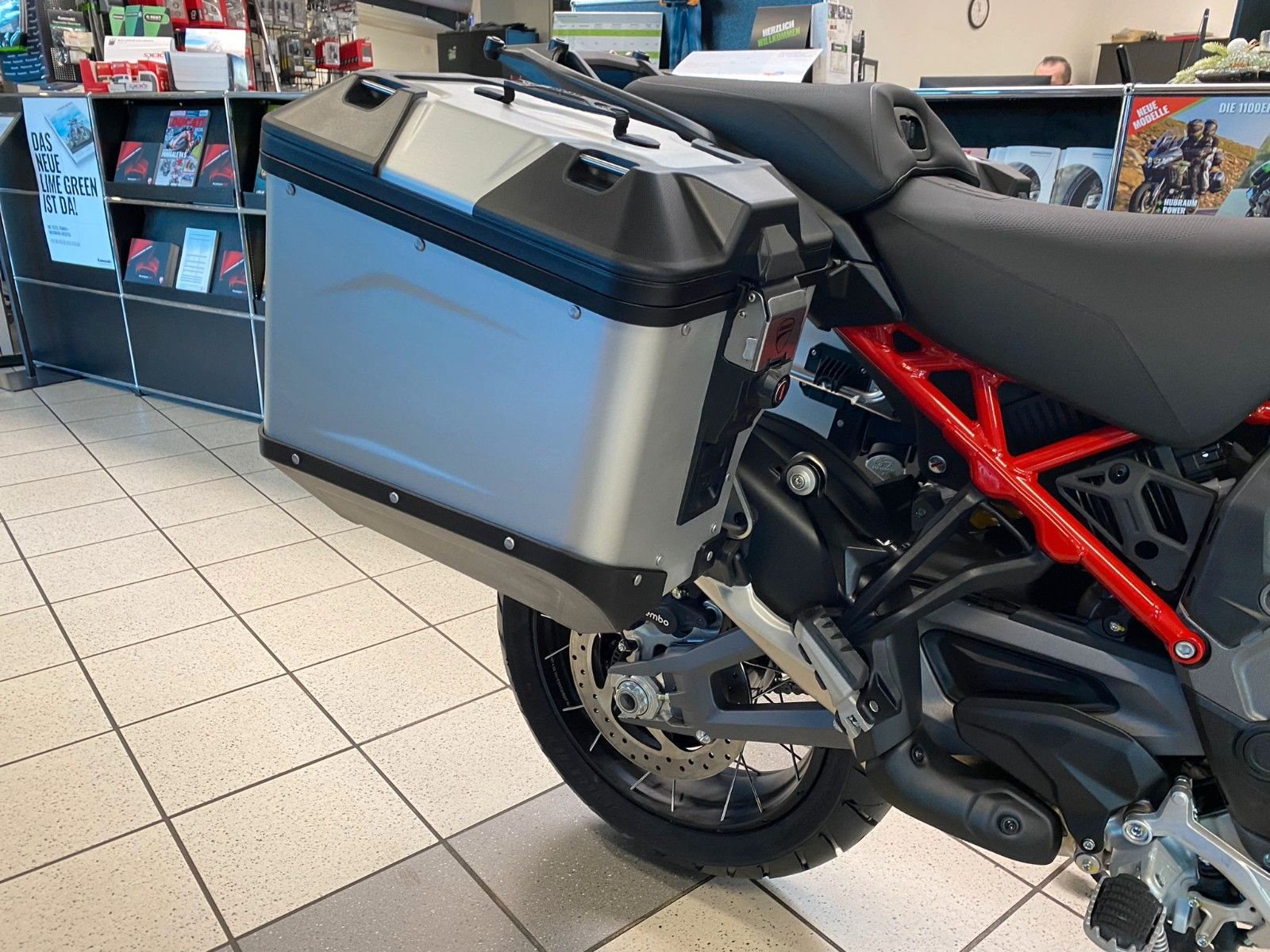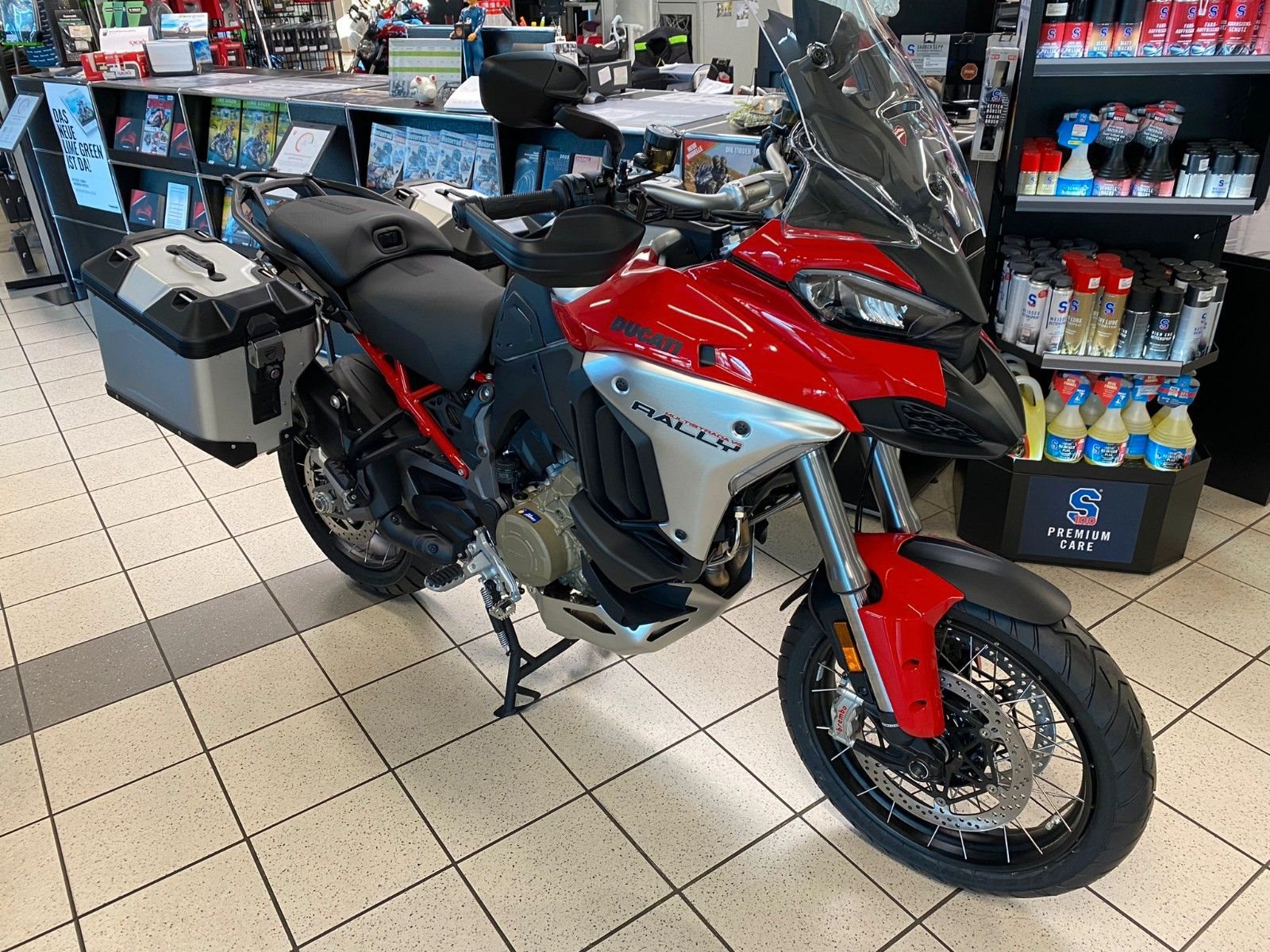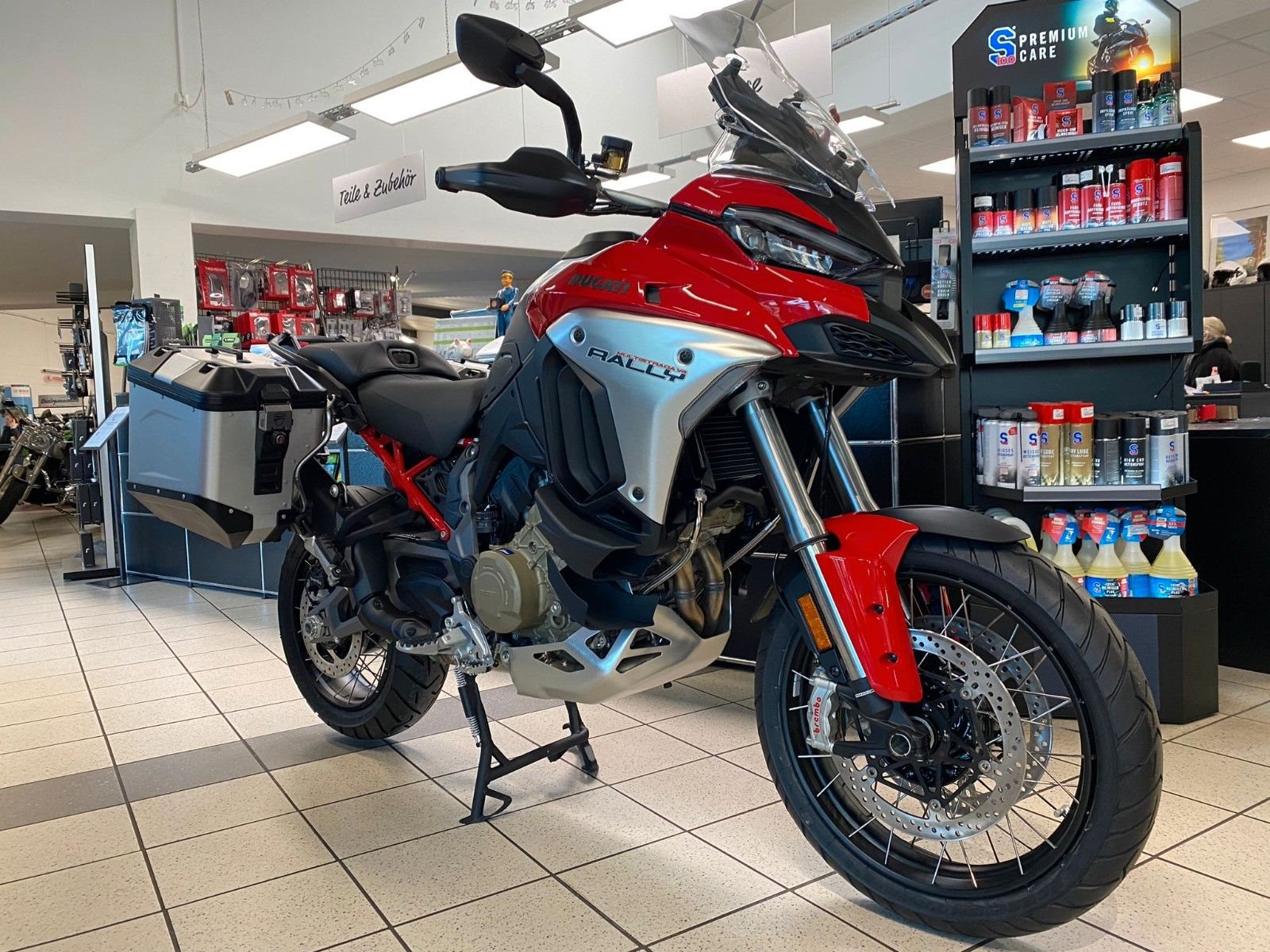 Ducati Quick Shift (DQS) Up/Down 2.0, Ducati Skyhook Suspension, Coming-Home-Funktion, TFT-Farbdisplay, erweiterte Deaktivierungs-Strategie (Extended Cylinder Deactivation - ECD), Hands-Free, Voll-LED-Beleuchtung, Voll-LED-Scheinwerfer, Daytime Running Light (DRL), automatische Blinkerrückstellung, Heizgriffe, Minimum Preload, Karten-Navigation, 12V-Steckdose, USB-Anschluss, beleuchtete Bedienelemente, Tyre Pressure Monitoring System (TPMS), Radarsystem (Adaptive Cruise Control, Forward Collision Warning, Blind Spot Detection)