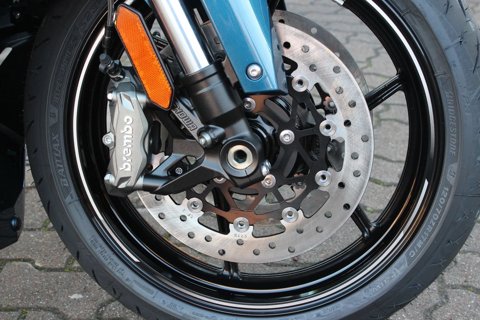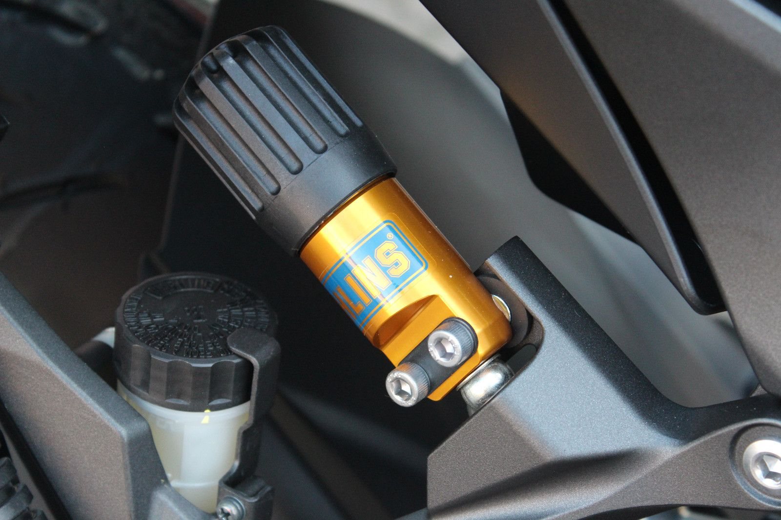 - BREMBO-Bremse, SHOWA-Gabel, Öhlins-Federbein