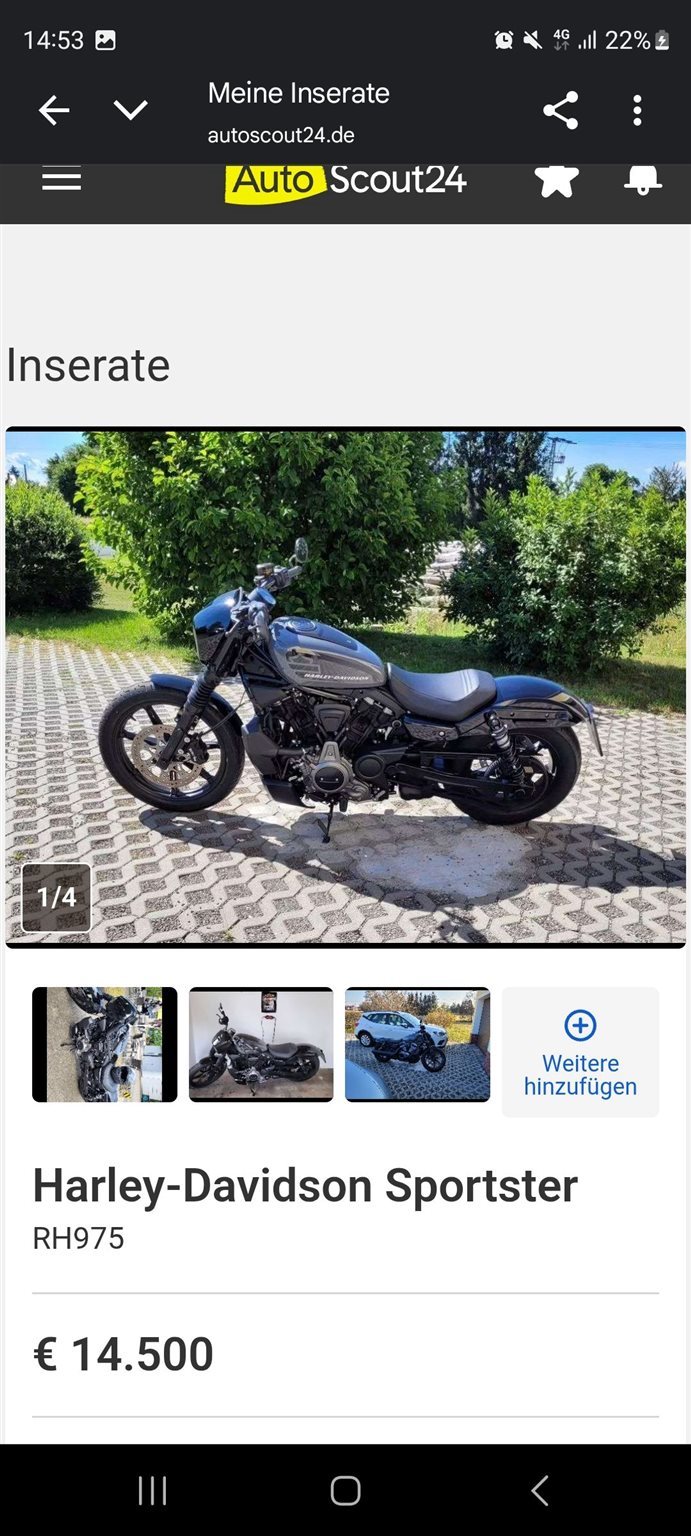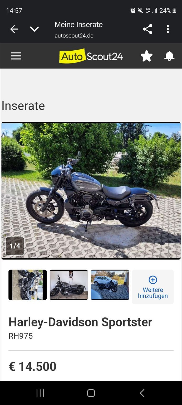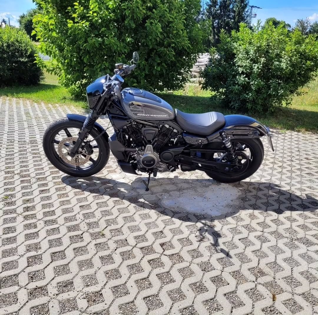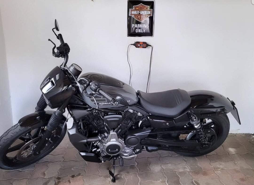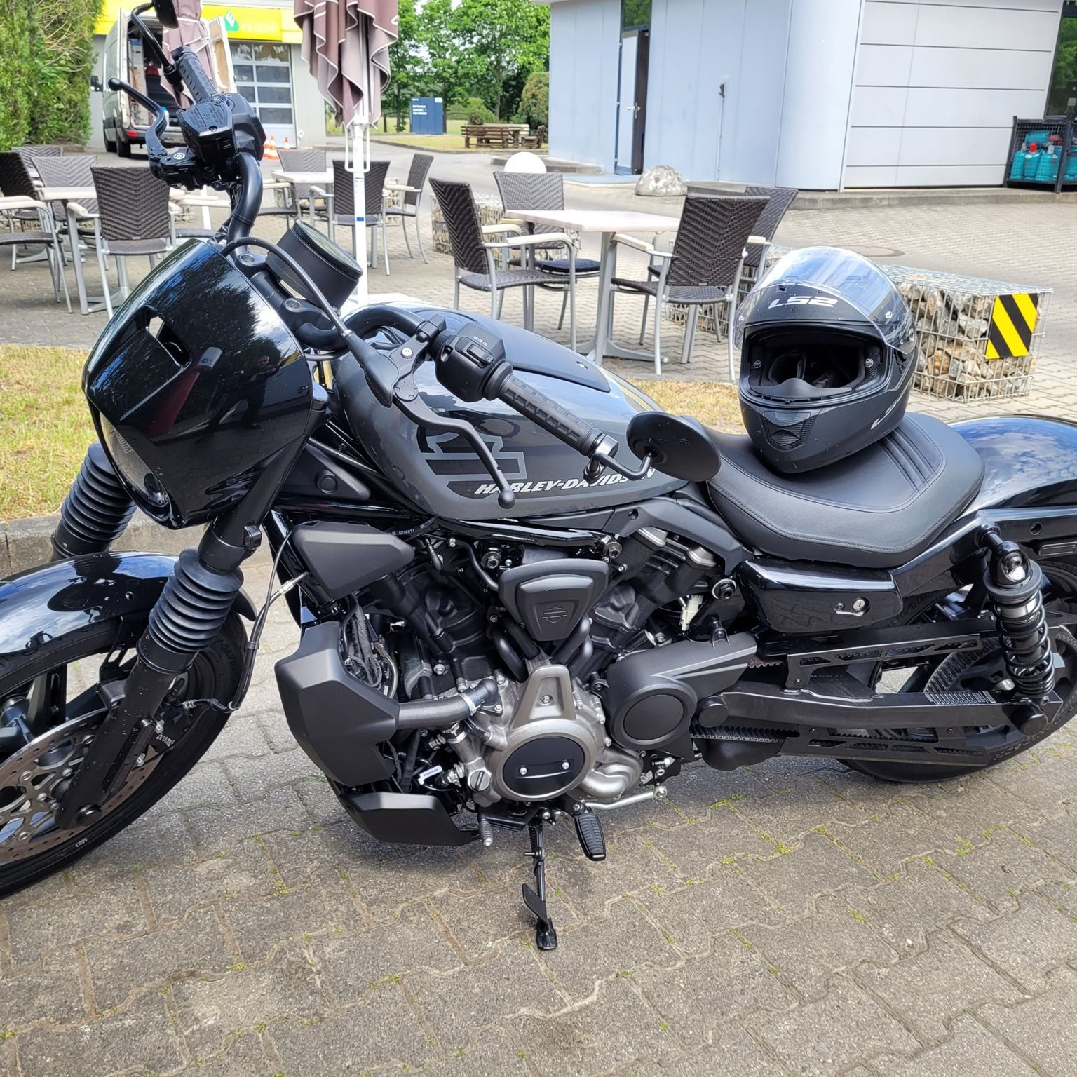 Die Harley-Davidson befindet sich in einem guten Zustand. Sie ist auf A2 gedrosselt, verfügt über LED-Blinker vorne und hinten sowie schwarze seitliche Strahler.