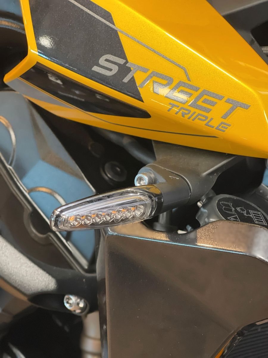 Die Street Triple 765 RS ist kein Motorrad für Kompromisse. Sie richtet sich an Fahrer, die Präzision spüren, Leistung erleben und Kontrolle genießen wollen. Ob ambitionierte Landstraßenfahrt oder sportlicher Einsatz - dieses Bike vermittelt jederzeit das Gefühl, genau das richtige Werkzeug in den Händen zu halten. Direkt, hochwertig, emotional.