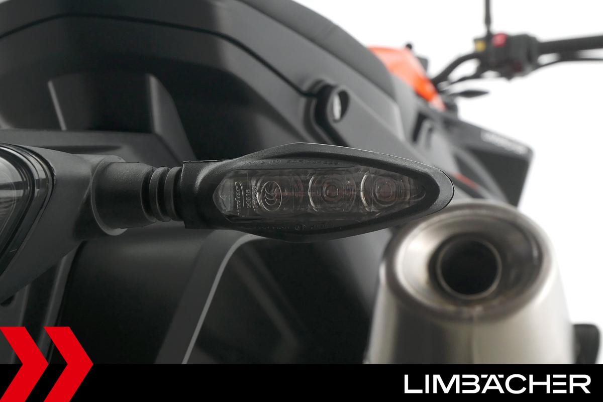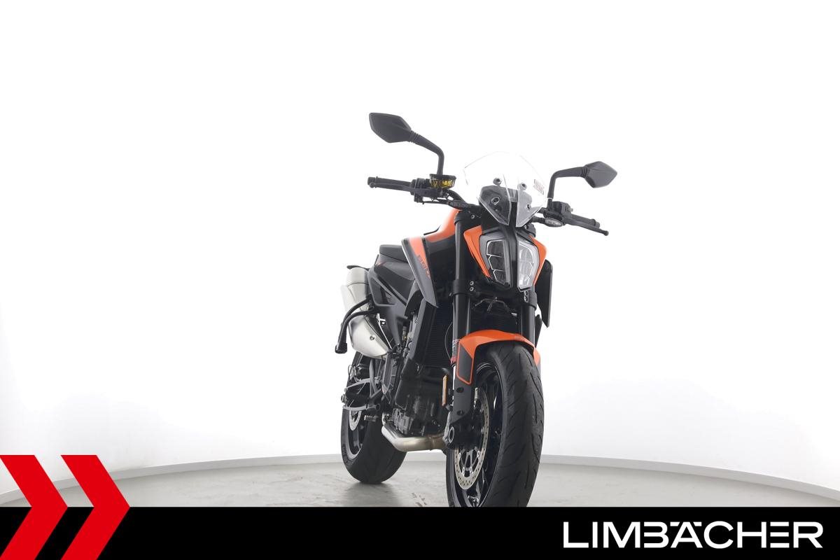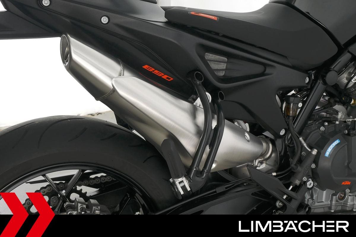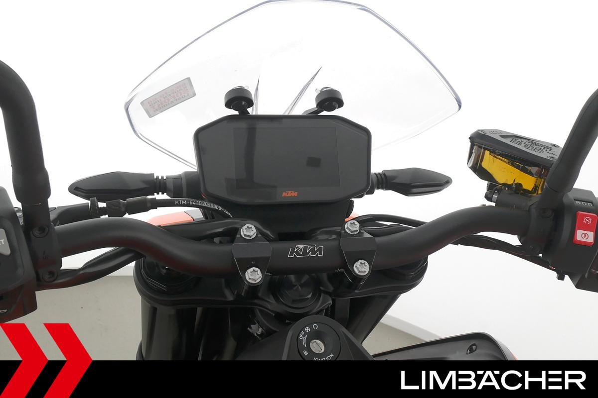 Eine scheckheftgepflegte KTM 890 Duke aus zweiter Hand in sehr gepflegtem Zustand u.a. mit KTM-Windschild und Powerparts-Fahrersitz.