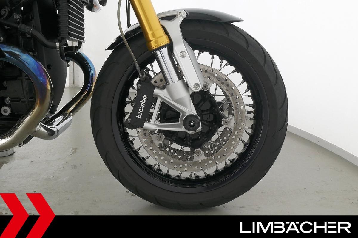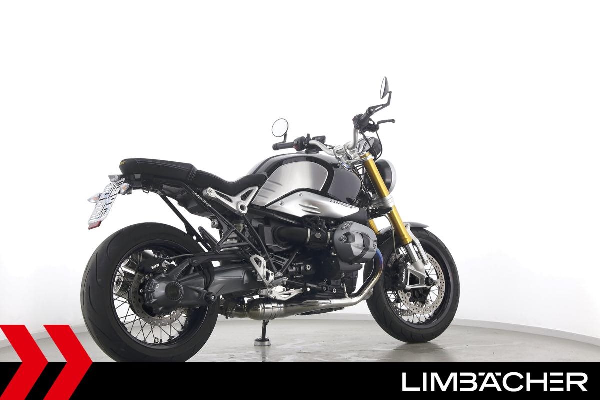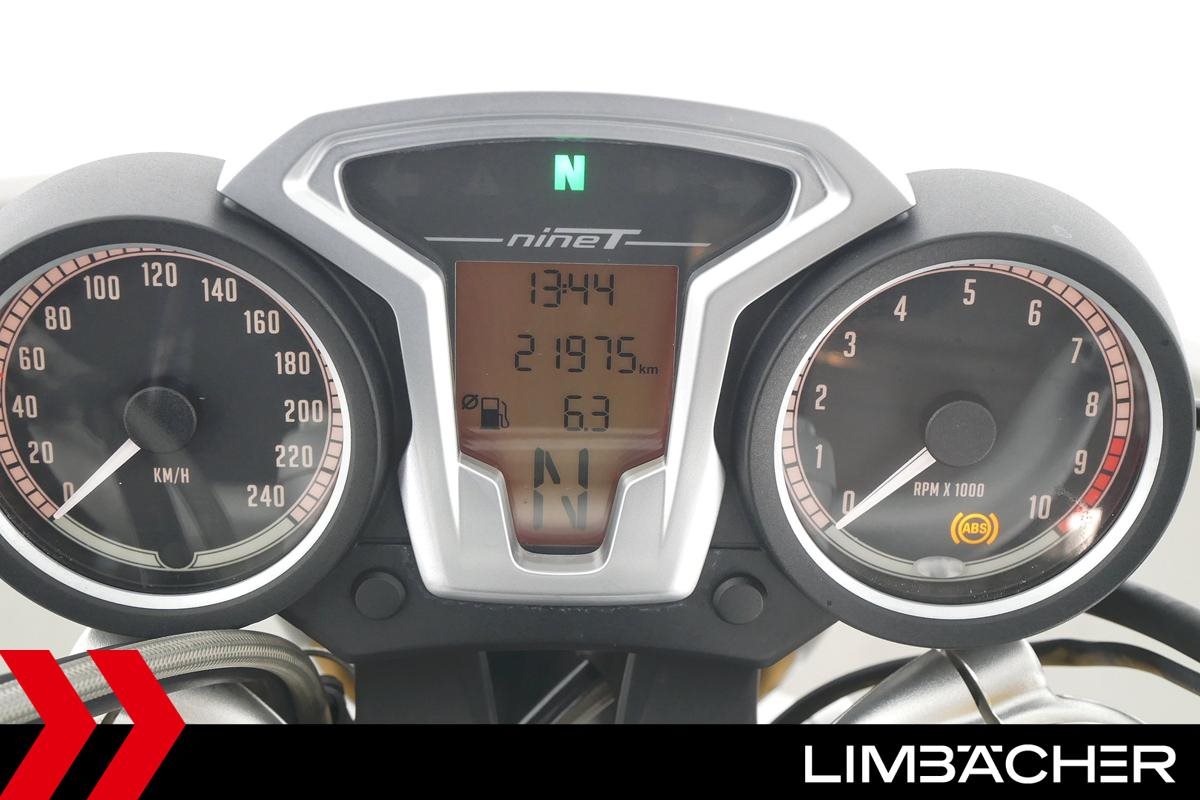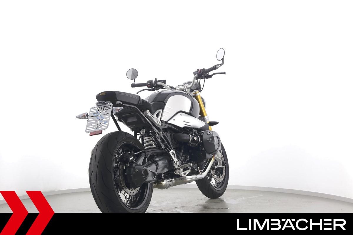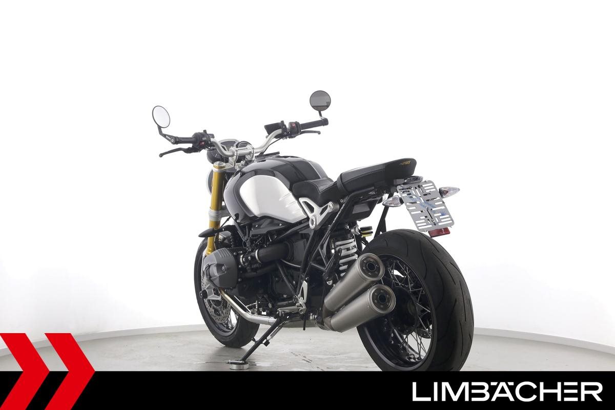 Eine BMW R nineT in sehr gepflegtem Zustand u.a. mit Akrapovic-Doppel-Endschalldämpfer sowie gesteppter Komfort-Sitzbank.