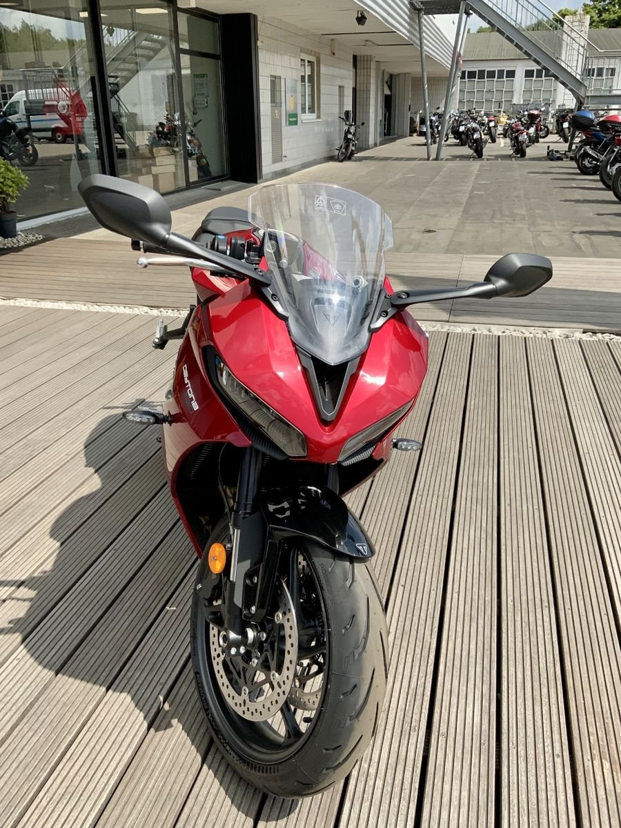 DAYTONA 660 Sportliches Handling - intuitiv und agil - mit besonderem Fahrkomfort und der aufregenden Performance des Dreizylindermotors. Perfekt ausgewogene Agilität und Fahrspaß pur - die Daytona 660 ist für jede Straße gebaut.