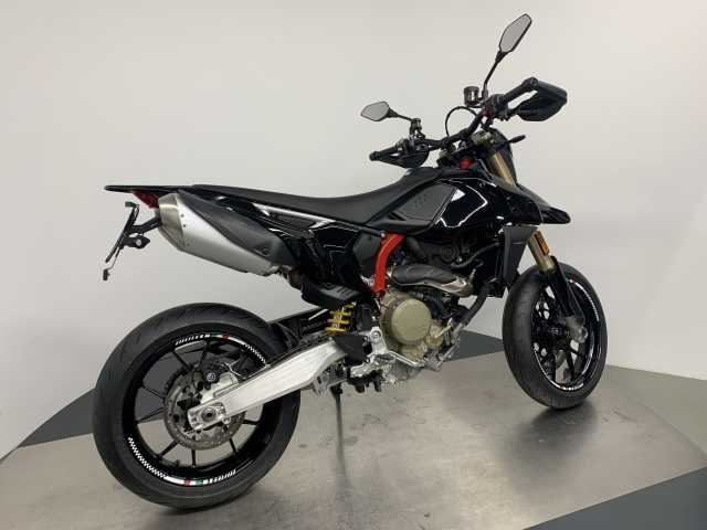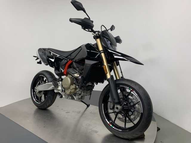 Hypermotard 698, lackiert in orig. Ducati-Lack nero lucido und noch weiter aufgewertet mit LED-Blinkern vorne und hinten von Ducati und einem kurzen Kennzeichenhalter sowie Felgenaufklebern.