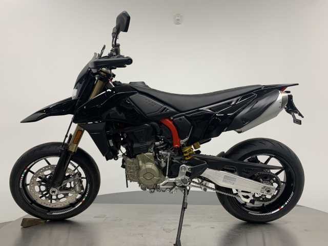 Hypermotard 698, lackiert in orig. Ducati-Lack nero lucido und noch weiter aufgewertet mit LED-Blinkern vorne und hinten von Ducati und einem kurzen Kennzeichenhalter sowie Felgenaufklebern.