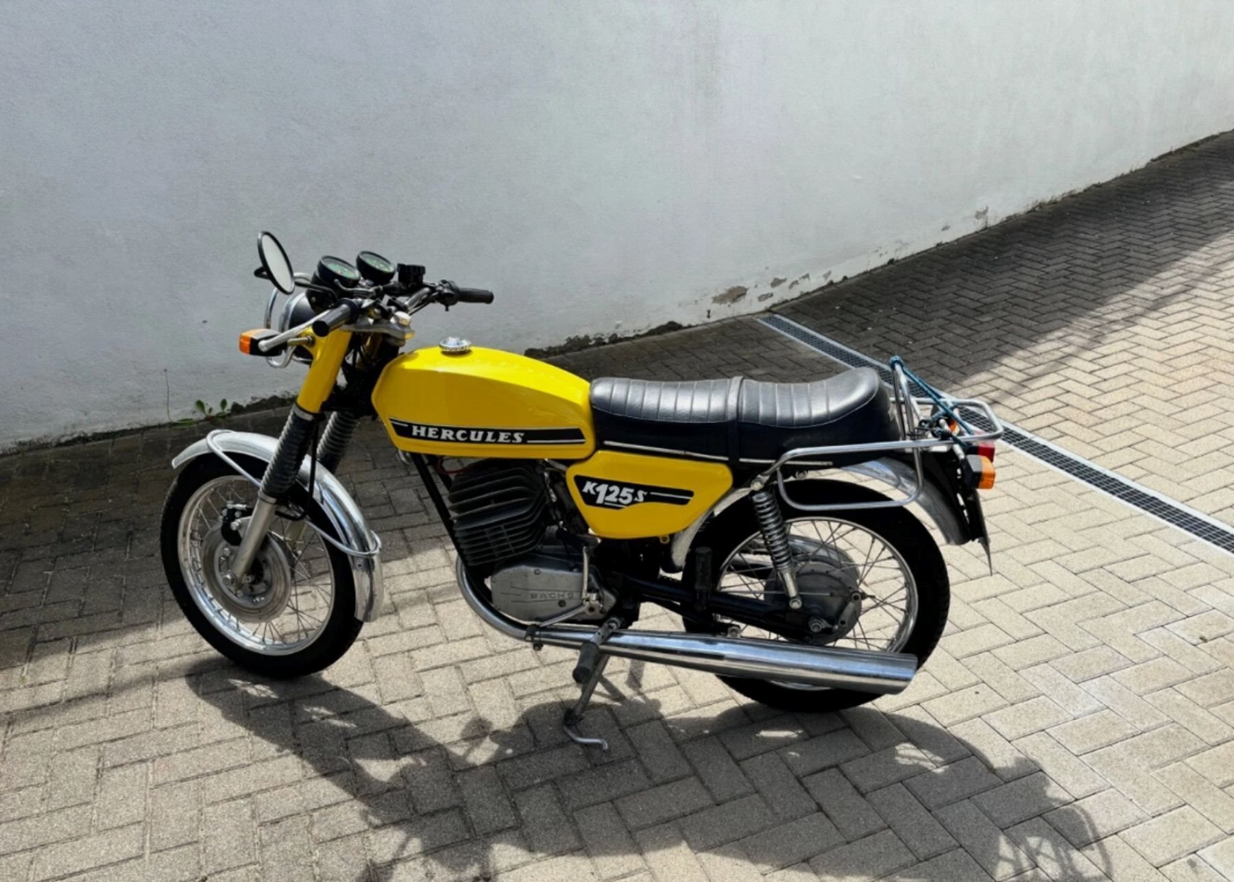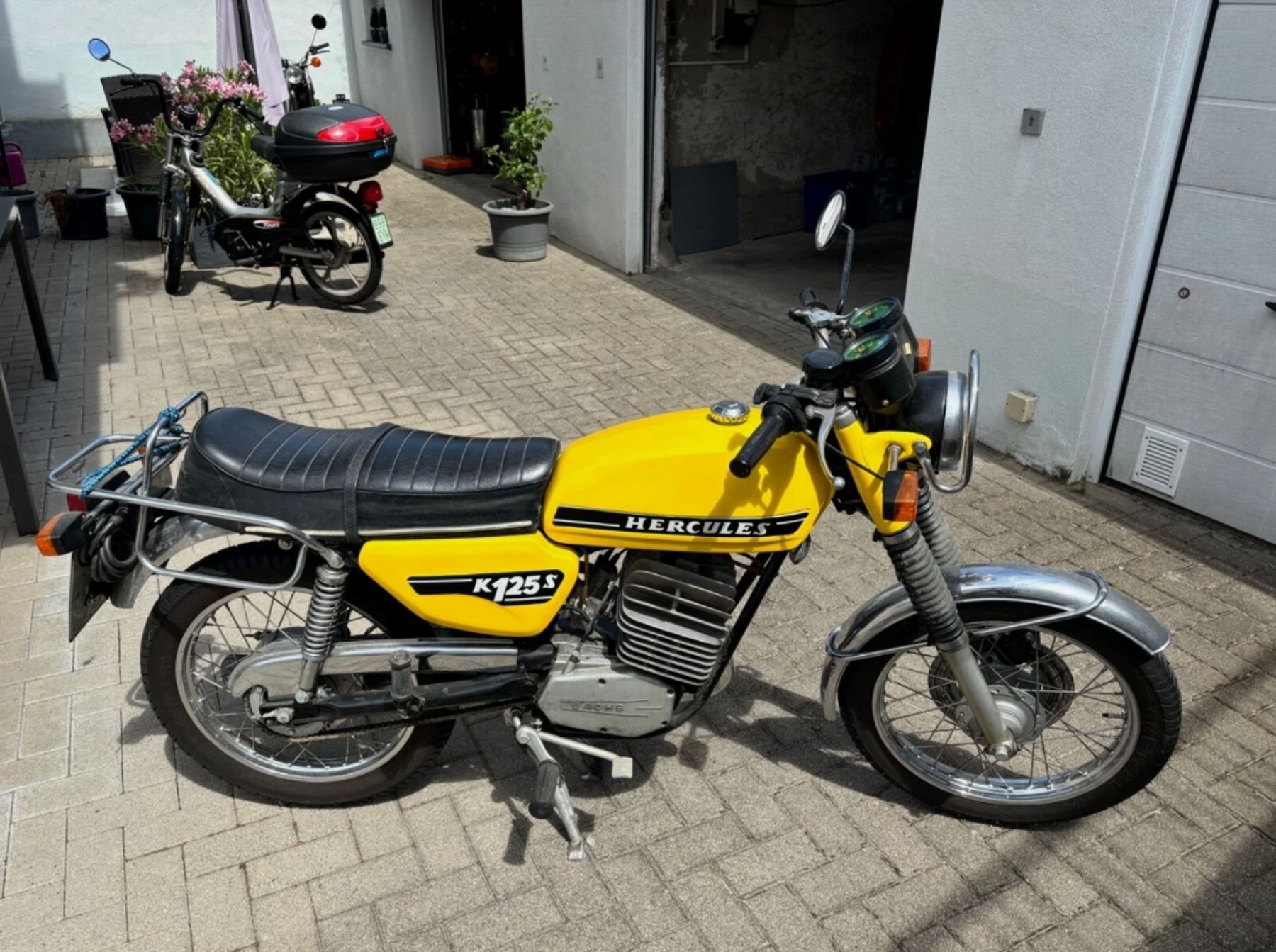 Hercules K 125 S Speiche mit Scheibenbremse, springt gut an, läuft super wie Gift, 6-Gang, schaltet und bremst gut,alles überholt und gemacht, Lack sehr schön, Lafranconi-Auspuff und Krümmer neu, Gepäckträger neu, Kettenschutz neu, Felgen, Speichen und Reifen ca. 2 Jahre alt, wurde seit dem Max. 50 KM gefahren, Kolben Original Sachs neu, Stoßdämpfer neu,