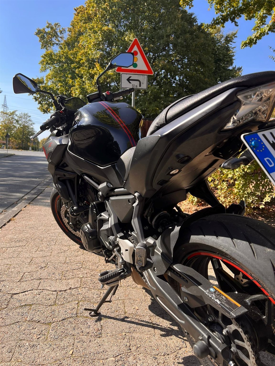 Ich verkaufe meine schöne Kawasaki Z650 ungedrosselt in schwarz mit roten Details.