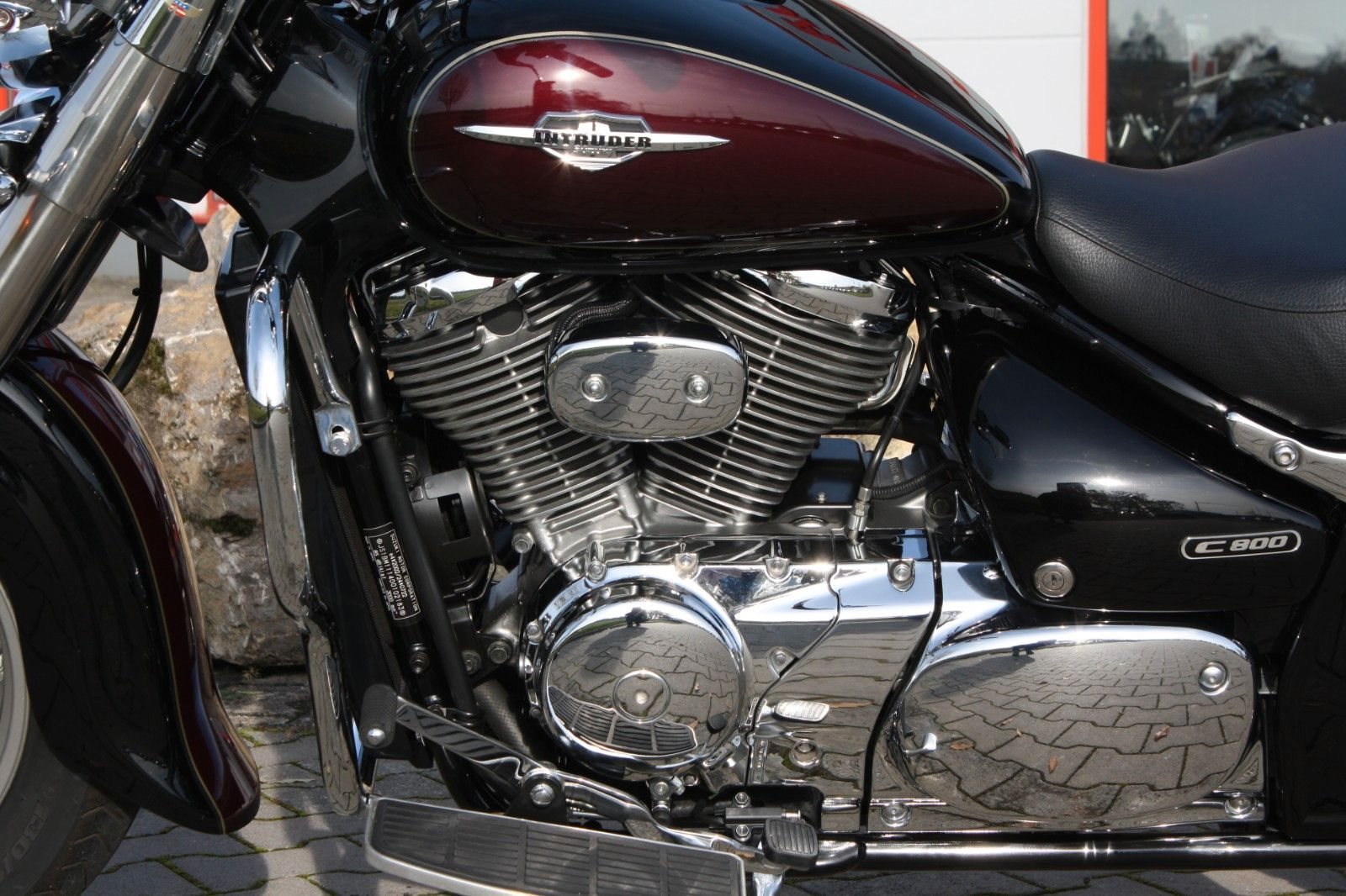 Zum Verkauf steht eine Suzuki Intruder C 800 in Schwarz und Weinrot-Metallic. Das Motorrad befindet sich in hervorragend gepflegtem Zustand. Ausgestattet ist die Intruder unter anderem mit einem massiven Sturzbügel, einer großen Windschutzscheibe sowie einer Sissy Bar mit Gepäckträger, die zusätzlichen Komfort für den Sozius bietet. Der Jahreskundendienst wurde frisch durchgeführt, und alle Verschleißteile befinden sich in gutem Zustand. Ein sehr schöner Cruiser - ideal für entspannte Touren.