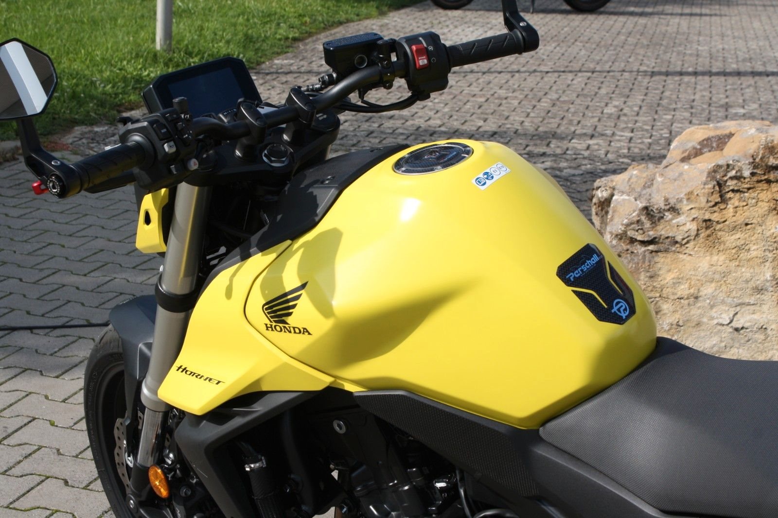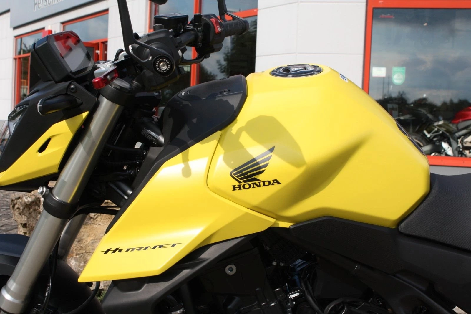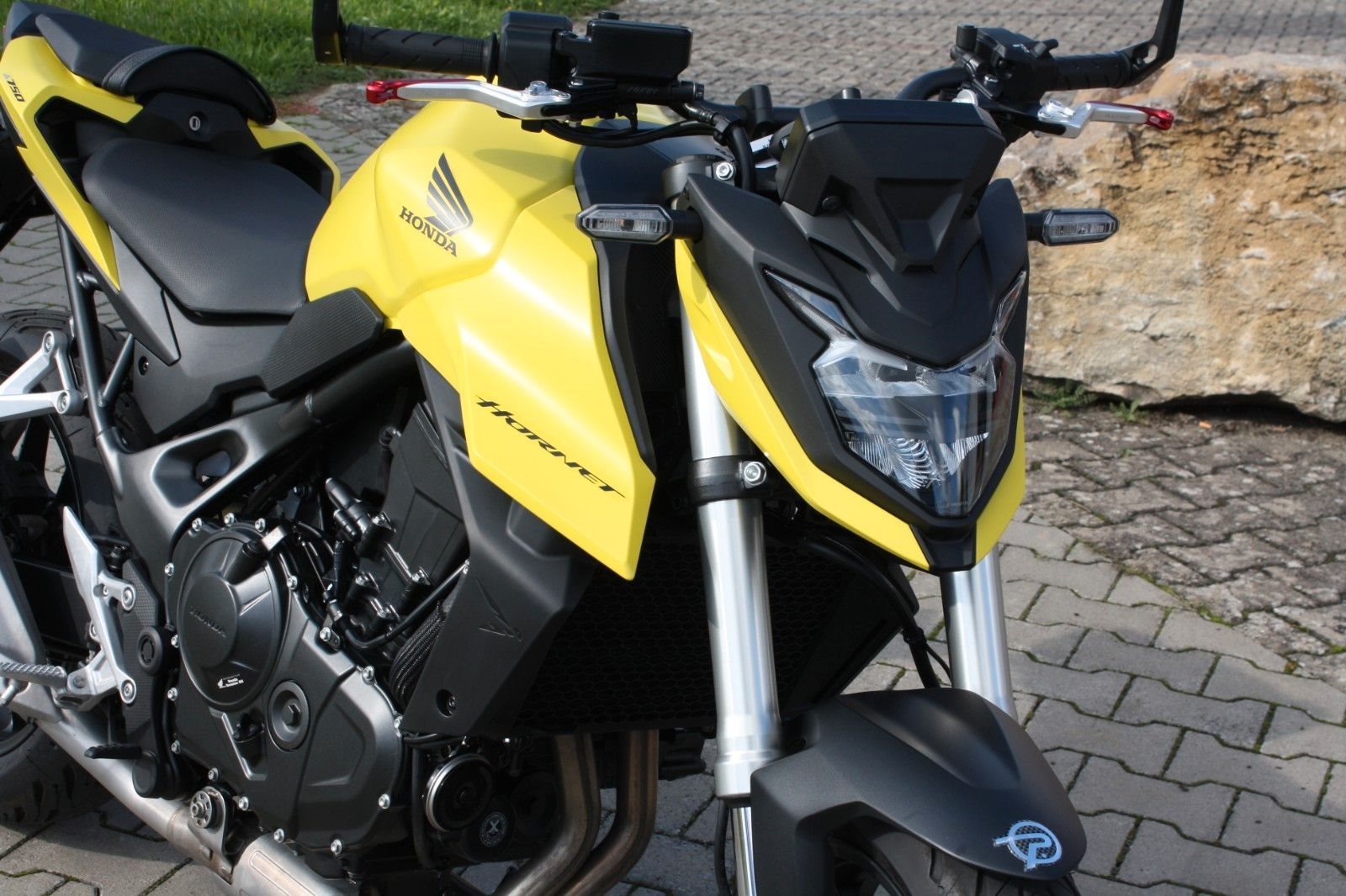 Zum Verkauf steht eine Honda CB 750 Hornet in Gelb-Matt aus erster Hand. Das Motorrad ist um- und unfallfrei, der Jahreskundendienst wurde frisch durchgeführt, und alle Verschleißteile befinden sich in gutem Zustand. Zur Zusatzausstattung gehören Lenkerendenspiegel sowie einstellbare Brems- und Kupplungshebel. Insgesamt präsentiert sich die Hornet in Top-Zustand - ein hervorragendes Motorrad für Liebhaber klassischer Sportlichkeit. Gerne können wir die Leistung auf A2-taugliche 35 KW reduzieren.