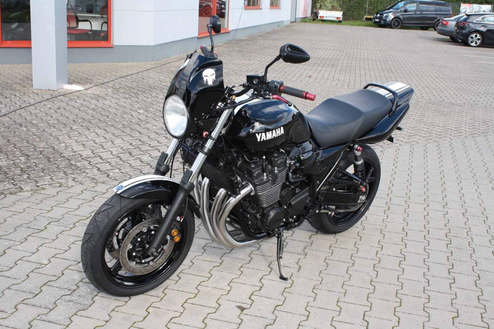 Zum Verkauf steht eine Yamaha XJR1300 aus dem Jahr 2014 in klassischem Schwarz mit nur rund 9.500 km Laufleistung. Das Motorrad ist umfangreich mit Zubehör ausgestattet, wie auf den Bildern zu erkennen. Aktuell ist ein zugelassener Sportauspuff von Cobra montiert. Weitere Modifikationen umfassen andere Federbeine hinten, vier LED-Mini-Blinker, einen kurzen Kennzeichenträger, Stahlflex-Bremsleitungen vorne und hinten, eine kleine Windschutzscheibe, einstellbare Brems- und Kupplungshebel, einen etwas höheren Lenker sowie zahlreiche weitere Details. Alle Originalteile, einschließlich der originalen Öhlins-Federbeine, sind vorhanden. Der Jahreskundendienst wurde frisch durchgeführt, und alle Verschleißteile befinden sich in gutem Zustand. Ein hervorragend gepflegtes, individuell ausgestattetes Bike für Liebhaber klassischer Naked Bikes - luftgekühlt!