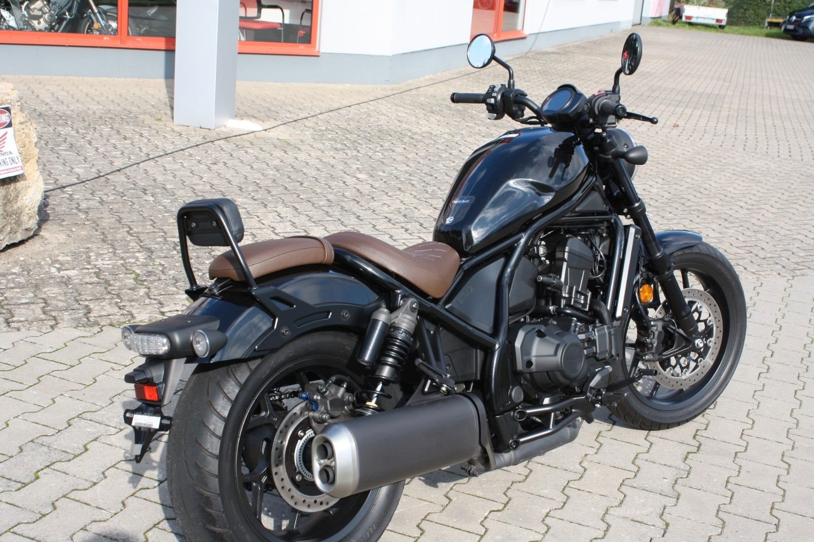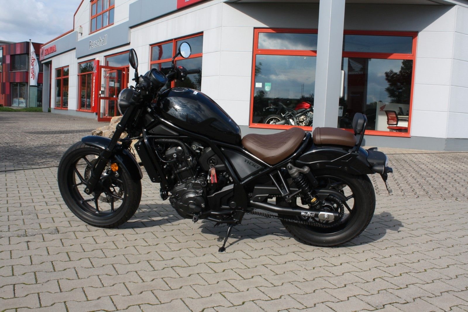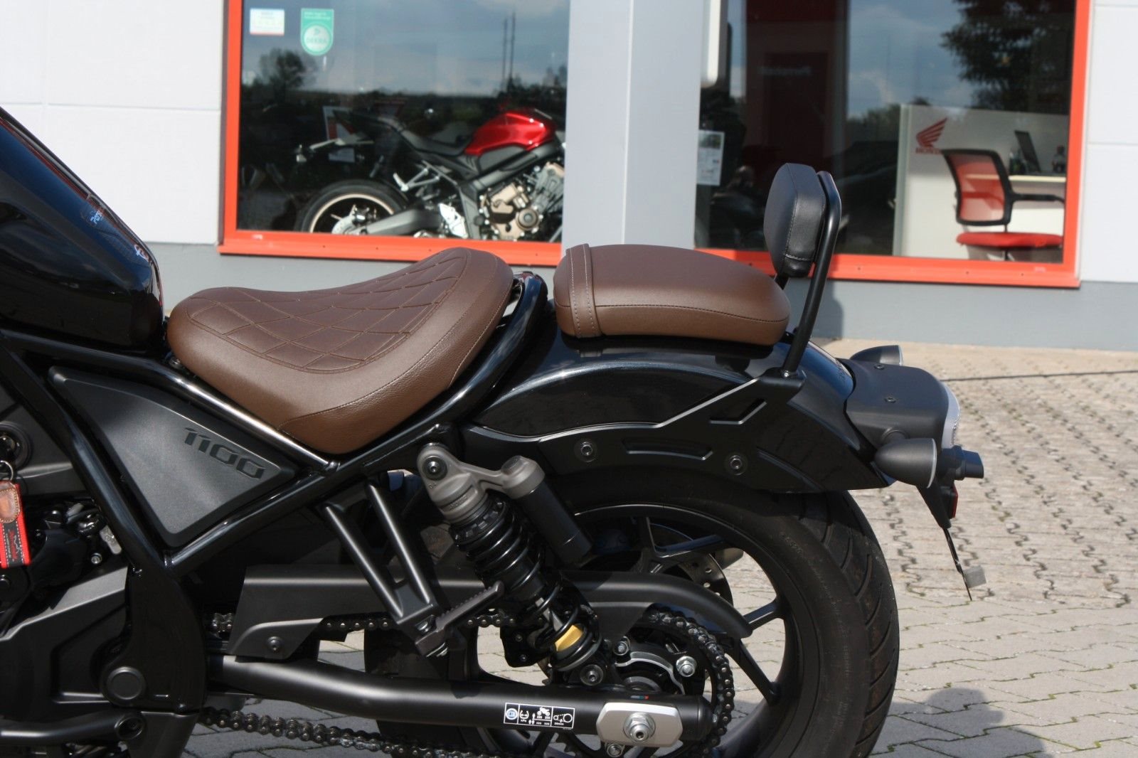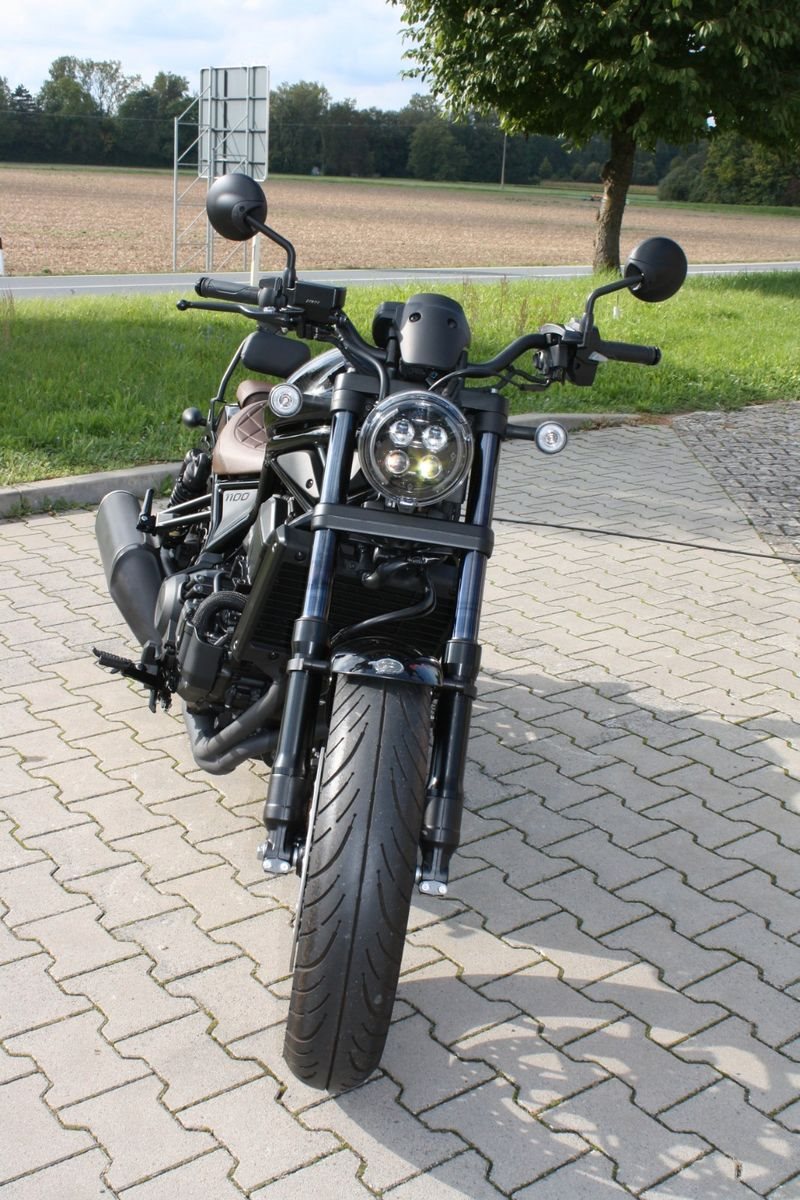 Zum Verkauf steht eine Honda CMX 1100 Rebell mit Doppelkupplungsgetriebe aus dem Jahr 2023 in Schwarz-Metallic. Das Motorrad ist ausgestattet mit der braunen Komfort-Sitzbank aus dem Originalzubehör sowie einer Beifahrerrückenlehne, die zusätzlichen Komfort für längere Fahrten bietet. Die Honda CMX 1100 Rebell verbindet kraftvolle Leistung mit klassischem Chopper-Design - ideal für alle, die ein stylisches und komfortables Bike suchen.