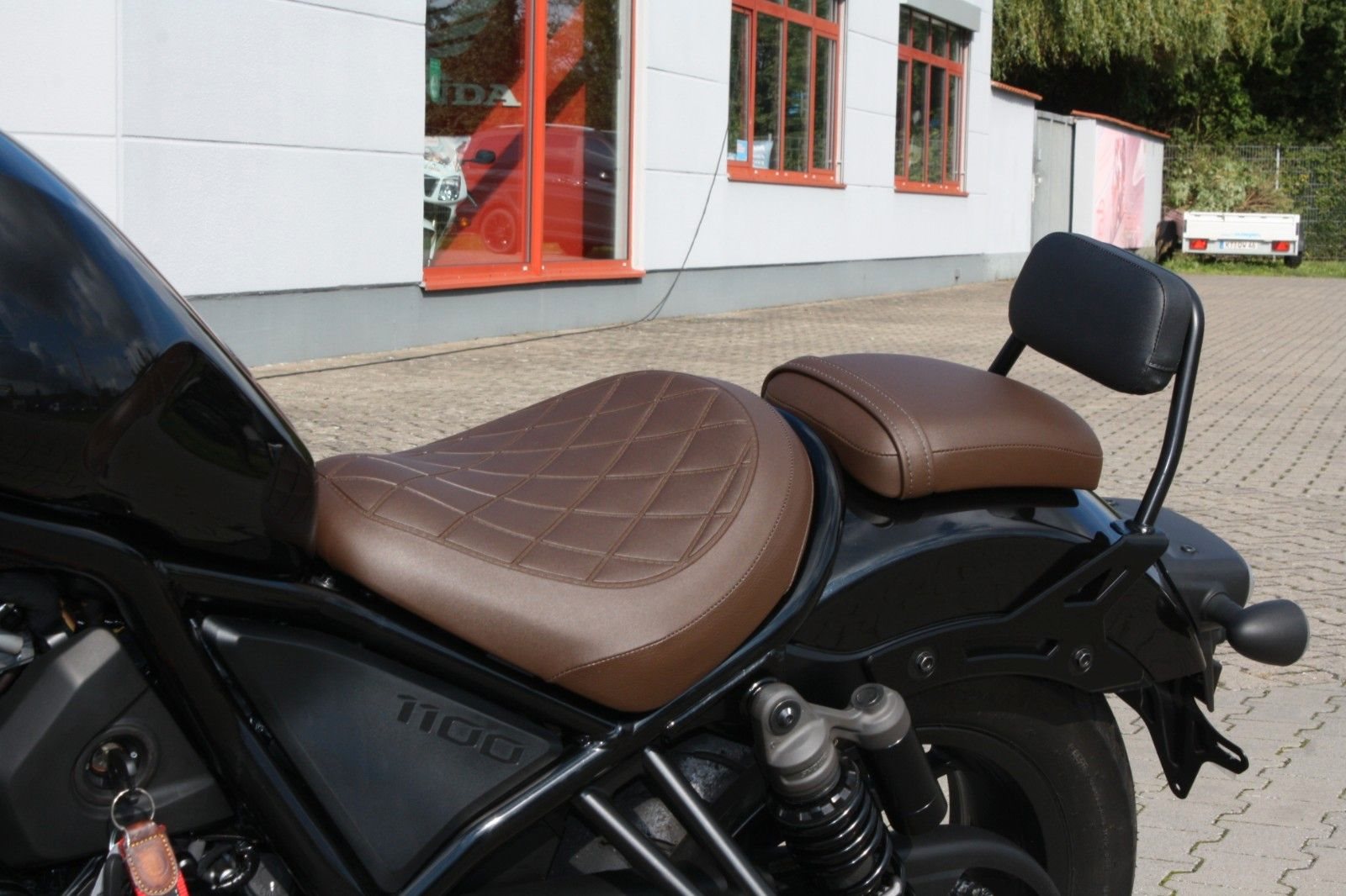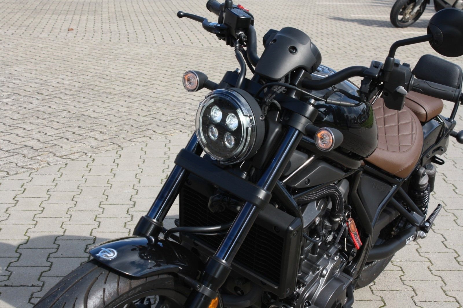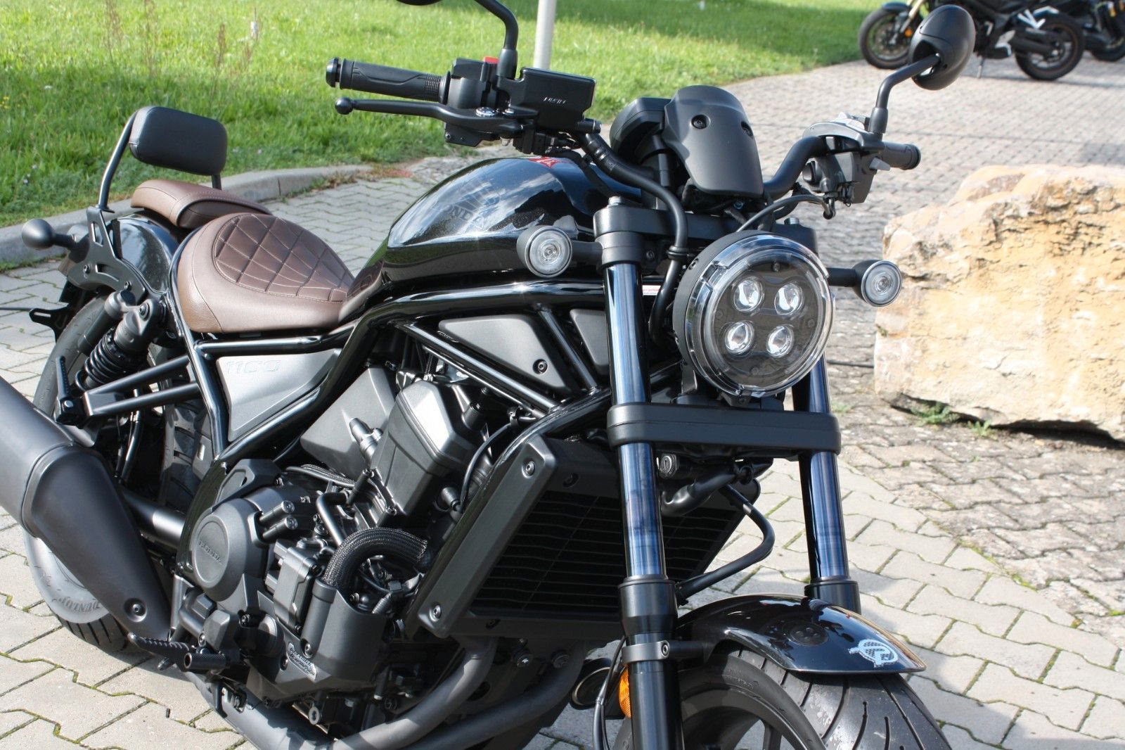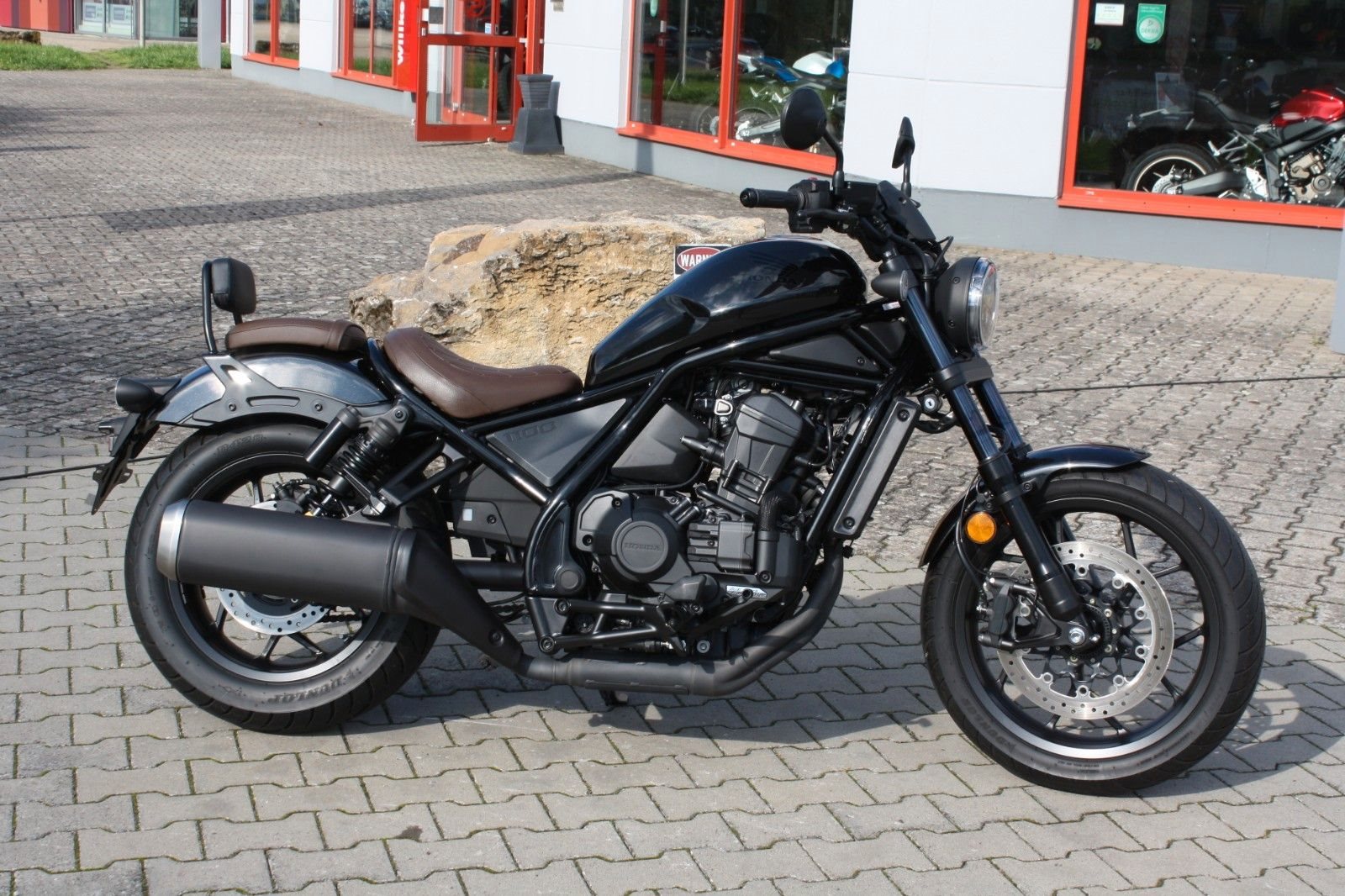 Zum Verkauf steht eine Honda CMX 1100 Rebell mit Doppelkupplungsgetriebe aus dem Jahr 2023 in Schwarz-Metallic. Das Motorrad ist ausgestattet mit der braunen Komfort-Sitzbank aus dem Originalzubehör sowie einer Beifahrerrückenlehne, die zusätzlichen Komfort für längere Fahrten bietet. Die Honda CMX 1100 Rebell verbindet kraftvolle Leistung mit klassischem Chopper-Design - ideal für alle, die ein stylisches und komfortables Bike suchen.