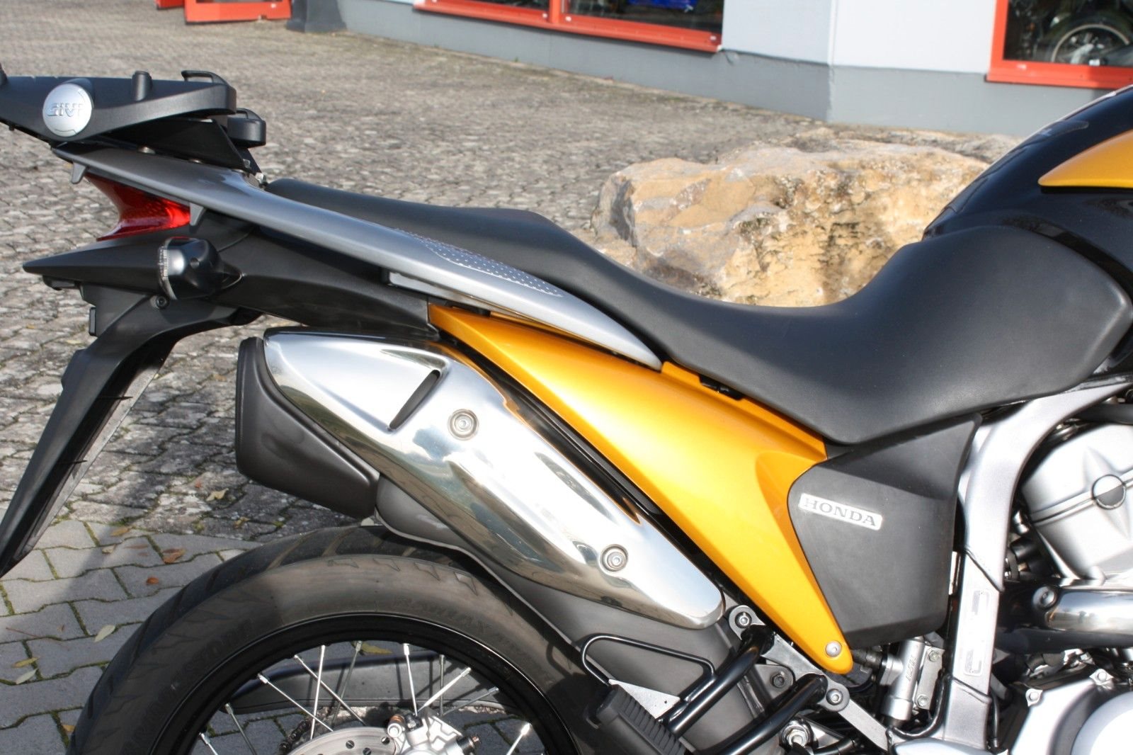 Zum Verkauf steht eine Honda XL700 Transalp in Gold-Metallic. Das Motorrad stammt aus erster Hand, wurde von uns als Neufahrzeug ausgeliefert und hat knapp 28.000 km Laufleistung. Es wurde seither ausschließlich in unserer Werkstatt gewartet und befindet sich in gut gepflegtem Zustand. Der Jahreskundendienst ist frisch durchgeführt, der Kettensatz ist neu. Ausgestattet ist die Transalp mit einem Topcase-Träger von Givi sowie einem Hauptständer. Insgesamt präsentiert sich die Transalp in außergewöhnlich jungfräulichem Zustand - ein sehr schönes Motorrad für alle, die eine zuverlässige und gepflegte Reise-Enduro suchen.