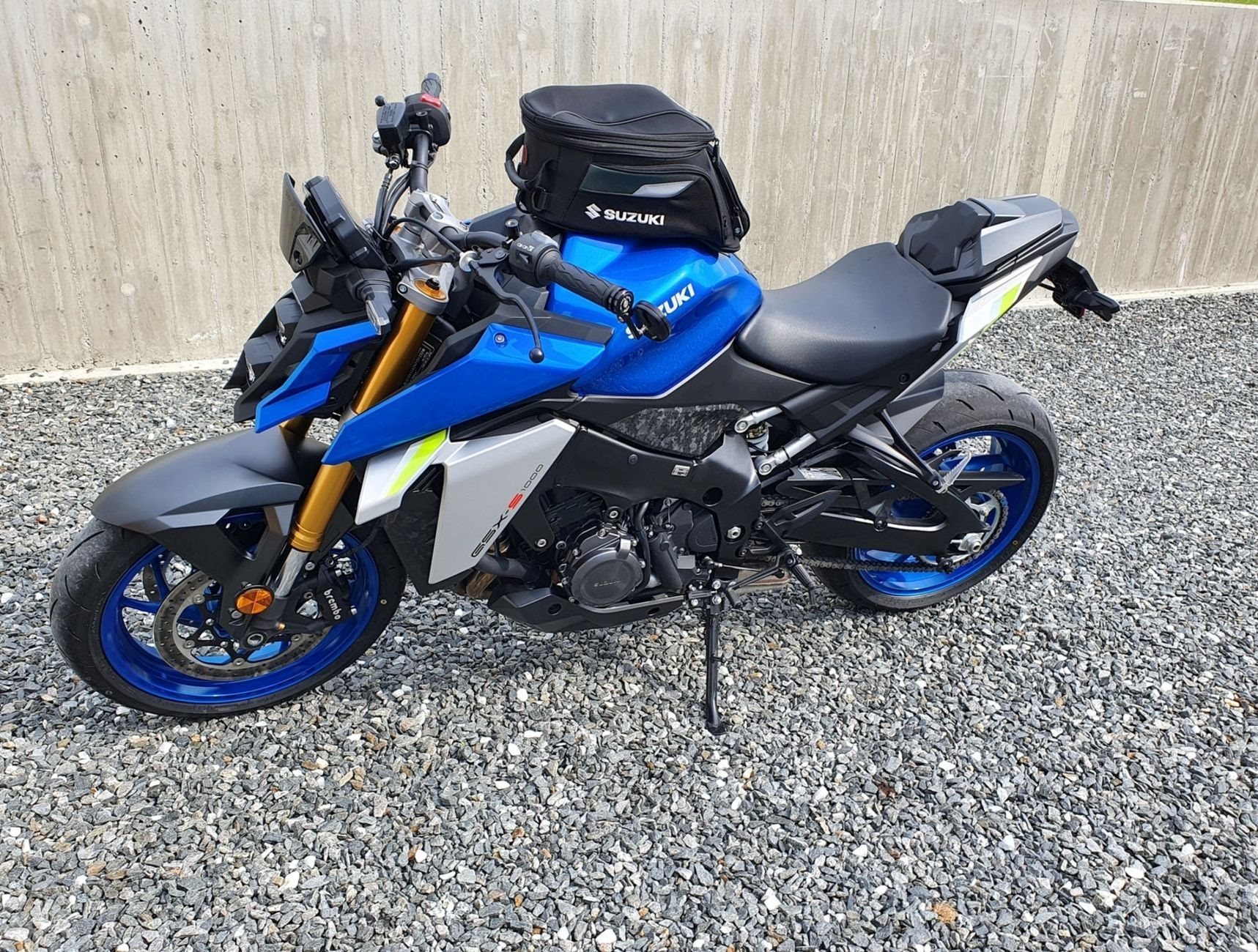 Original Suzuki Tankrucksack mit passender Halterung am Tank.