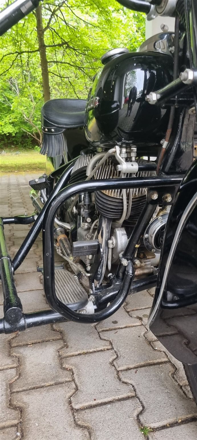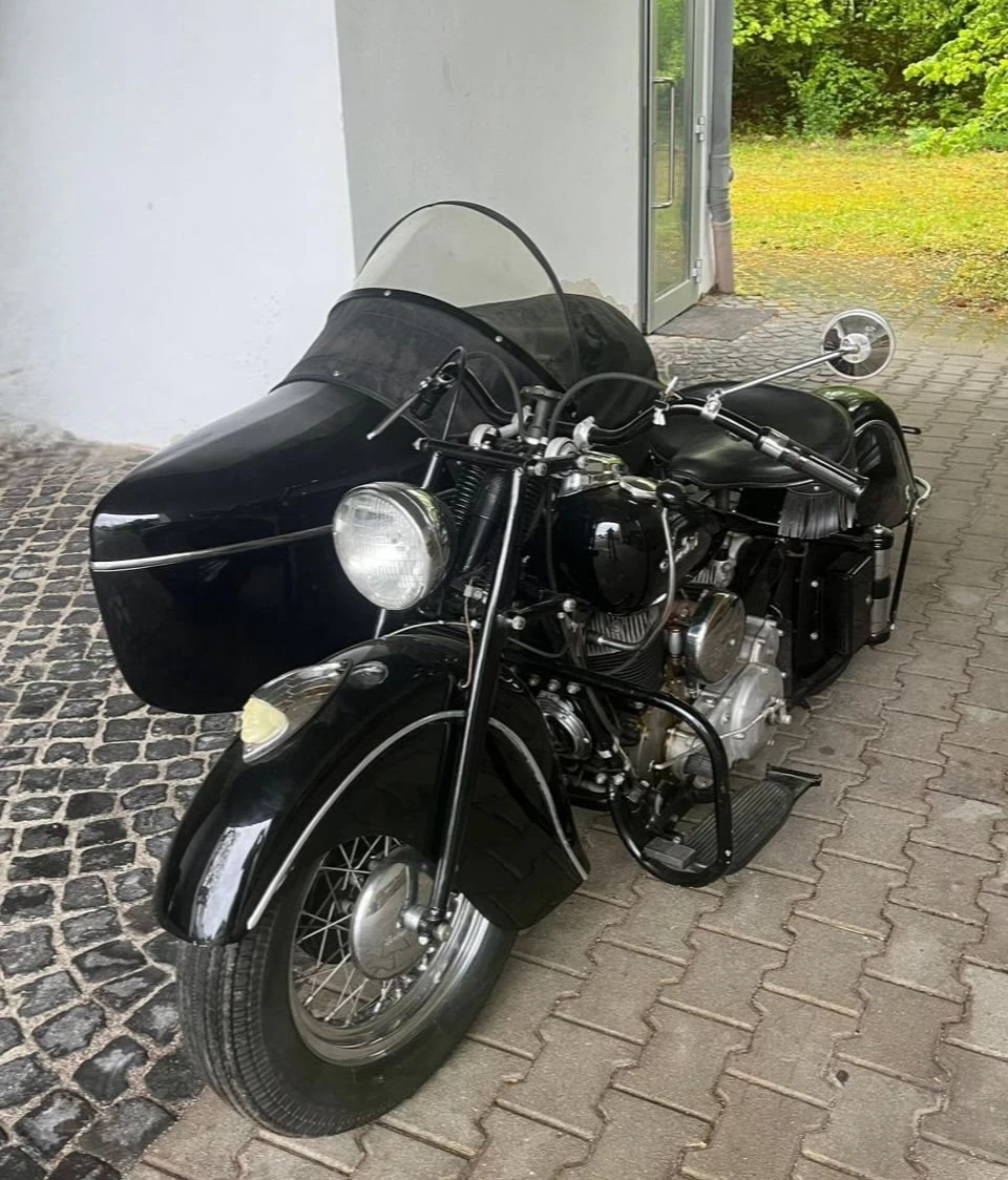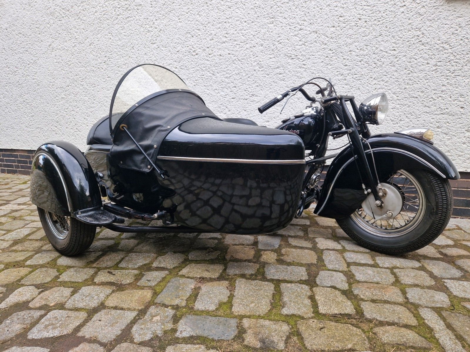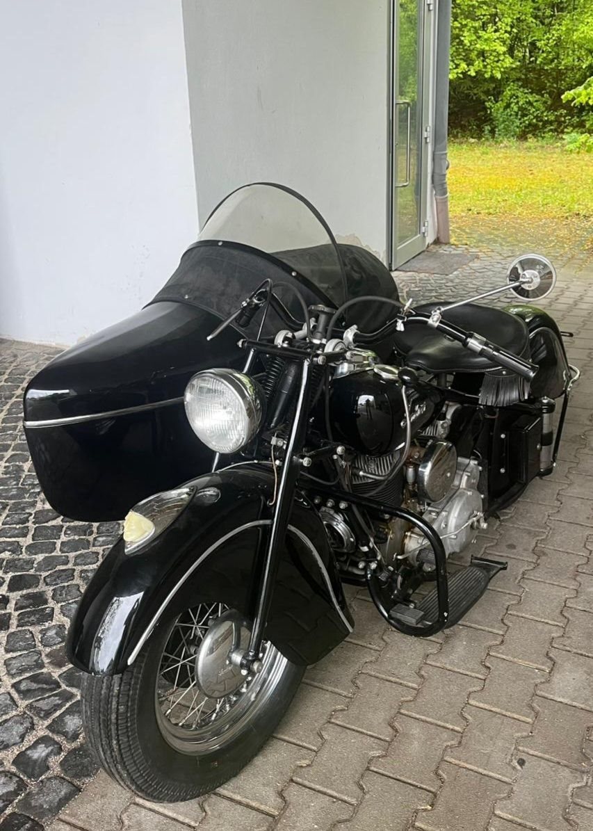 Motor Getriebe überholt, Motor und Rahmennummer matching, 1948 Beiwagen mit original Nummer, alles original Teile ... wie Bleche, Tank, Gabel, Räder, Toolbox, Tacho, orginale Schlüssel, Zündschloss, Vergaser Linkert M 344, 6 Volt, fährt sich hervorragend.