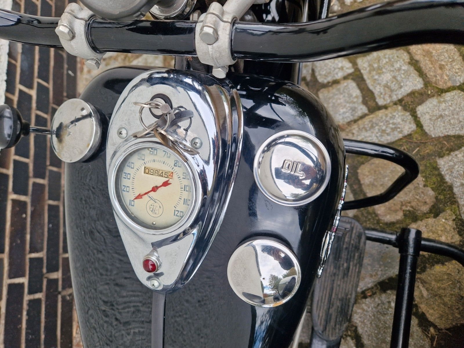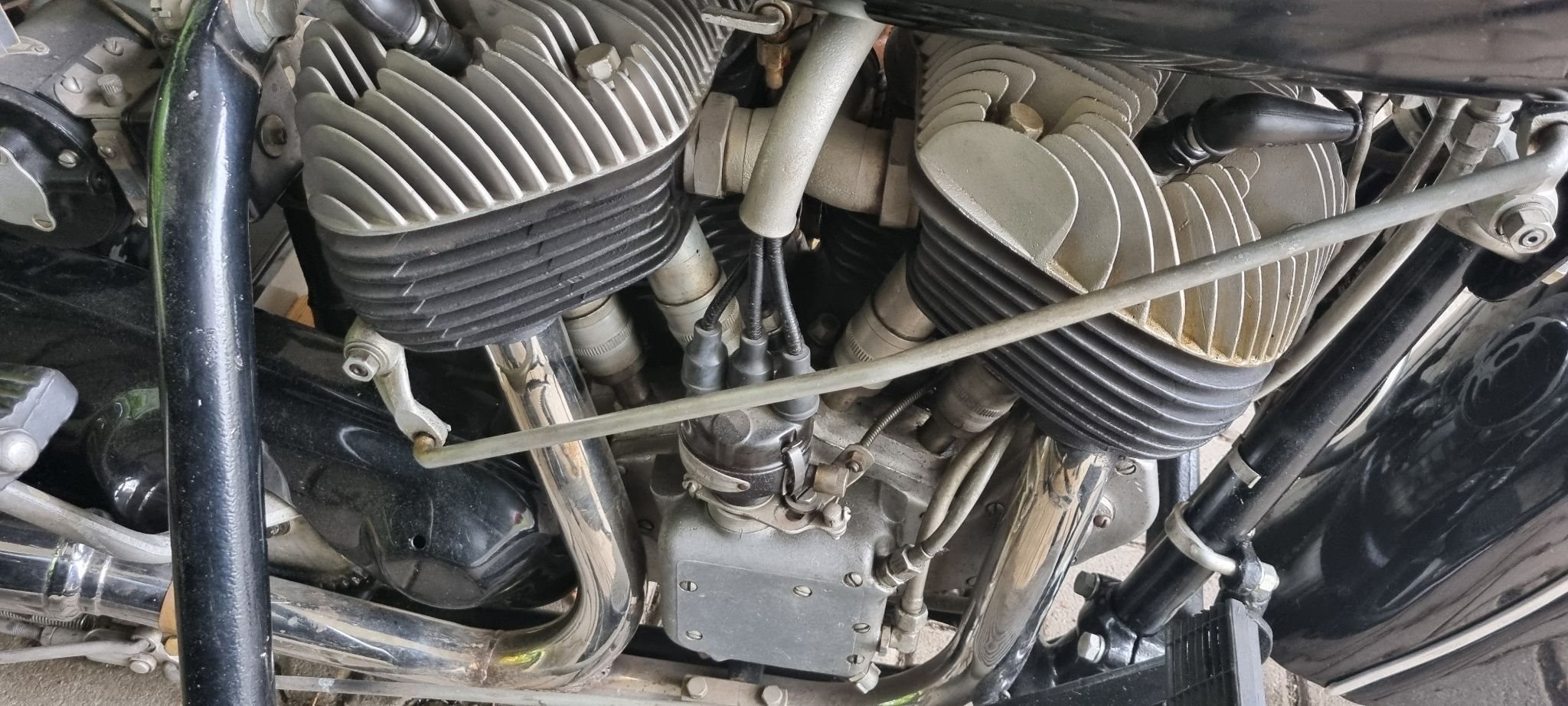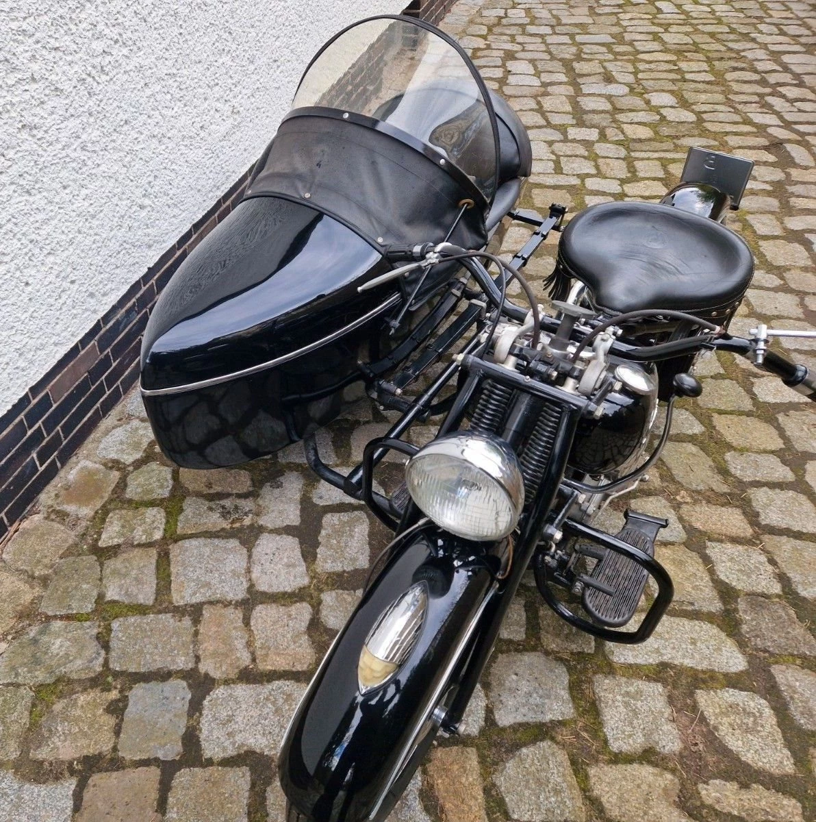 Motor Getriebe überholt, Motor und Rahmennummer matching, 1948 Beiwagen mit original Nummer, alles original Teile ... wie Bleche, Tank, Gabel, Räder, Toolbox, Tacho, orginale Schlüssel, Zündschloss, Vergaser Linkert M 344, 6 Volt, fährt sich hervorragend.