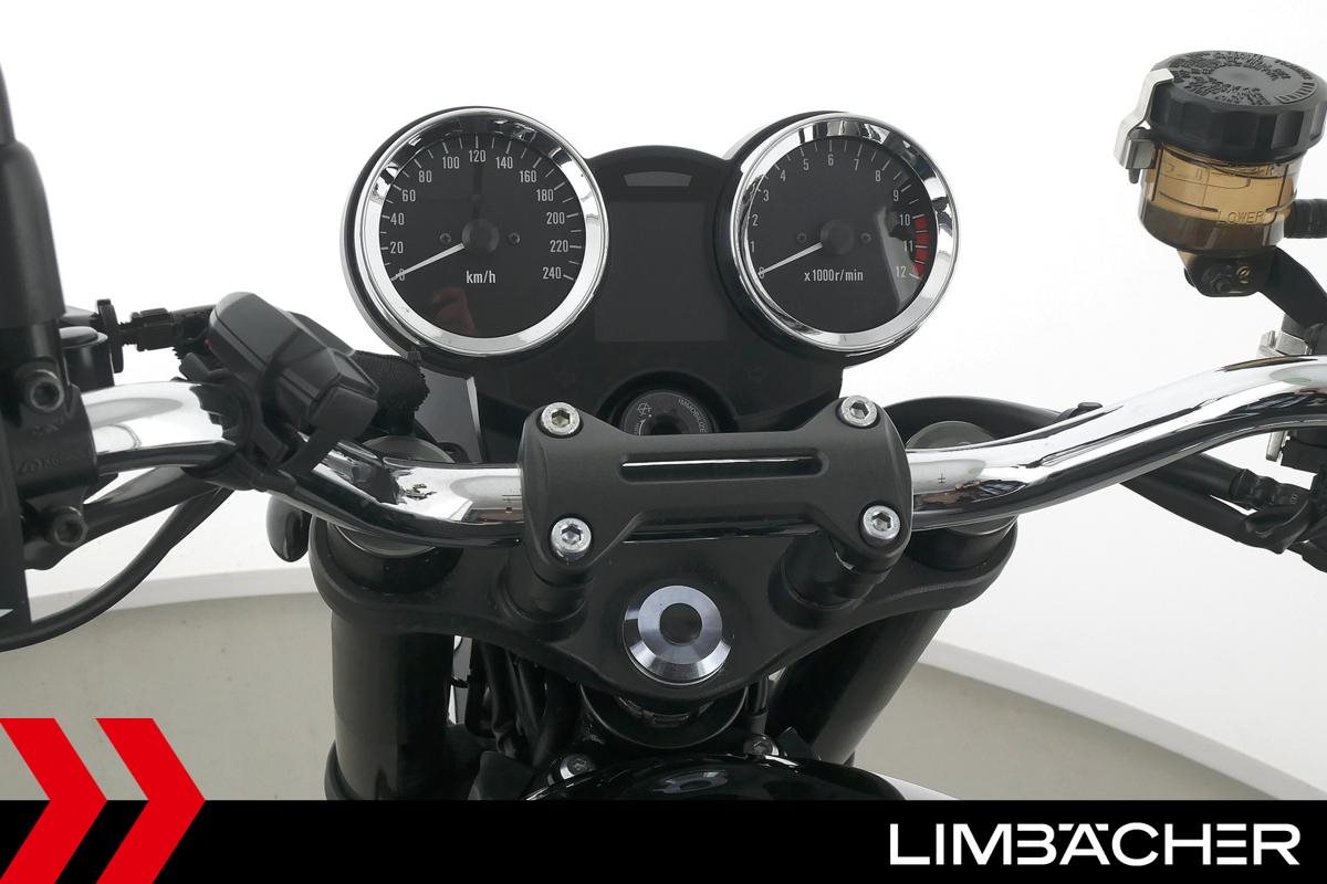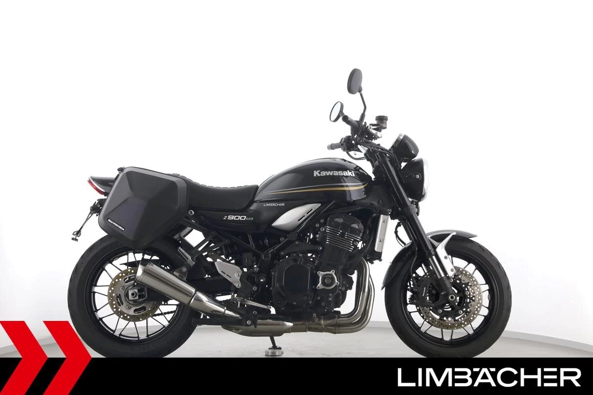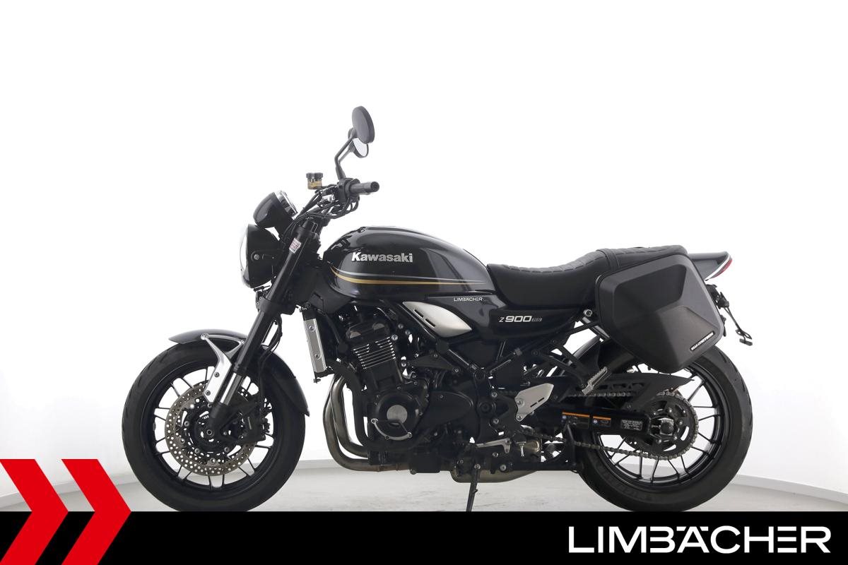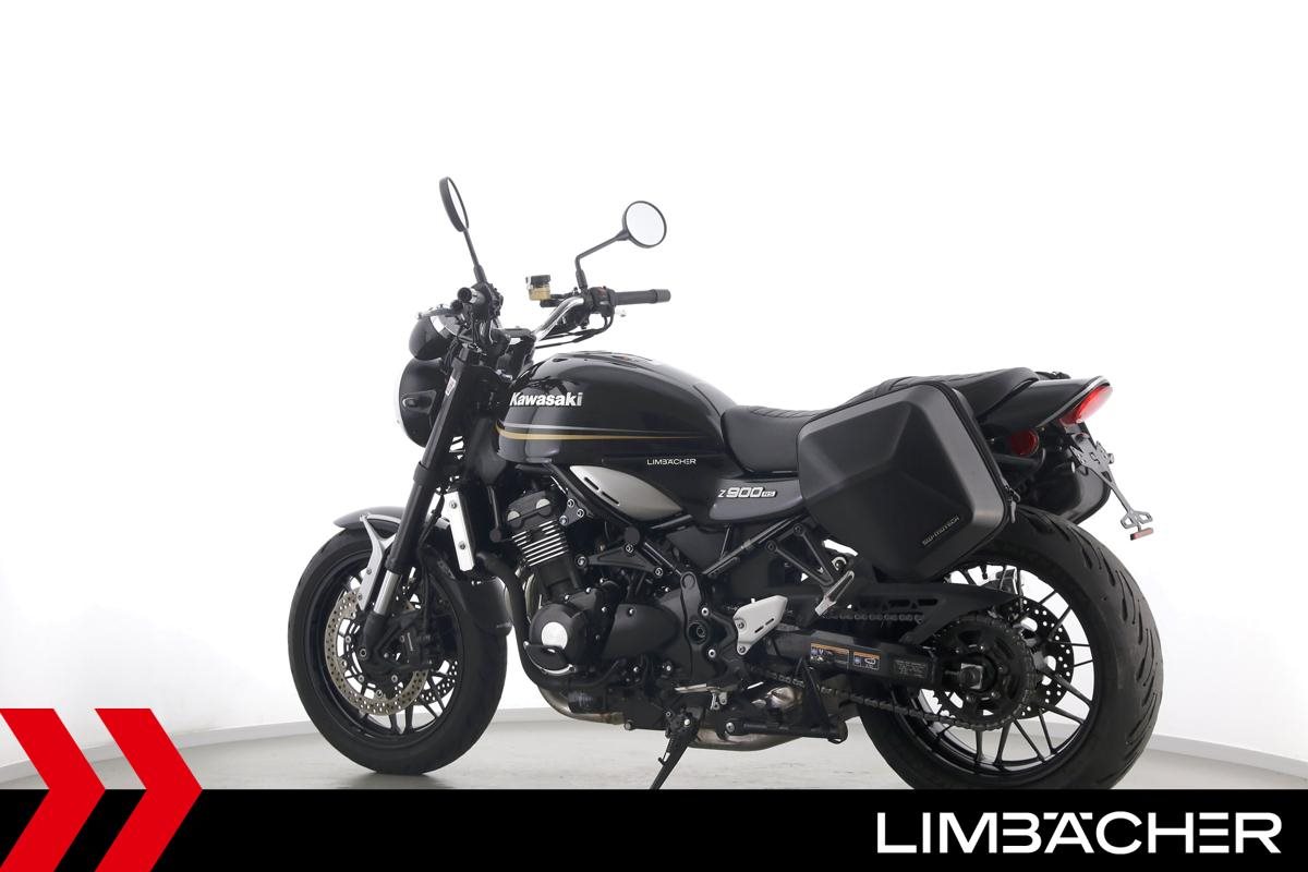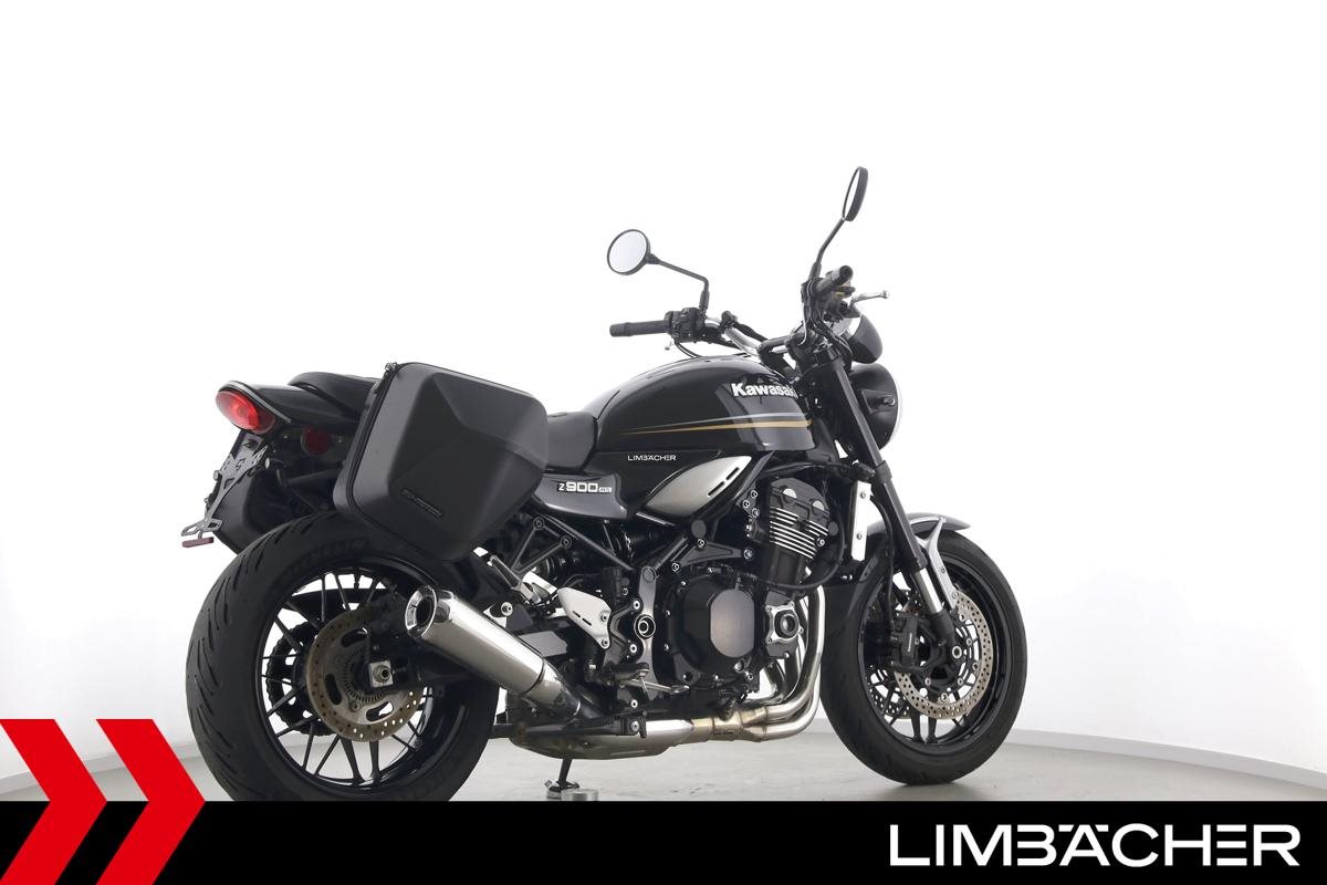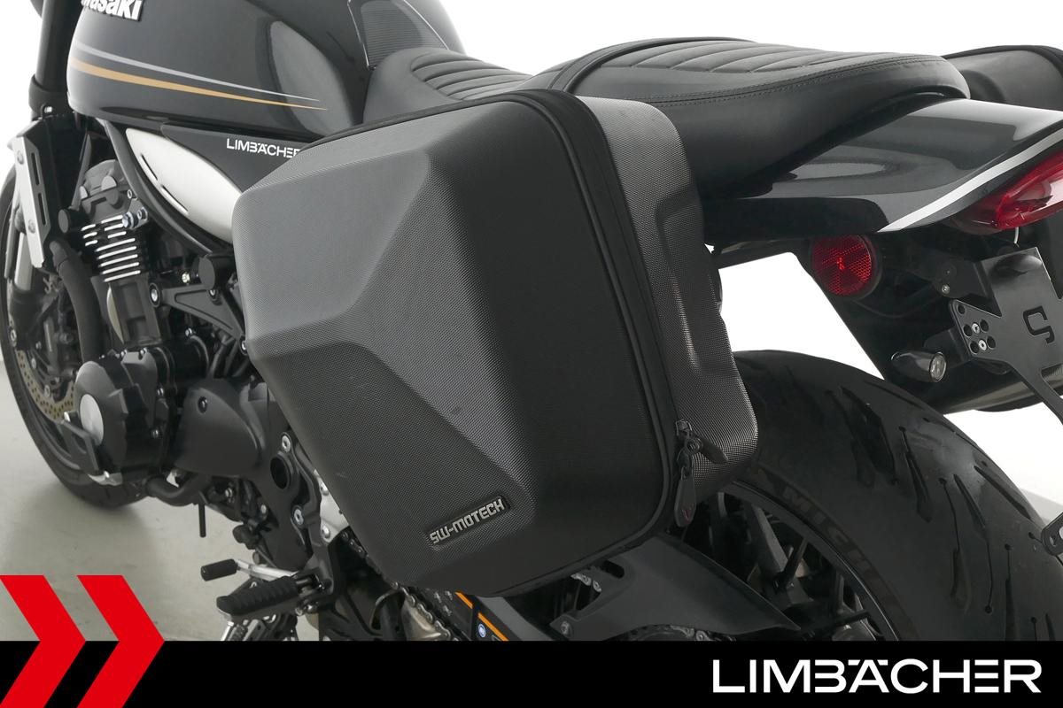Eine scheckheftgepflegte Kawasaki Z 900 RS in gepflegtem Zustand u.a. mit kurzem Kennzeichenhalter sowie SW-Motech-Softkoffer.