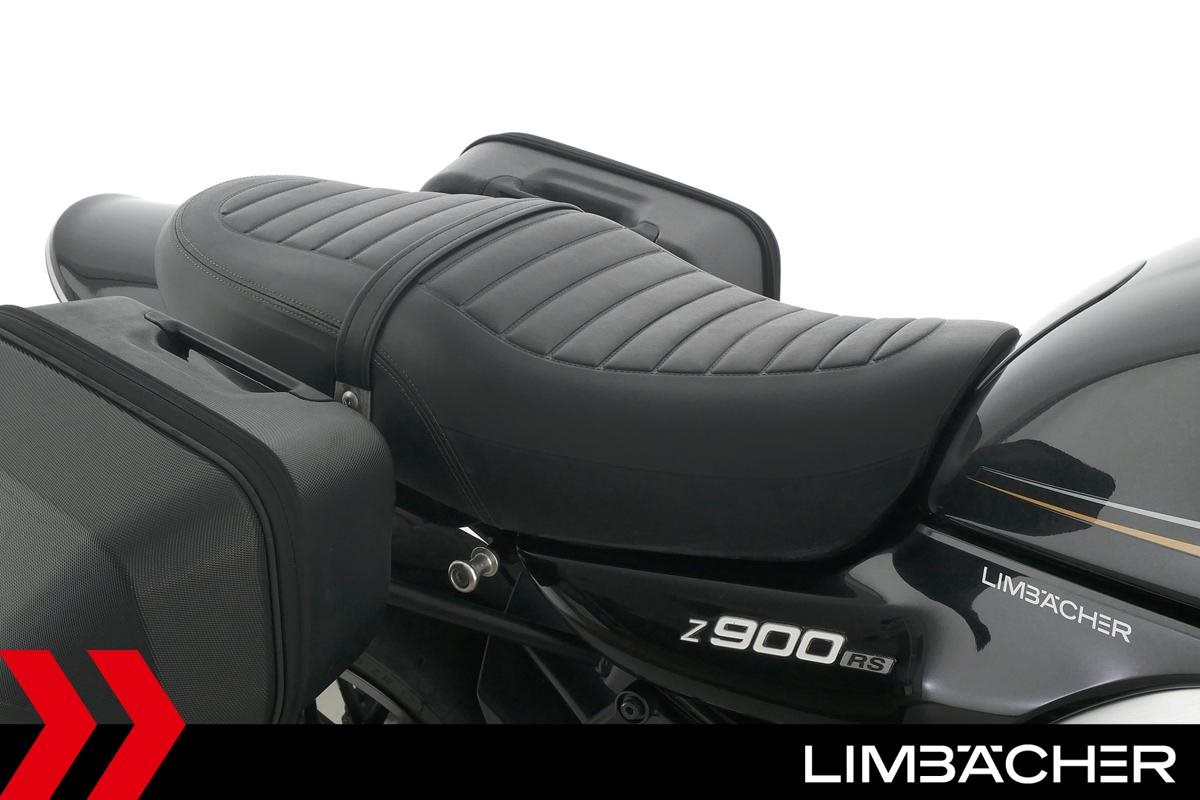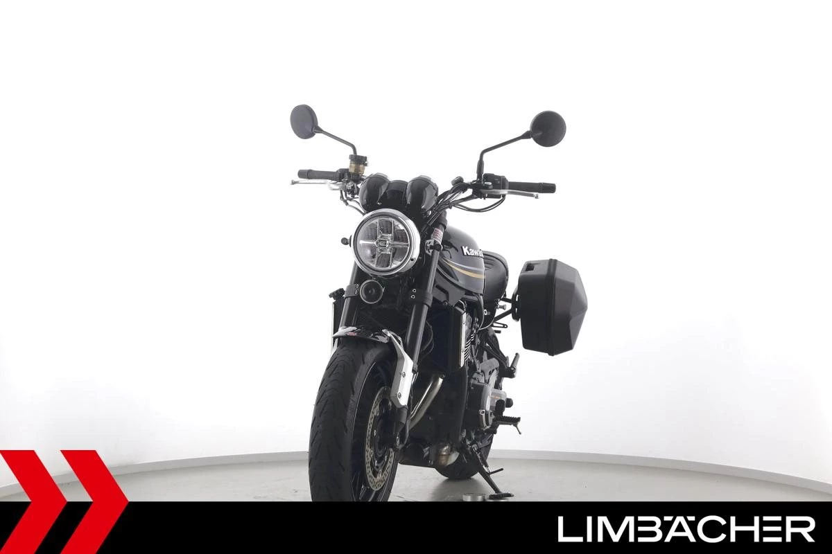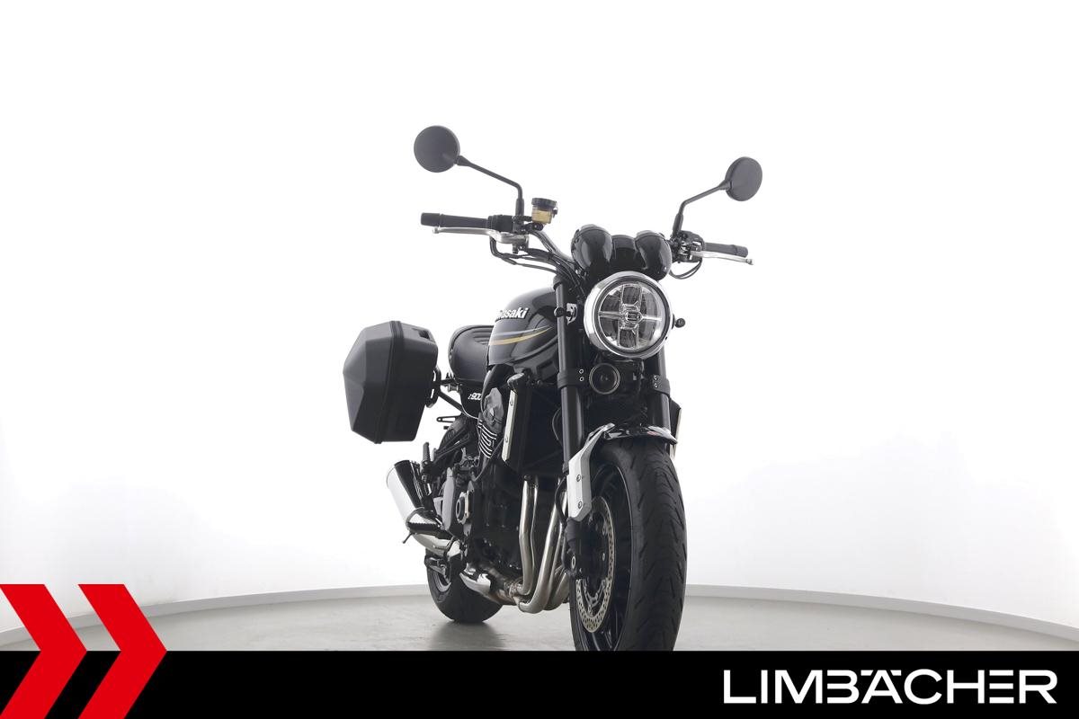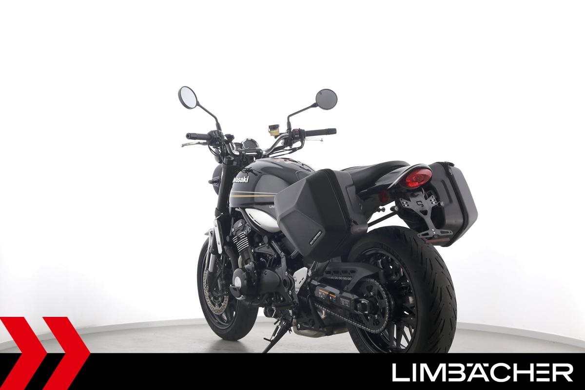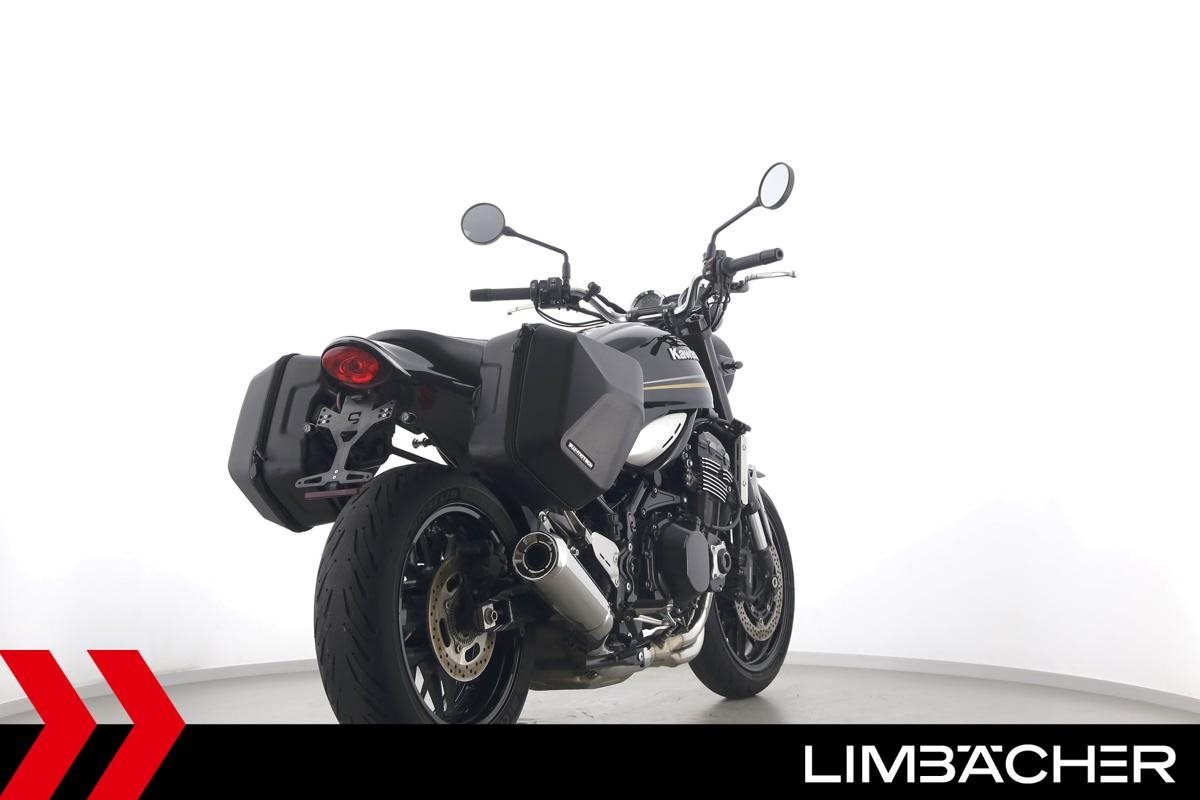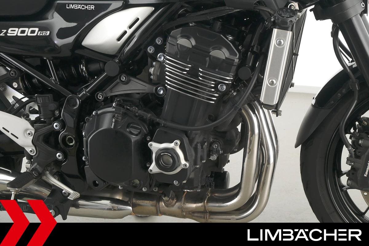 Eine scheckheftgepflegte Kawasaki Z 900 RS in gepflegtem Zustand u.a. mit kurzem Kennzeichenhalter sowie SW-Motech-Softkoffer.