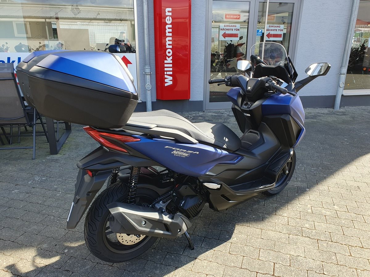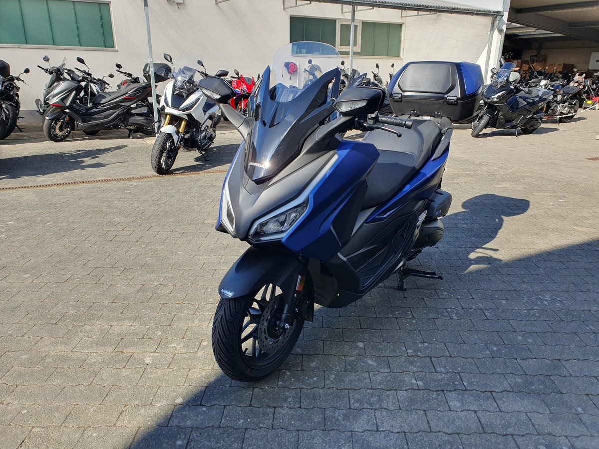 Honda Forza 125 NSS 125 in Matt Pearl Pacific Blue ! Neues Modelljahr 2025 mit TFT Display ! Der Forza hat ABS, ein elektrisch einstellbares Windschild und wird Seienmäßig mit Smart Key Top Case geliefert. Der Roller ist auf Lager und sofort verfügbar !