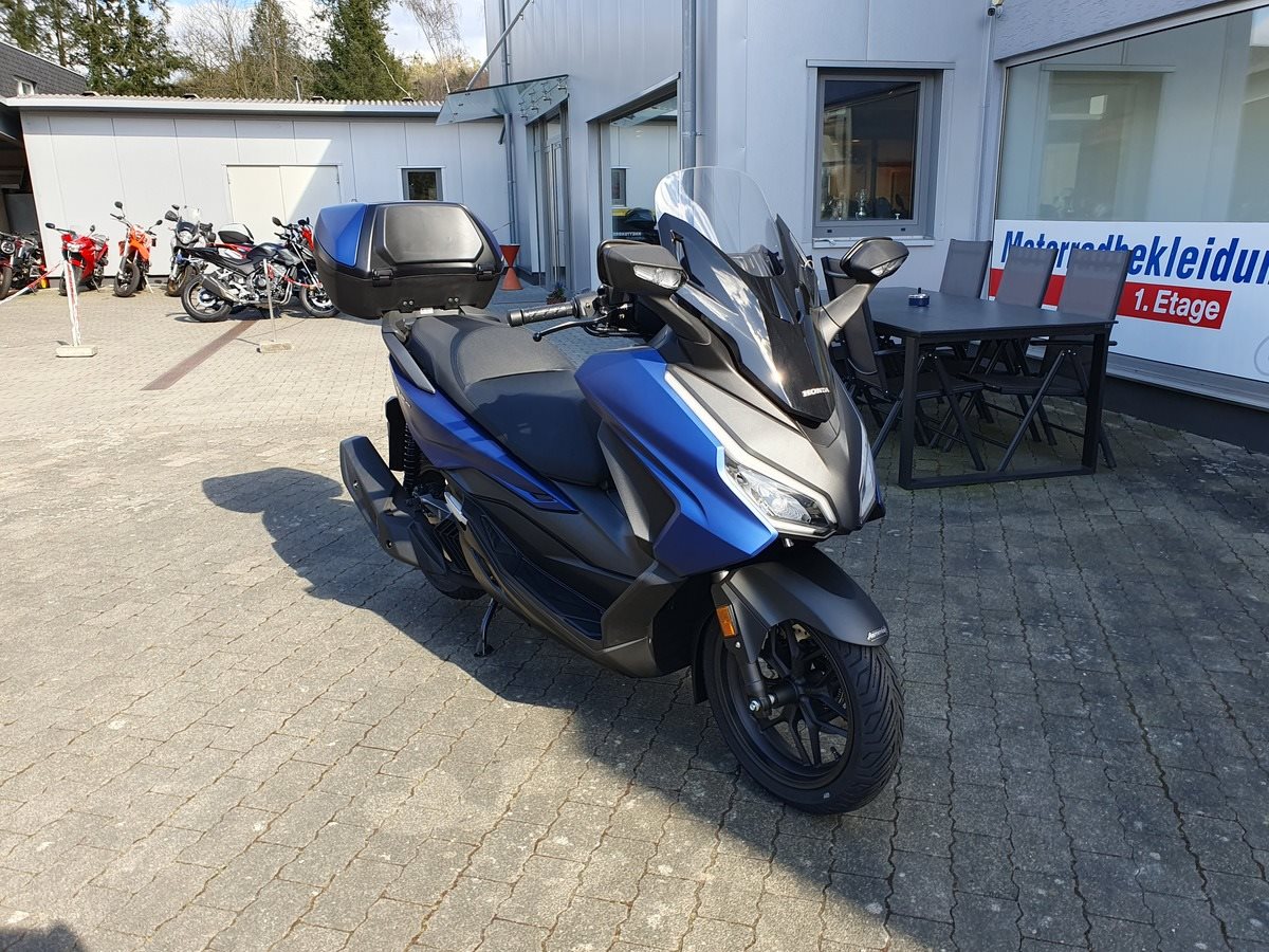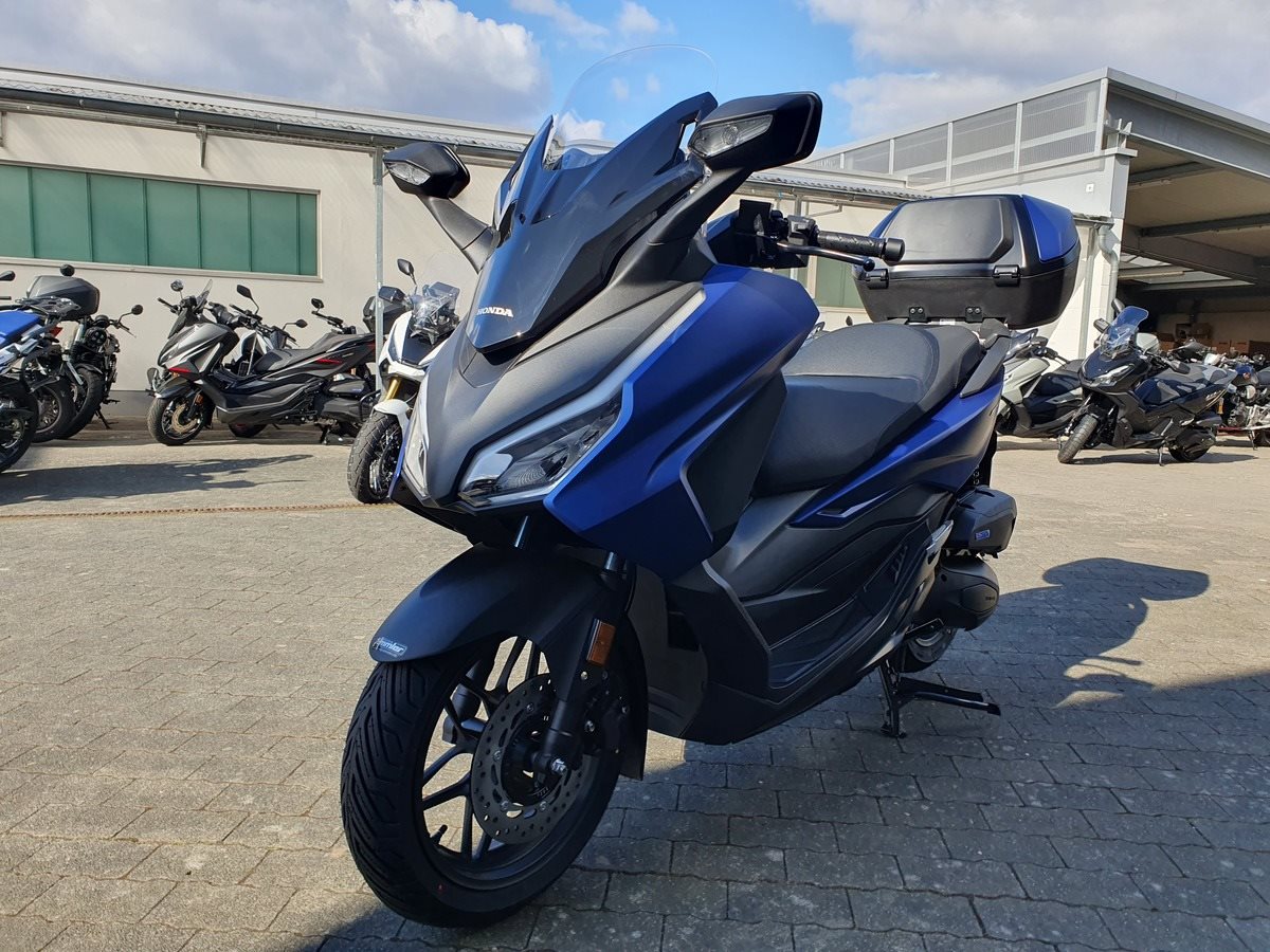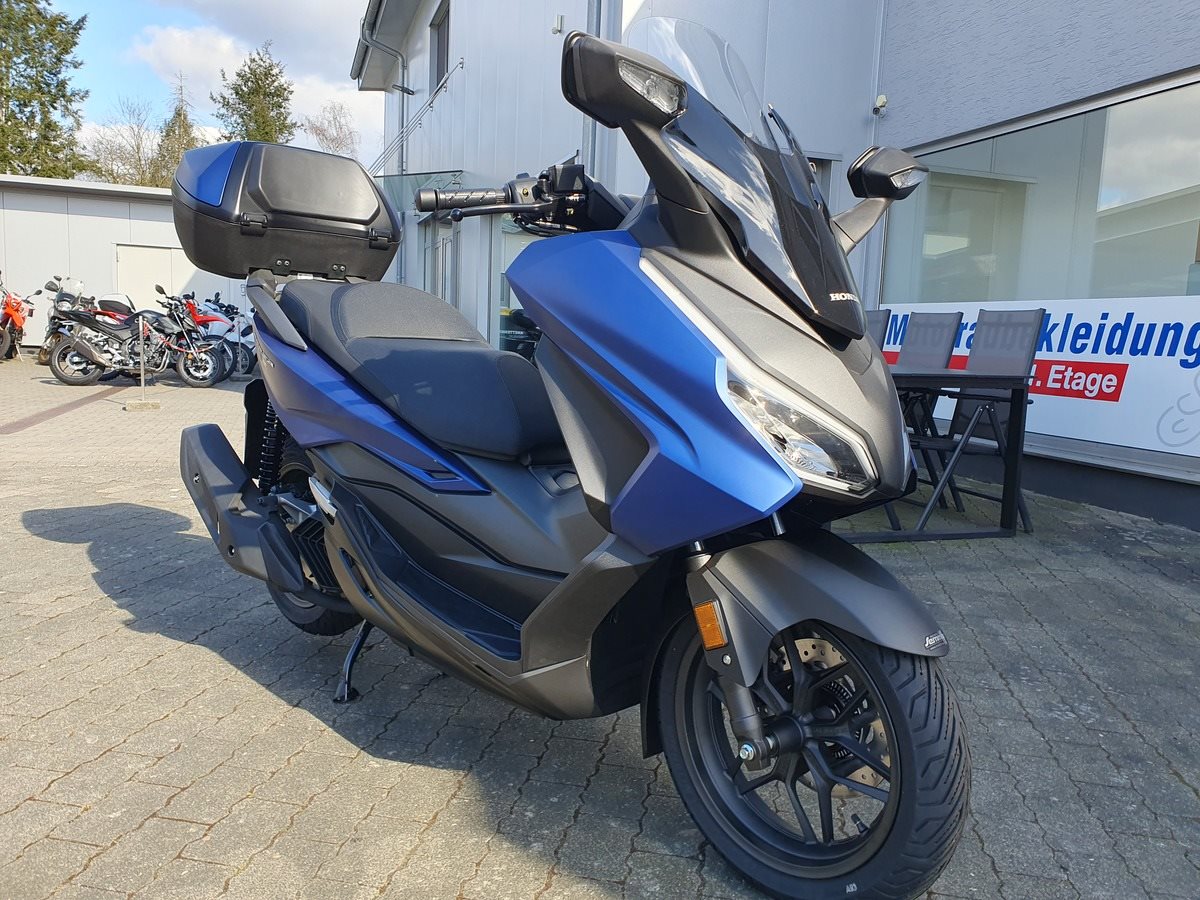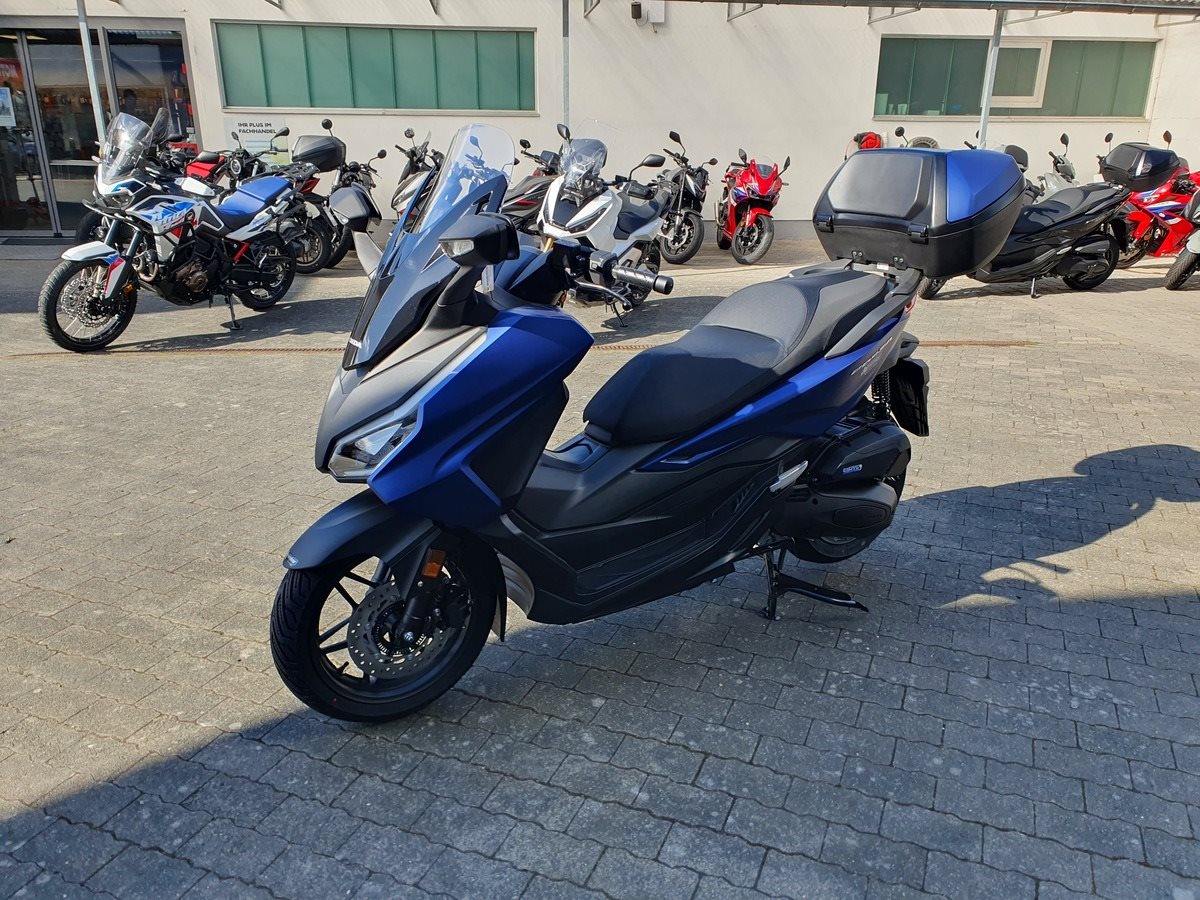 Honda Forza 125 NSS 125 in Matt Pearl Pacific Blue ! Neues Modelljahr 2025 mit TFT Display ! Der Forza hat ABS, ein elektrisch einstellbares Windschild und wird Seienmäßig mit Smart Key Top Case geliefert. Der Roller ist auf Lager und sofort verfügbar !