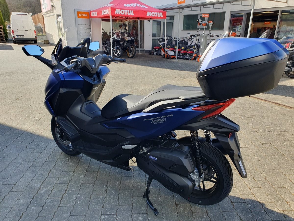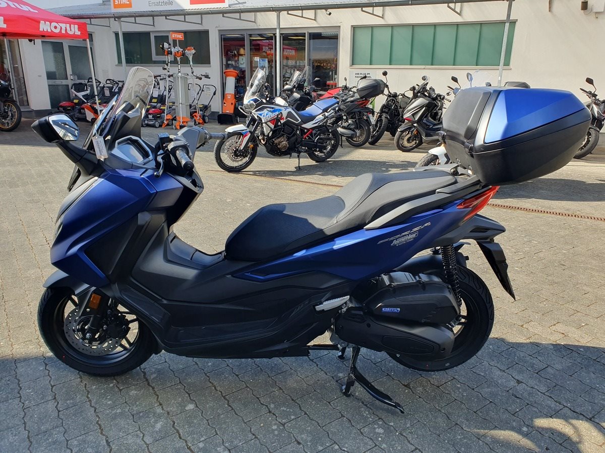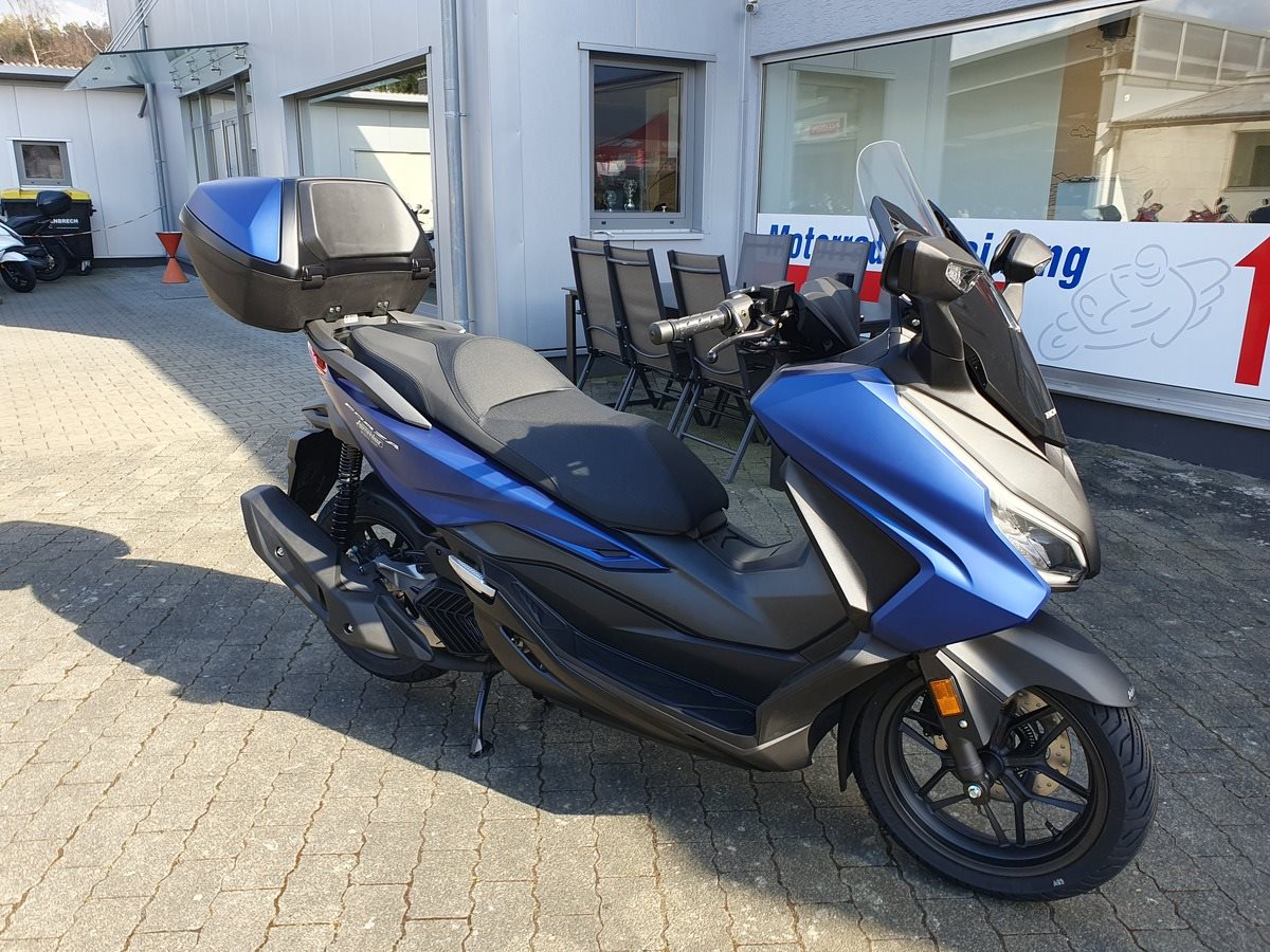 Honda Forza 125 NSS 125 in Matt Pearl Pacific Blue ! Neues Modelljahr 2025 mit TFT Display ! Der Forza hat ABS, ein elektrisch einstellbares Windschild und wird Seienmäßig mit Smart Key Top Case geliefert. Der Roller ist auf Lager und sofort verfügbar !