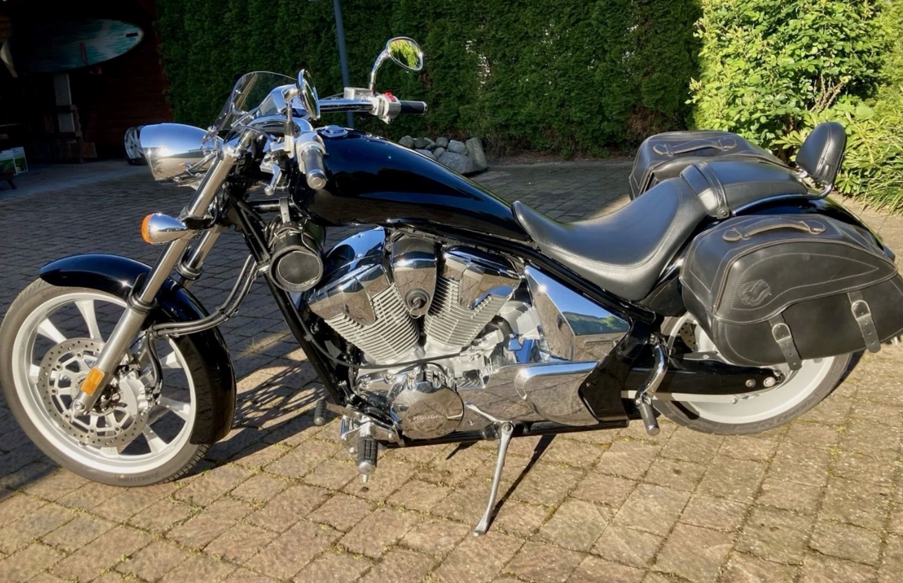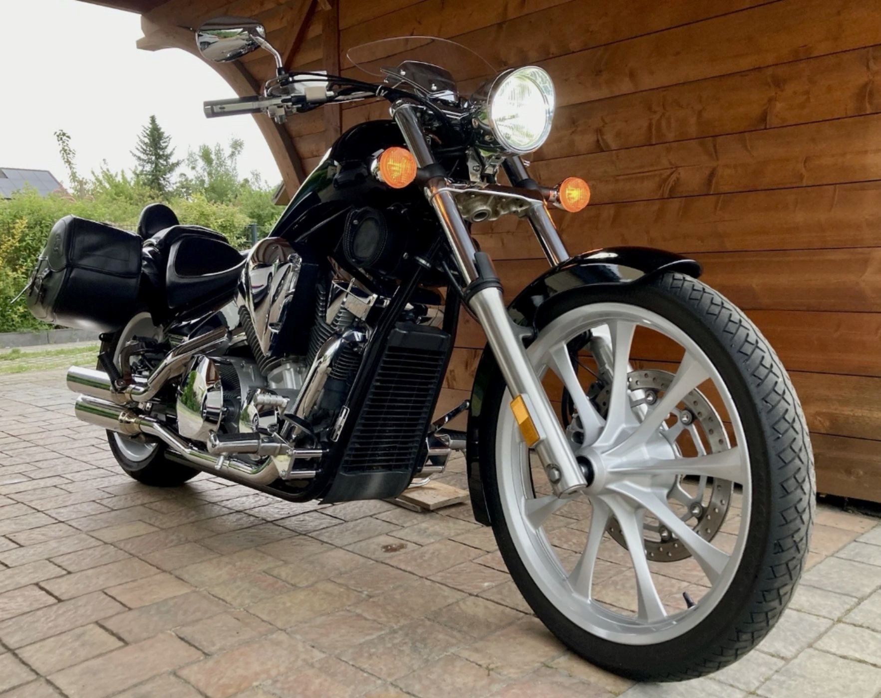 Unfallfrei, umfallfrei, scheckheftgepflegt, Reifen Bridgestone Battlax (vorn 4 mm, DOT 4522/ hinten 4 mm, DOT 1522), Miller Edelstahl Abgasanlage mit ABE und DB-Eater verbaut, HONDA-Original-Zubehör "Boulevard Windschild" und "Rückenlehne Sozius", HONDA-Reparatur- und Wartungsanleitung auf USB, kein Grauimport, Osram H4 LED-Lampe, K+N Luftfilter, Ledertasche 3l, Hepco&Becker Satteltaschen, Sozius-Fussrasten-Tieferlegung, Batterie-Erhaltungsladegerät, LED-Mini-Blinker hinten, verstellbare Handhebel ProBrake, Original-Teile sind dabei (Abgasanlage nicht), ConStands Motorradheber
