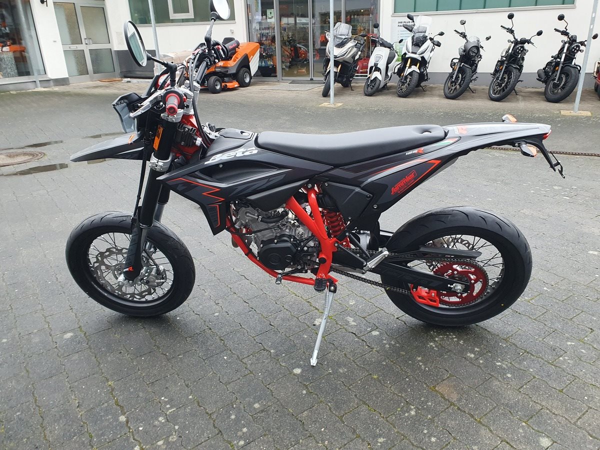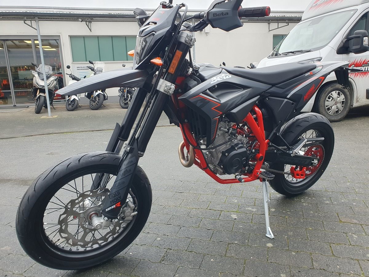 Beta RR 125 R-Model 4 Takter Supermoto in schwarz mit Speichenfelgen Modelljahr 2026 - Neufahrzeug 0km sofort lieferbar! Steht bei uns im Laden bereit.