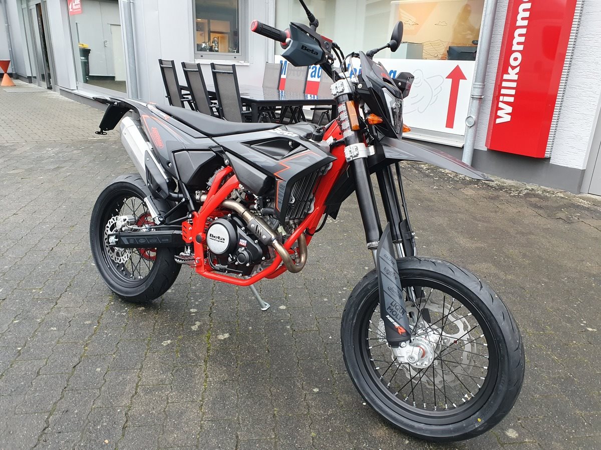 Beta RR 125 R-Model 4 Takter Supermoto in schwarz mit Speichenfelgen Modelljahr 2026 - Neufahrzeug 0km sofort lieferbar! Steht bei uns im Laden bereit.